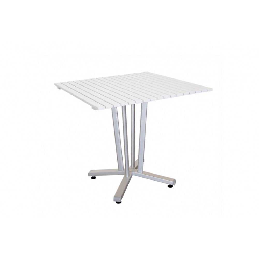 Обеденный стол очень прочный и отлично подходит для использования в кафе или зонах отдыха. Размер 800х800 мм идеально подходит для обслуживания 4 человек. Особенности модели: Каркас выполнен из анодированного алюминия толщиной 20 мм. Перед сборкой все детали подвергаются анодированию (процесс сертифицирован QUALANOD). Все элементы собраны с использованием деталейиз нержавеющей стали AISI 304 и шайб из AISI 316. Варианты отделки каркаса:анодированный серебристый. Варианты за дополнительную стоимость: анодированный бронзовый, глянцевый белый, окрашенный бежевый, антрацит и другие цвета по палитре RAL. Столы с отделками: окрашенный бежевый, антрацит и другие цвета по палитре RAL доступны для заказа от 50 штук. Упаковка: стол упаковывается вкартоннуюкоробку 850x850x300 мм,вес коробки 10,75 кг. Цена на сайте указана за модель с анодированным серебристым каркасом. Цены на другие модели и дополнительную информацию уточняйте у менеджеров.