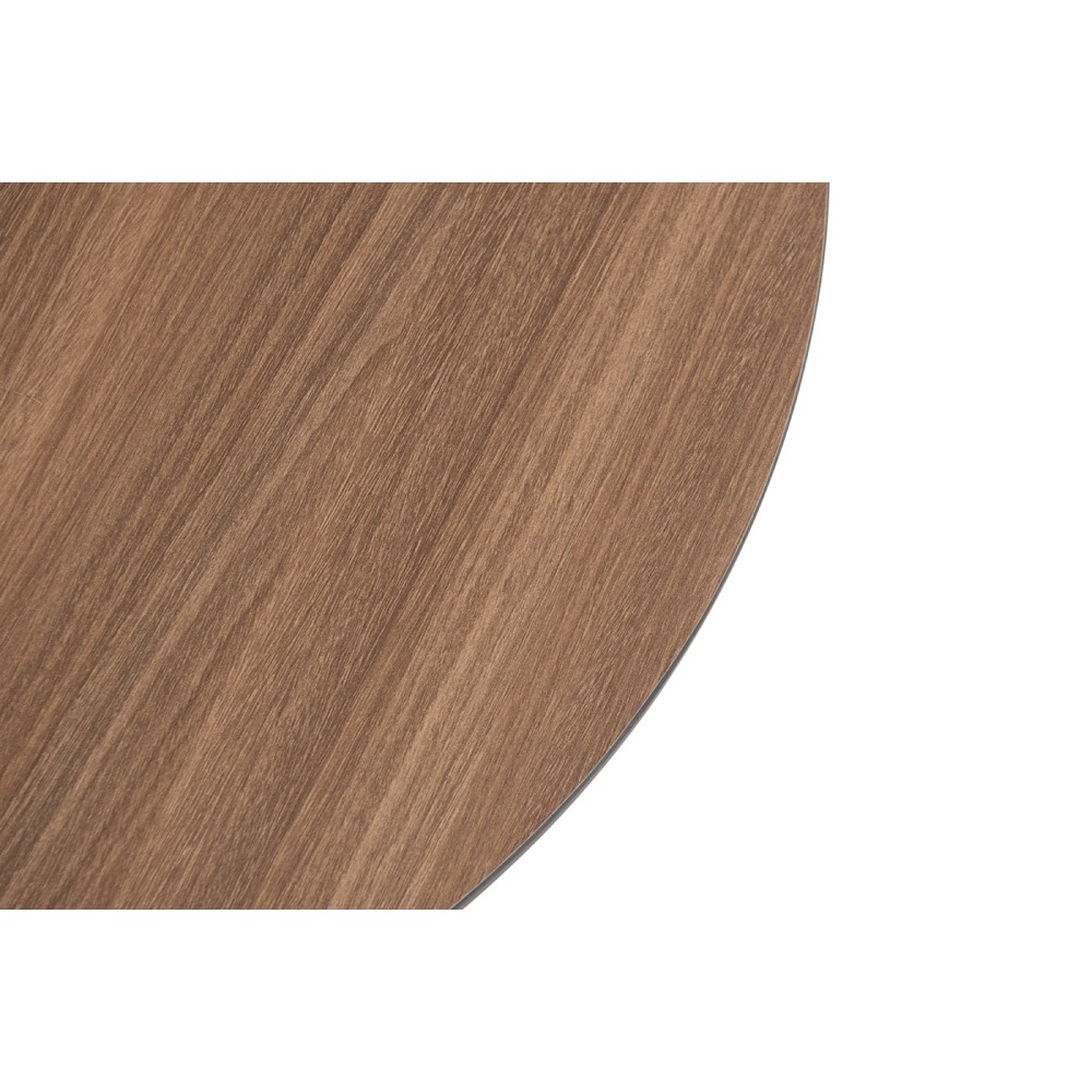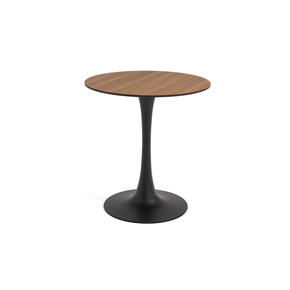 Интерьерный круглый стол «Каффе» со столешницей из HPL молочного цвета. Это высококачественный ударопрочный компакт-пластик, обладающий низкой пористостью, что предотвращает впитывание жидкостей, поэтому столы из HPL идеально подходит для обеденных зон. Толщина столешницы – 12 мм.