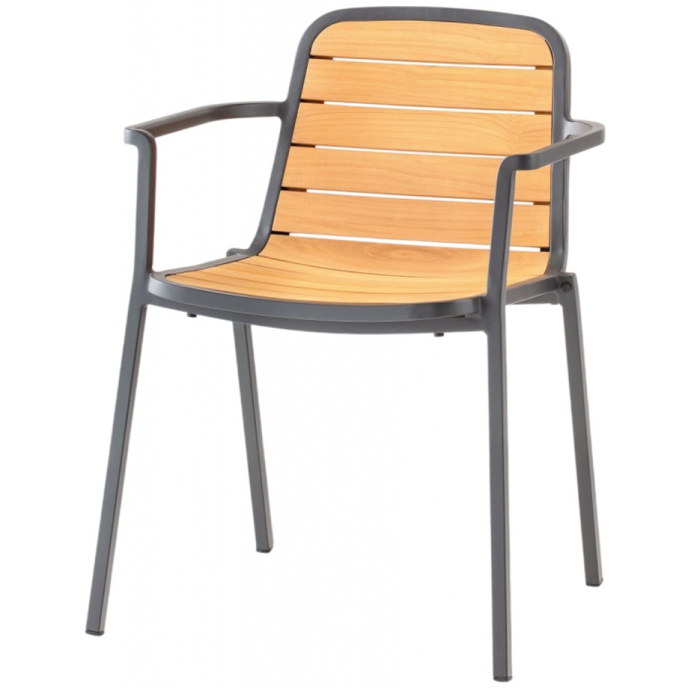 Данная продукция возится только под заказ с фабрики по предоплате. Уличное креслоNidaимеет алюминиевый окрашенный каркас с сиденьем и спинкой из планок тикового дерева. Прочное и стильное кресло подойдет для обустройства обеденных зон на открытых пространствах частного или общественного назначения.