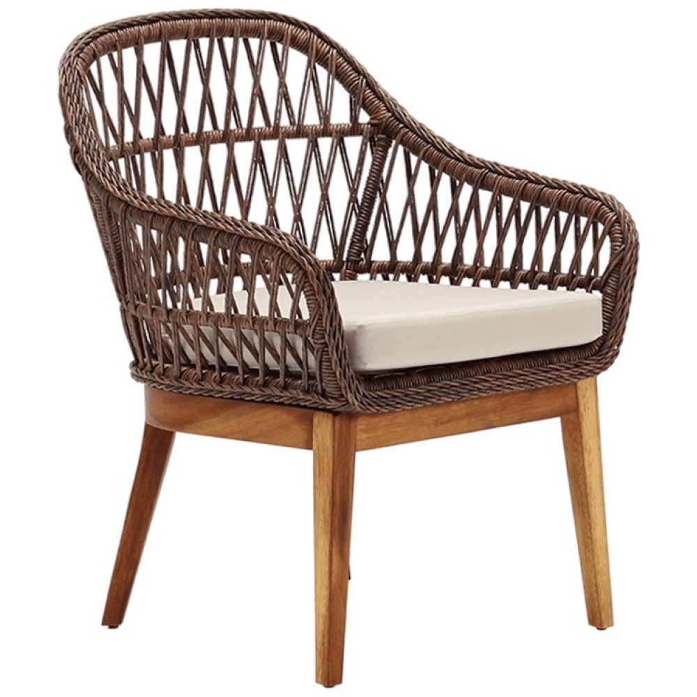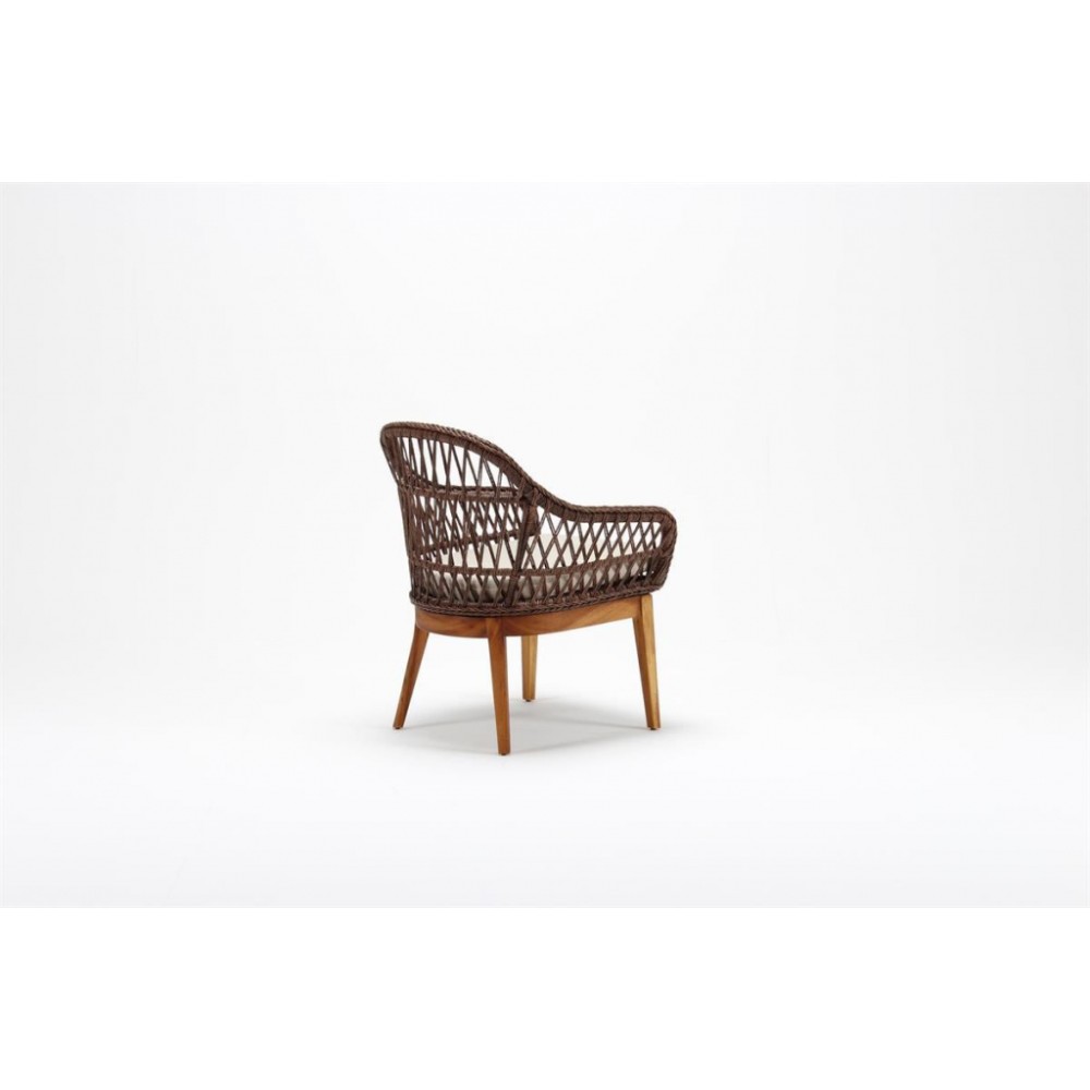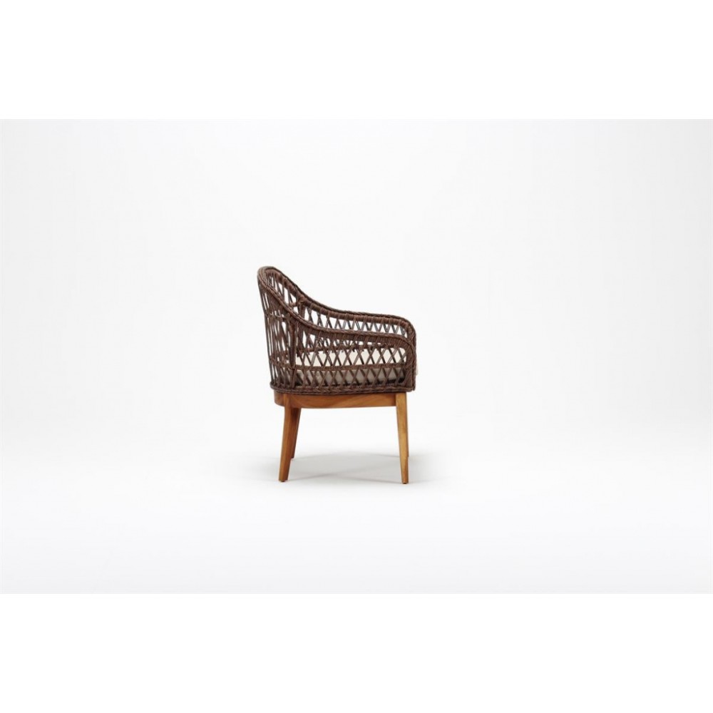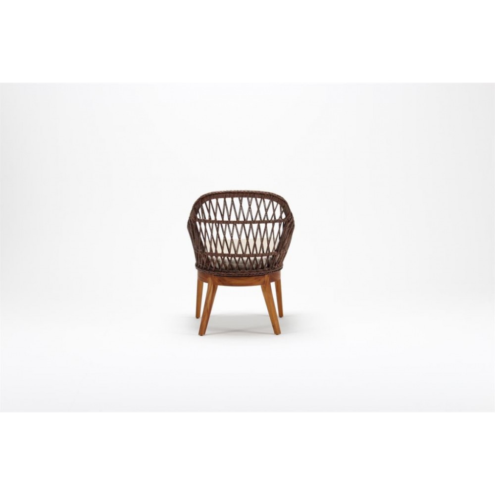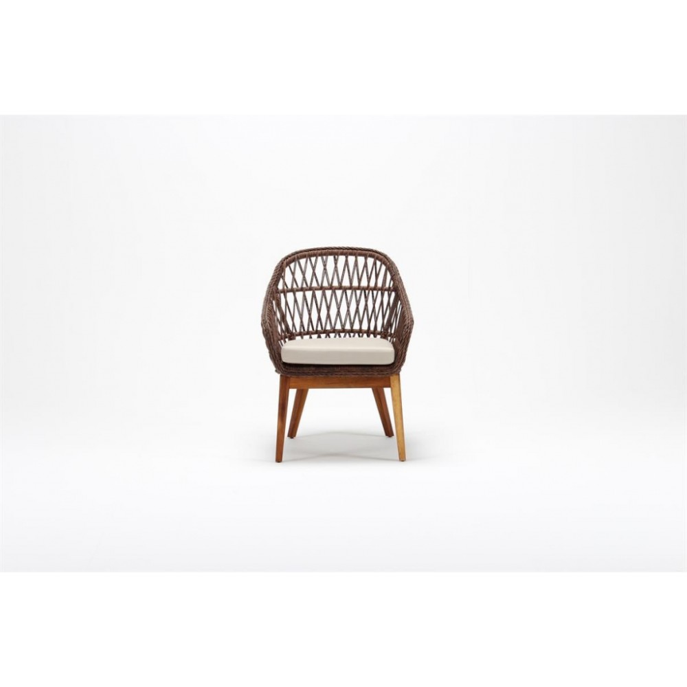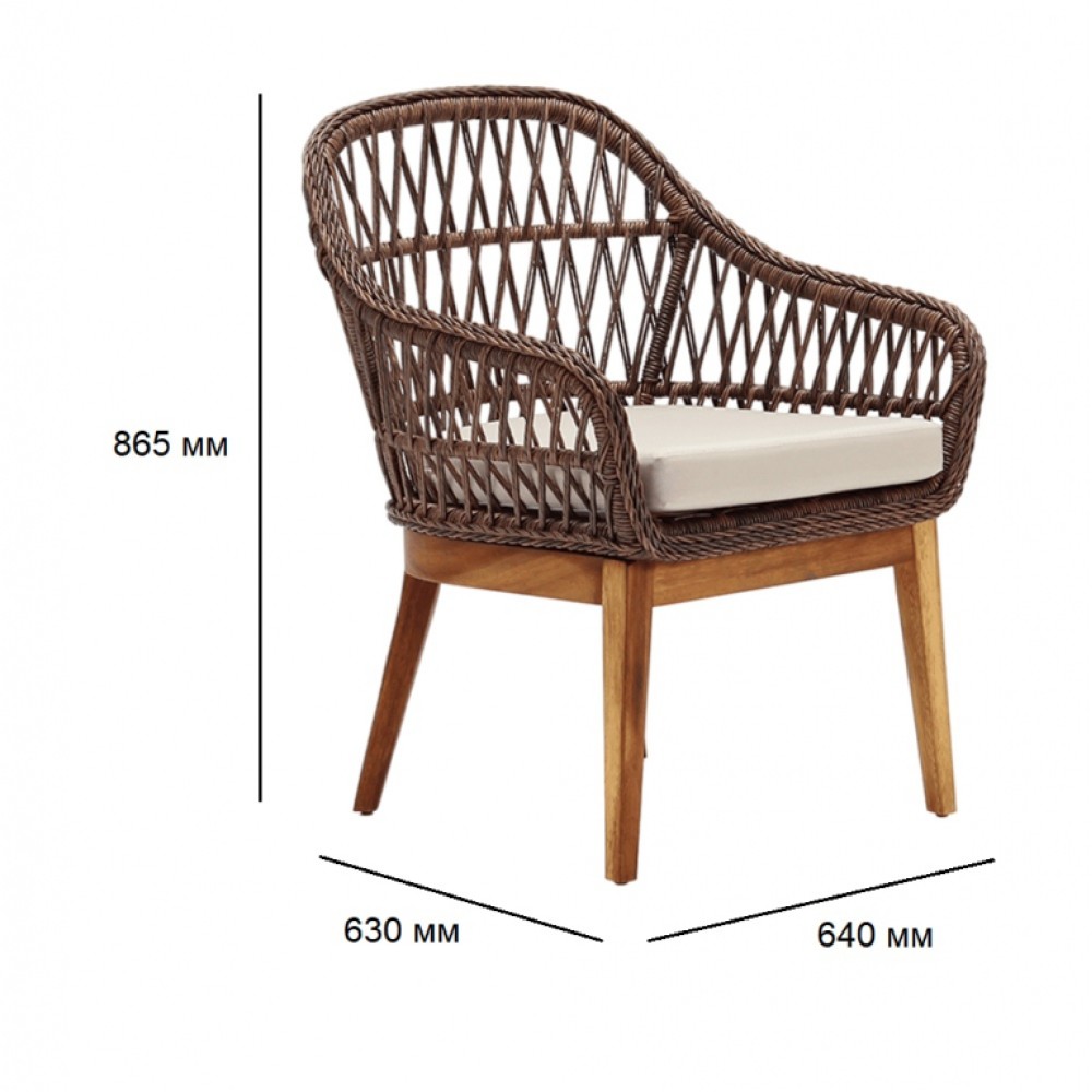 Уличное кресло Rosemary с корпусом из красивого плетения искусственного ротанга, деревянным каркасом и подушками из погодостойкой ткани идеально подходит для облагораживания открытых пространств отелей, ресторанов и кафе, добавляя стиль и комфорт в атмосферу заведения. С обтекаемой формой и привлекательным дизайном это кресло также прекрасно впишется в домашнюю обстановку, создавая уютную обеденную зону на террасе или в саду, где его эстетикой и практичностью Вы будете наслаждаться как с семьей, так и с гостями. Благодаря качественным материалам и изысканному исполнению, кресло предлагает идеальное сочетание стиля, комфорта и долговечности, отвечая потребностям как коммерческих, так и частных заказчиков. Особенности: Каркас может быть выполнен из древесины ироко или каштана класса А. Ироко имеет плотность 660 кг/м3 и степень сухости 94%, регион происхождения - Африка. Каштан имеет плотность 540 кг/м3 и степень сухости 93%, регион происхождения - Турция. Операции резки, фрезерования и шлифования выполняются на современных деревообрабатывающих станках, а перед сборкой дорабатываются ручным трудом профессиональных мастеров по дереву. Плетение выполнено из искусственного ротанга - волокон, импортируемых Wintec, компанией, которая является мировым лидером в области производства садовой мебели. Материал на 97% состоит из полиэтилена (ПЭ) и содержит УФ-добавки, безвредные для здоровья человека, дающие устойчивость к воде, дождю, ветру, влажности, холоду и солнцу. Синтетический ротанг предотвращает такие негативные ситуации, как заражение насекомыми и гниение, которые часто наблюдаются в садовой мебели. Материал успешно прошел испытания на устойчивость, растрескивание и сушку. Наполнитель подушки - пенополиуретан, обеспечивающий комфортное пребывание благодаря своей неравномерной клеточной структуре, поглощающей давление в области сиденья и спины. Такой материал сохраняет свои качества дольше по сравнению со стандартными губками. Обивка подушки выполнена из ткани высшего класса - 100% олефина, подходящего для использования на открытом воздухе, водостойкого при любых погодных условиях. Ткань успешно прошла 7 различных испытаний на устойчивость к свету, погодным условиям, ультрафиолету, стирке, морской воде, воде из бассейна и царапинам. Открыть инструкцию по уходу. Цена на сайте указана за модель с каркасом из каштана. Для уточнения всех возможных вариантов материала и цвета данного изделия обращайтесь к нашим менеджерам.