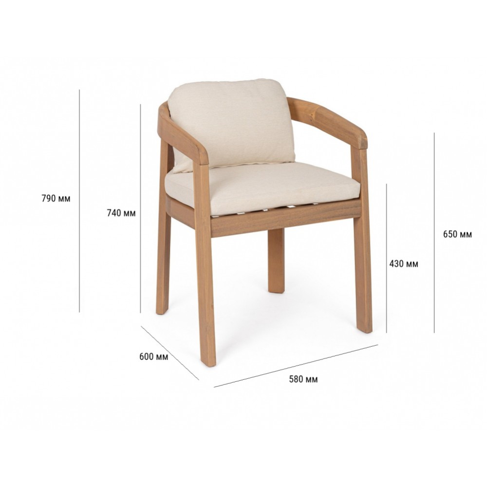 Минимальный заказ данной модели 2 шт. Данное изделие предназначено только для домашнего использования. Уличное обеденное кресло Pablo сочетает в себе простоту линий, теплоту натурального дерева и исключительный комфорт, делая его идеальным выбором для тех, кто ценит надежность, естественную красоту и долговечность.Широкое сиденье и удобная спинка обеспечивают расслабленную посадку. Особенности: Каркас выполнен из 100% акации FSC с масляной отделкой под тик. Подушки из водоотталкивающей олефиновой ткани (100% полипропилен). Оцинкованные стальные винты. Кресло поставляется в разобранном виде и требует сборки. Вся деревянная мебель должна обрабатываться специальным маслом или пропиткой минимум 1 раз в 6 месяцев (в условиях высокой влажности обработку следует проводить чаще). Для данной мебели не рекомендуются резкие температурные перепады. Мебель из дерева акации должна использоваться только под навесом. Дерево является натуральным материалом, поэтому любые трещины, неравномерные природные рисунки, различность оттенков ‐ являются естественным процессом, который вызван температурными изменениями или влажностью. Открыть инструкцию по использованию и уходу. Для уточнения всех возможных вариантов материала и цвета данного изделия обращайтесь к нашим менеджерам.