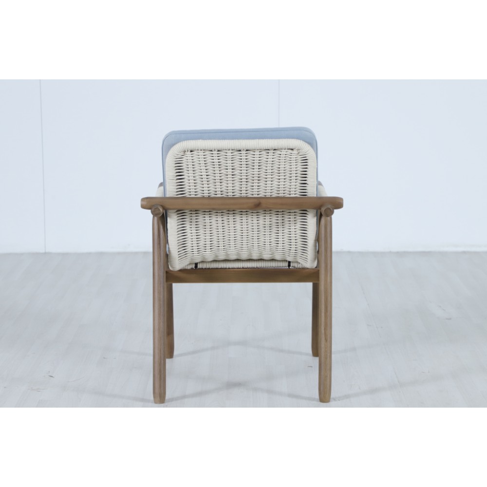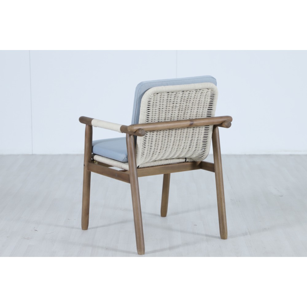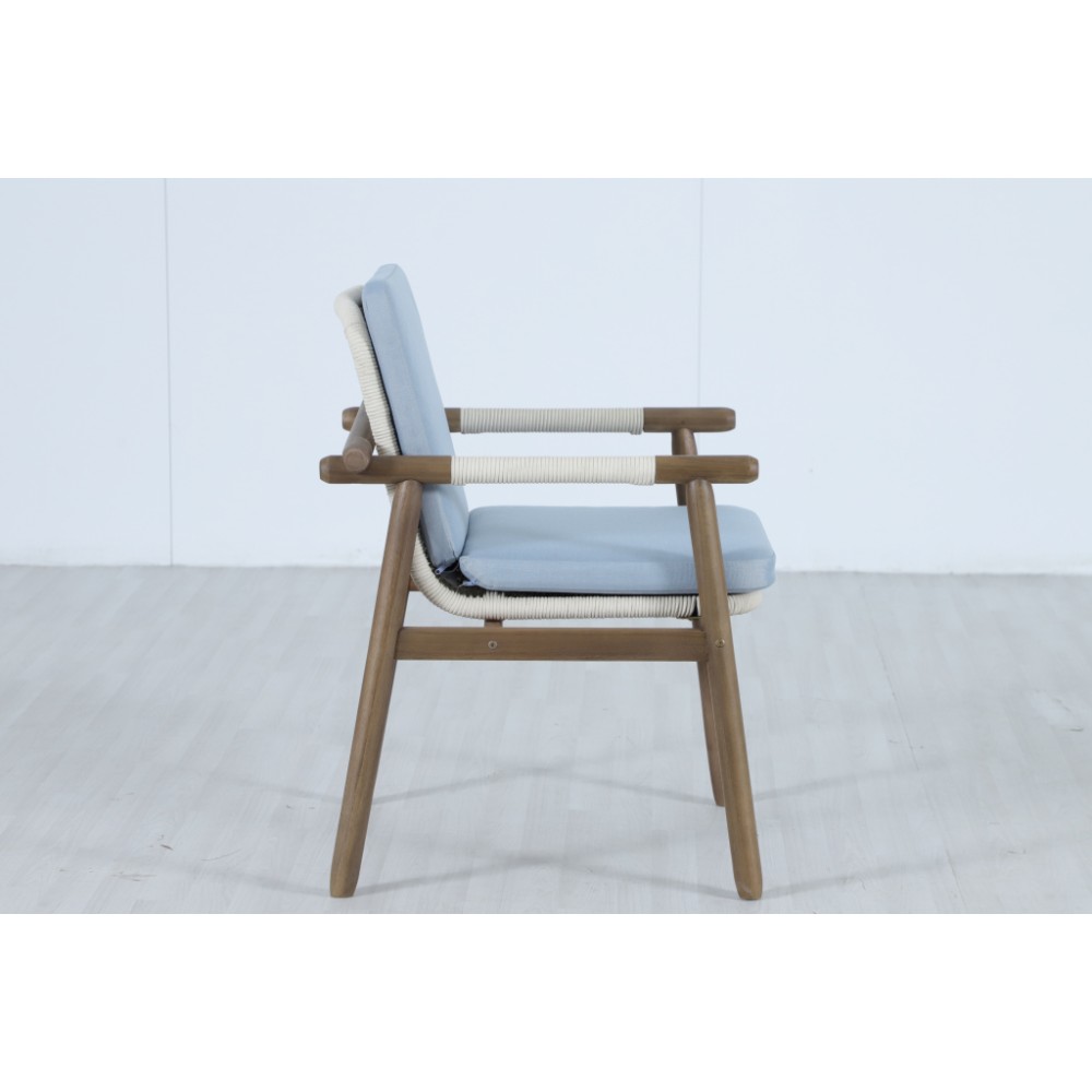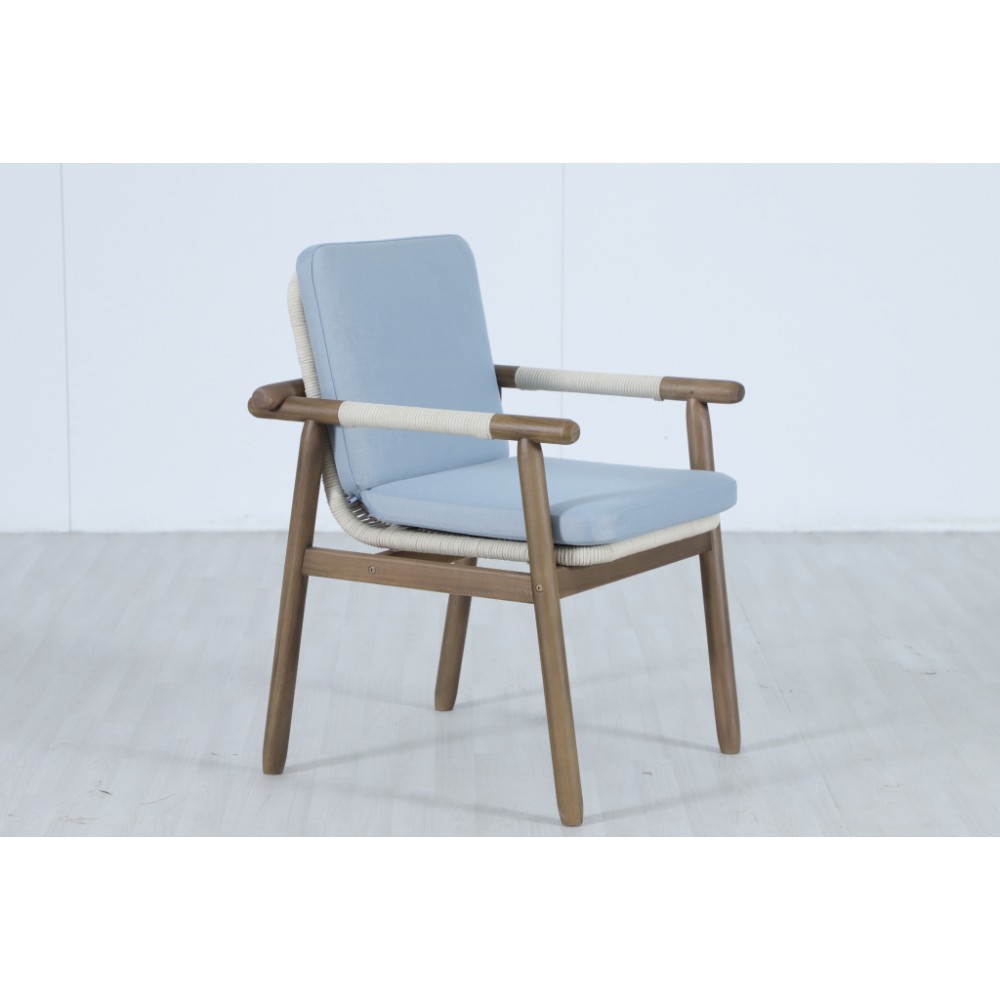 Apoyo - это стильная коллекция уличной мебели из массива АКАЦИИ, в которой сочетаются натуральное верёвочное (роуп) плетение, тёплая текстура дерева и комфортные подушки. Превосходноерешение для террасы или веранды, подходящее для тех, кто ценит долговечность и эстетический вид уличной мебели Особенности: Материал - АКАЦИЯ, отделка экомаслом грецкий орехTPW #4. Веревочное плетение роуп VPR - PR388на спинке, сиденье и подлокотниках излучает стиль в сочетании с деревянными поверхностями. Древесина, из которой изготовлена мебель, имеет сертификацию FSC (Forest Stewardship Council) - гарантия качества и происхождения древесины. Знак FSC - показатель того, что продукция происходит из леса, в котором ведется экологически и социально ответственное лесное хозяйство. Благодаря своей долговечности, прочности и устойчивости к вредителям эта древесина была создана для изготовления садовой мебели. Страна происхождения древесины: Вьетнам, Малайзия. Средняя плотность древесины: 550 кг/м³. Коррозионно-стойкая, анодированная фурнитура из нержавеющей стали. Подушки в комплекте, ткань подушек - олефин, наполнитель - толстый поролон. Материалы устойчивы к УФ-излучению и другим погодным воздействиям. Цвет подушек - голубой W1887-980.