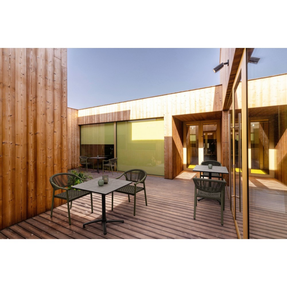 Минимальный заказ данной модели 18 шт. Canarias- элегантное кресло с плетением из искусственного ротанга, созданное специально для профессионального использования в сфере HoReCa. Прочная рама из алюминия с порошковым покрытием гарантирует исключительную долговечность и устойчивость к коррозии, а плетение из крученого синтетического волокна не требует специального ухода и выдерживает любые погодные условия. Изящные линии подлокотников и веерообразный рисунок спинки придают модели особый шарм и изысканность. Это практичное решение для ресторанов, отелей, кафе и летних веранд. Важным преимуществом для профессионального использования является возможность штабелирования -кресла легко компактно хранить или быстро менять конфигурацию зала. Легкий алюминиевый каркас обеспечивает удобство перемещения, а устойчивые ножки с защитными наконечниками не повредят напольное покрытие. Нейтральная цветовая гамма и лаконичный дизайн позволяют креслу гармонично сочетаться с различными стилями интерьера, создавая атмосферу комфорта для ваших гостей. Особенности: Конструкция из алюминия с порошковым покрытием (полиэстер). Плетениеиз крученого синтетического волокна. Возможность штабелирования. Открыть инструкцию по использованию и уходу.