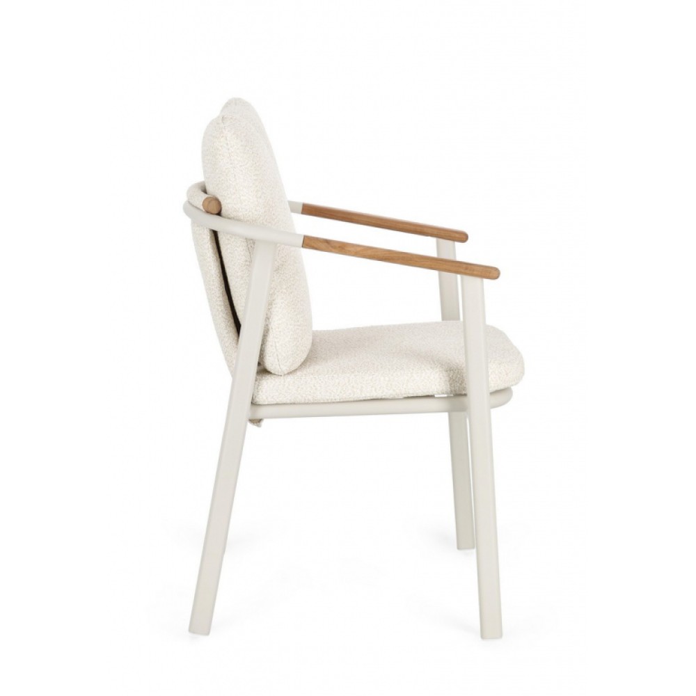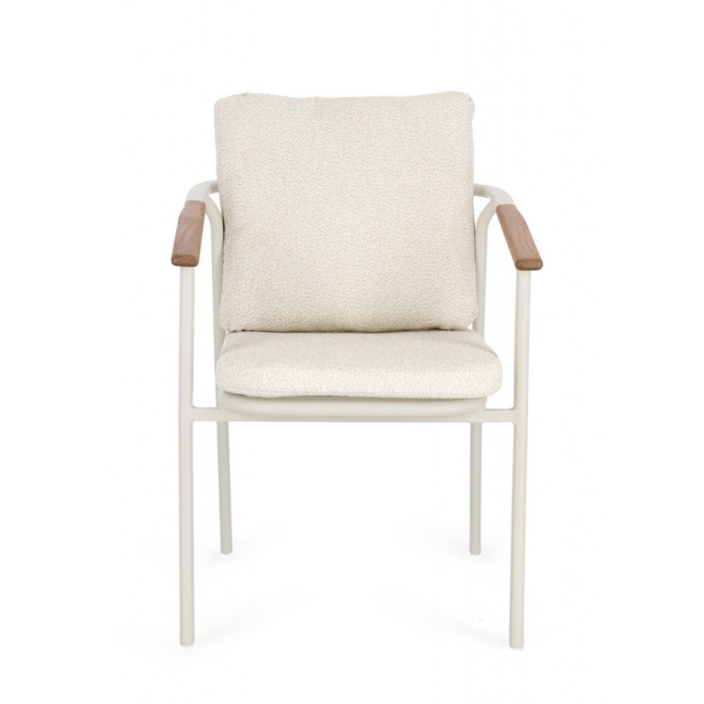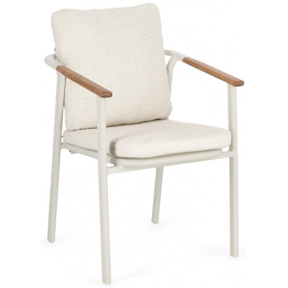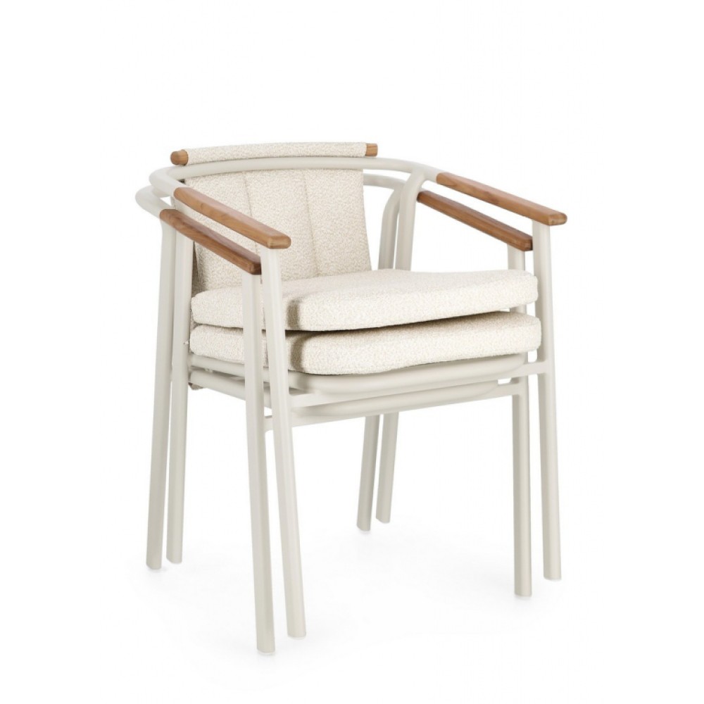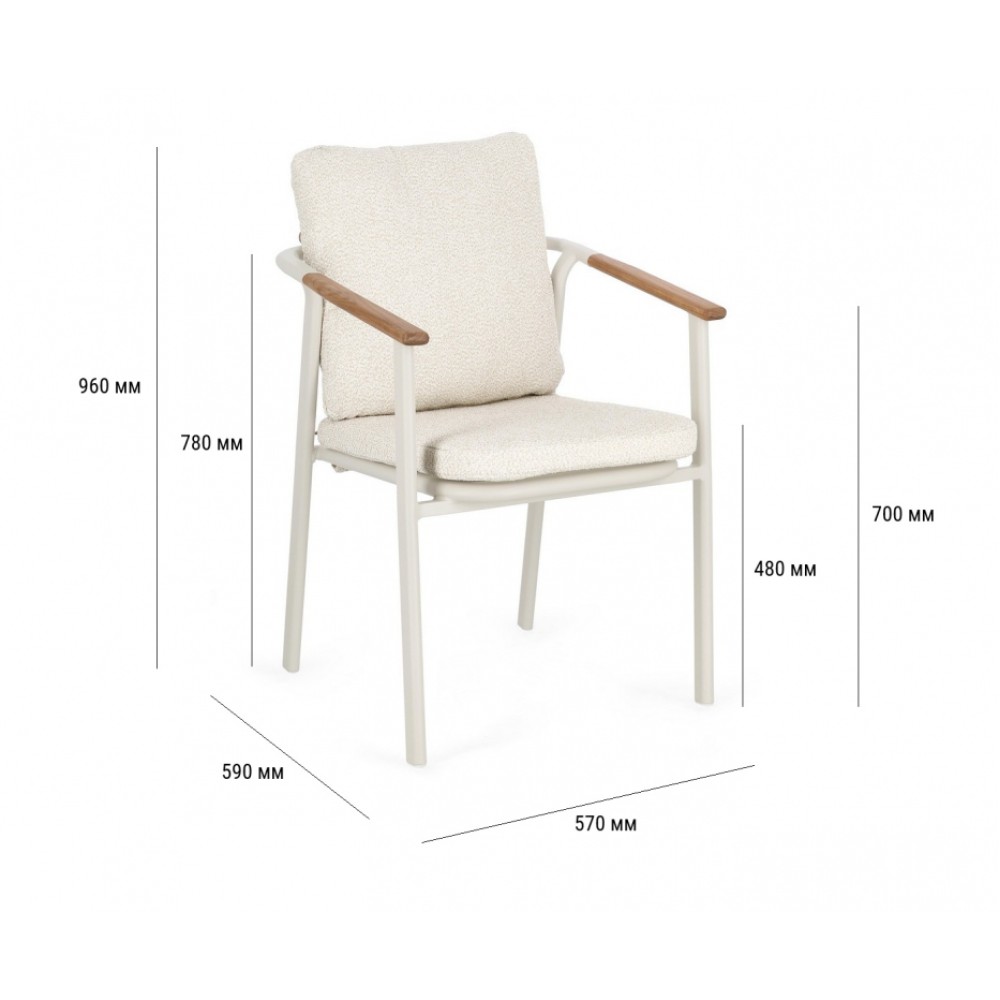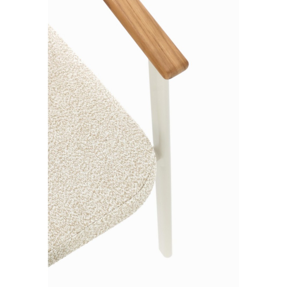 Минимальный заказ данной модели 4 шт. Leonida - элегантное кресло, в котором современный минимализм встречается с природным теплом. Основой модели служит прочный каркас из алюминия с долговечным порошковым покрытием, дополненный изысканными вставками из натурального тикового дерева на подлокотниках и спинке. Особую текстуру и уют интерьеру придает обивка из инновационной водоотталкивающей олефиновой ткани с актуальным эффектом букле. Съемные мягкие подушки, выполненные из того же материала, обеспечивают максимальный комфорт для гостей и простоту в обслуживании. Эта модель создана специально для профессионального использования в сфере HoReCa. Благодаря возможности штабелирования, кресла легко компактно хранить или быстро менять расстановку мебели в зале. Сочетание устойчивого к влаге покрытия, прочного металла и специализированной ткани делает это кресло идеальным решением как для стильных интерьеров ресторанов и лобби отелей, так и для открытых летних веранд, где важны долговечность и сохранение презентабельного внешнего вида в любых погодных условиях. Особенности: Конструкция из алюминия с порошковым покрытием (полиэстер). Спинка из водоотталкивающей олефиновой ткани (100% полипропилен) с эффектом букле. Подлокотники и спинка с вставками из тикового дерева. Съемные подушки из водоотталкивающей олефиновой ткани (100% полипропилен) с эффектом букле. Возможность штабелирования. Открыть инструкцию по использованию и уходу. Для уточнения всех возможных вариантов материала и цвета данного изделия обращайтесь к нашим менеджерам.