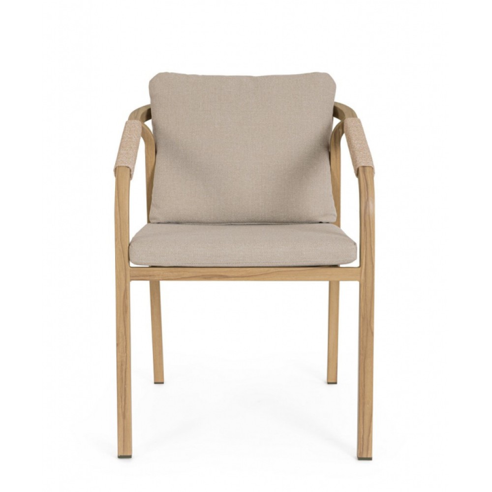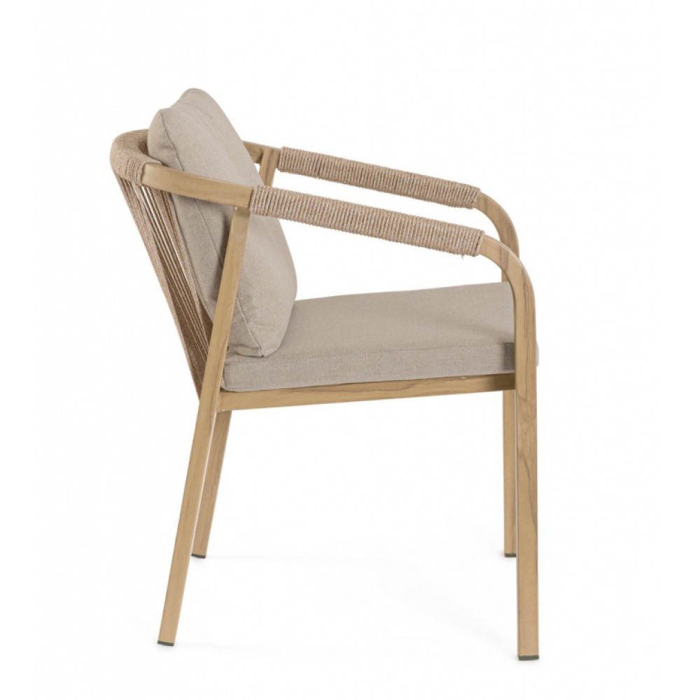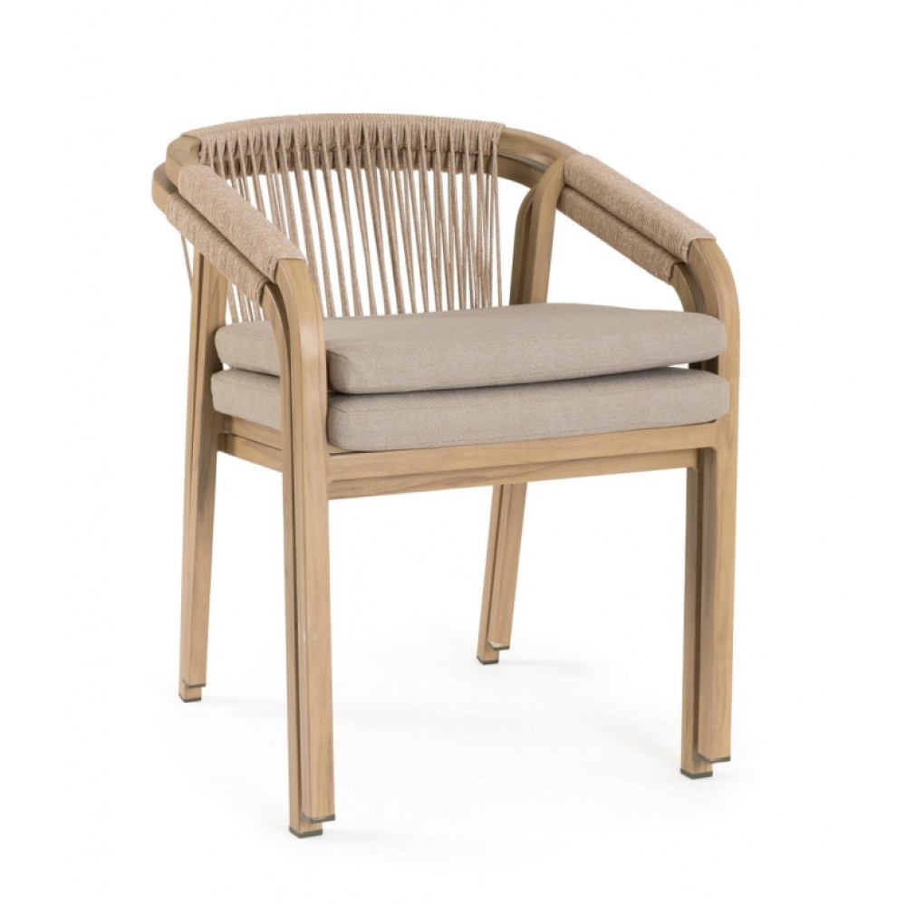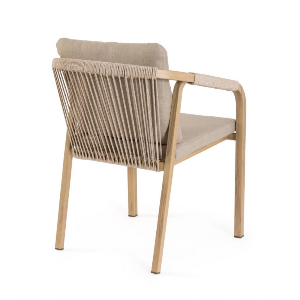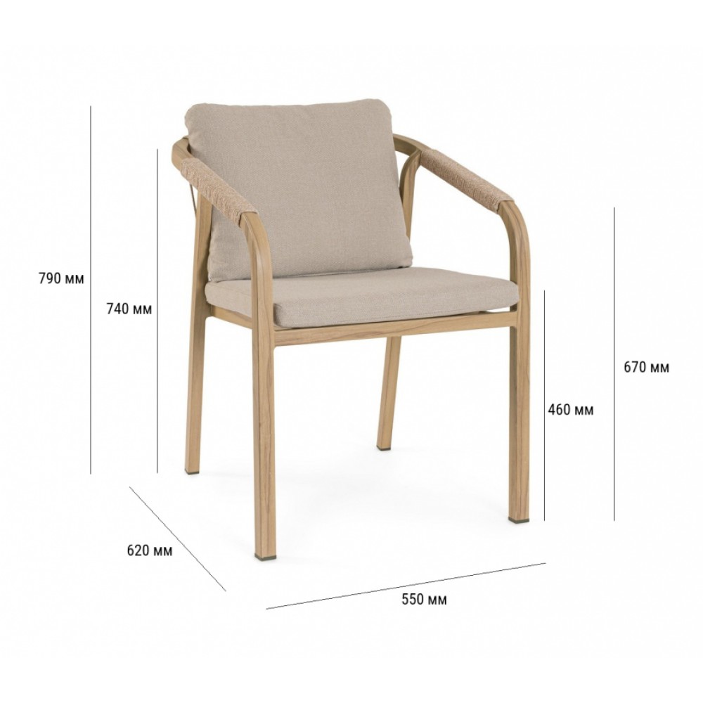 Минимальный заказ данной модели 4 шт. Данное изделие предназначено только для домашнего использования. Kalimera- изысканное кресло, которое сочетает в себе природную эстетику и современные технологии. Каркас из алюминия с порошковым покрытием, имитирующим текстуру дерева, обеспечивает исключительную долговечность и устойчивость к погодным условиям при визуальном тепле натурального материала. Спинка и подлокотники декорированы плетеным полиэстеровым шнуром диаметром 5 мм, создающим эффектный визуальный рисунок и дополнительную прочность конструкции. Мягкие съемные подушки сиденья и спинки выполнены из водоотталкивающей олефиновой ткани, которая проста в уходе и сохраняет презентабельный вид даже при интенсивной эксплуатации. Возможность штабелирования позволяет компактно хранить кресла. Легкий, но прочный алюминиевый каркас упрощает перемещение мебели, а износостойкие материалы гарантируют долговечность. Утонченный дизайн с элементами "поддерево"и плетением роуп создает атмосферу уюта и гостеприимства. Особенности: Конструкция из алюминия с порошковым покрытием (полиэстер), эффект "под дерево". Плетение выполнено из круглогополиэстерового роупаØ5 мм. Съемные подушки сиденья и спинки с водоотталкивающей тканью из олефина (100% полипропилен). Возможность штабелирования. Открыть инструкцию по использованию и уходу. Для уточнения всех возможных вариантов материала и цвета данного изделия обращайтесь к нашим менеджерам.