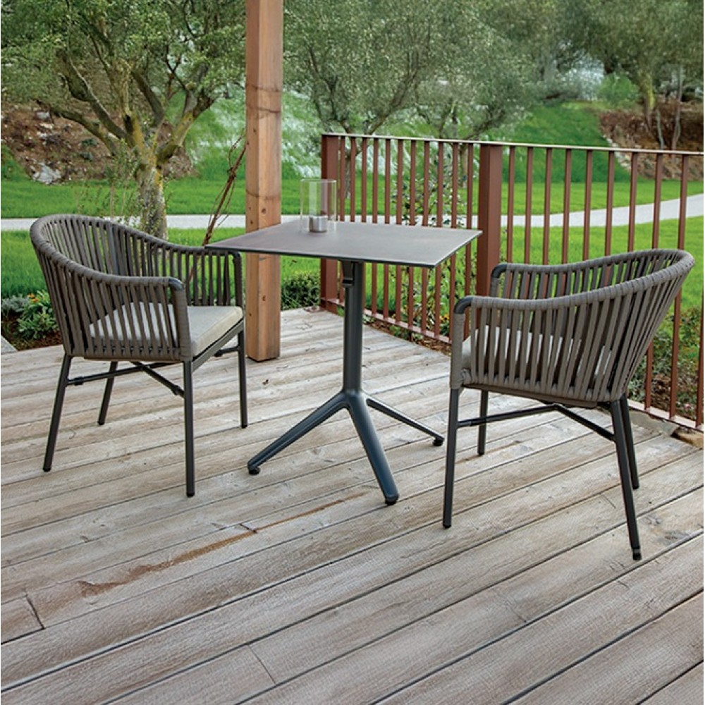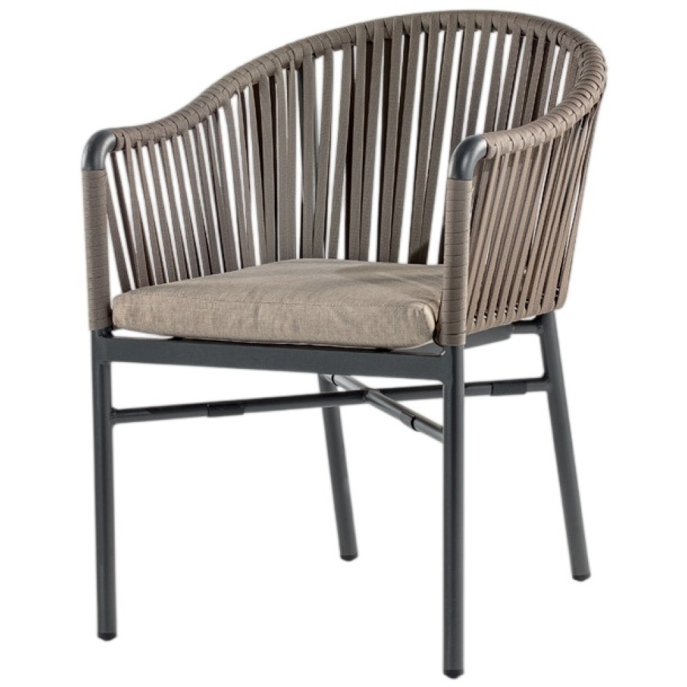 Данная продукция возится только под заказ с фабрики по предоплате. Уличное кресло Monaco с эргономичным и современным дизайном с алюминиевым каркасом и спинкой в канатном плетении, изготовленном из нитей полиэтилена (роуп), покрытых текстиленом. на сиденье подушка со съемным чехлом из олефина, защищающей от атмосферных воздействий и пятен. Если снять подушку, кресло можно штабелировать. Модель подходит для открытой террасы бара, ресторана, отеля или небольшого частного зимнего сада. Возможность штабелирования: до 10 шт.