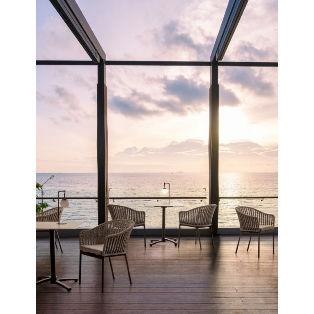 Минимальный заказ данной модели 4 шт. Salines- современное плетеное кресло, которое идеально сочетает в себе стильный дизайн и функциональность для использования на открытом воздухе. Прочный каркас из алюминия с порошковым покрытием обеспечивает долговечность и устойчивость к коррозии, а плетение из полиэстеровой веревки выдерживает любые погодные условия, сохраняя безупречный внешний вид годами. Эргономичная форма с объемной спинкой обеспечивает максимальный комфорт, а съемная подушка из водоотталкивающей ткани олефин проста в уходе и быстро сохнет. Это кресло создано для профессионального использования в сфере HoReCa и частного применения на террасах, верандах и в садах. Благодаря возможности штабелирования мебель легко компактно хранить в межсезонье или при необходимости быстро освободить пространство. Универсальный дизайн и нейтральная цветовая гамма позволяют креслу гармонично вписаться в любой современный интерьер, создавая атмосферу уюта и гостеприимства для ваших гостей. Особенности: Конструкция из алюминия с порошковым покрытием (полиэстер). Плетение для наружного использования из полиэстеровой веревки. Съемнаяподушкаиз водоотталкивающей ткани олефин (100% полипропилен). Возможность штабелирования. Открыть инструкцию по использованию и уходу.
