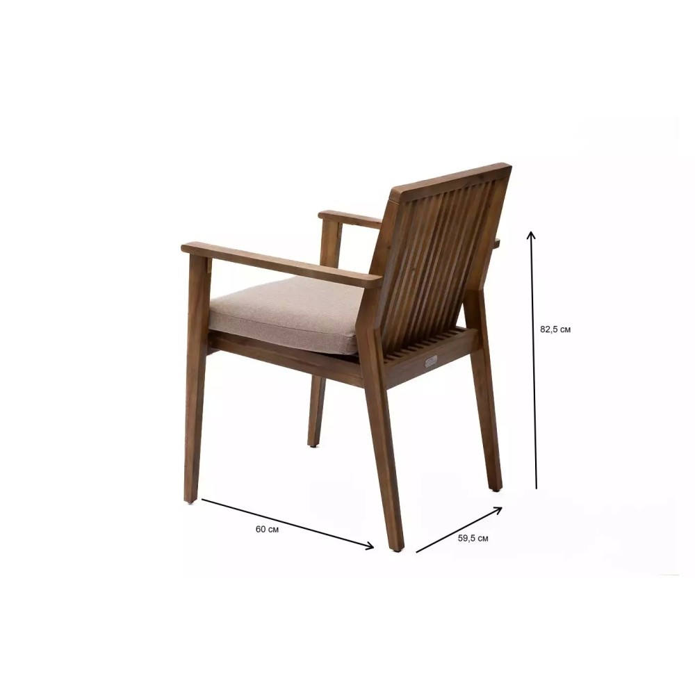 Современный и эргономичный элемент для организации стильной обеденной зоны, воплощающий эстетику скандинавского дизайна и безграничные возможности комфорта. Стул МОНА выполнен из массива акации с теплой натуральной отделкой и дополнен мягкой подушкой нежного бежевого оттенка, создавая идеальное место для неспешных трапез, чтения или созерцания сада на террасе, в саду или на даче.