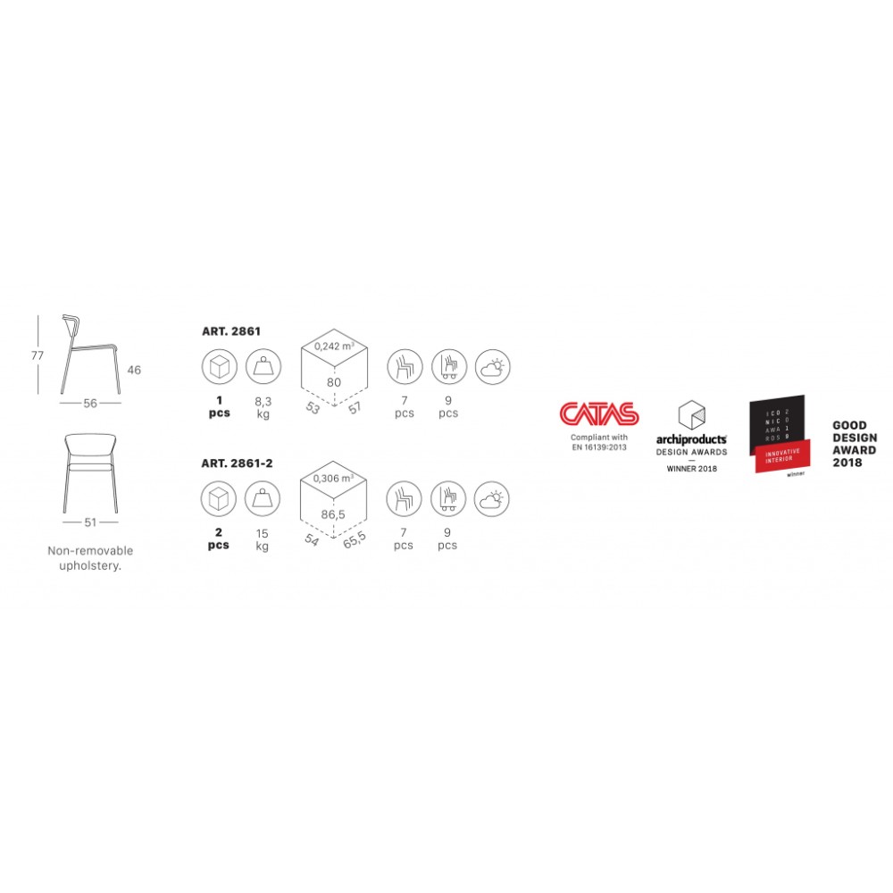 Большая семья Lisaрасширяется в сторону улицы. Новая водонепроницаемая версия характеризуется совершенно новыми покрытиями для наружного использования в четырех цветах с соответствующей трубчатой стальной структурой. Мягкий стул Lisa Waterproofна стальных ножках с деревянным корпусоми мягкой обивкойот дизайнерa Marcello Ziliani прекрасно впишется в обстановку частного дома, летней веранды,офисное пространство или современный интерьер кафе, бара или ресторана. Стулья Lisa вдохновлены элегантными интерьерами 1950-х и 60-х годов. Тонкая трубчатая конструкция охватывает и поддерживает спинкус мягким сиденьем. Особенности: Четыре ножки выполнены из оцинкованной и окрашенной стали диаметром 16 мм. Обивка стула выполнена из влагозащитной ткани. Стульялегко штабелируются до 7 шт. для удобного хранения и транспортировки. Данная модель предназначена для использования на летних верандах, террасах, фудкортах, а такжево внутреннем интерьере кафе, ресторанов. Обращаем ваше внимание, что каждый цвет каркаса сочетается только с определенными цветами обивки. При выборе цветовой комбинацииориентируйтесь на таблицу с палитрой, где указаны доступные варианты сочетаний. Коллекция кресел и стульев Lisa получила престижную награду Archiproducts Design Awards 2018 в категории мебели. SCAB Design гордится мировым признанием, демонстрирующим нам, как компания фокусируется на новых дизайнерских решениях, которые сочетают «эстетику, функциональность и возможности». Коллекция удостоена престижной мировой награды Iconic Award 2019. Lisa была выбрана из 600 продуктов за выдающиеся качества дизайна и будет представлена в музее современного искусства Kölnischer Kunstverein на выставке под названием “Design in the Kunstverein”. Также коллекция Lisa получила одну из самых желанных международных наград: Good Design Award 2018, ежегодно присуждаемой Чикагским Атенеумом - международным музеем архитектуры и дизайна в Чикаго. Конкурс отбирает самые инновационные и экологически устойчивые продукты, которые помогают улучшить образ жизни современного общества. Посмотреть каталог отделоки обивок. Посмотреть технические характеристики. Для уточнения всех возможных вариантов материала и цвета данного изделия обращайтесь к нашим менеджерам!