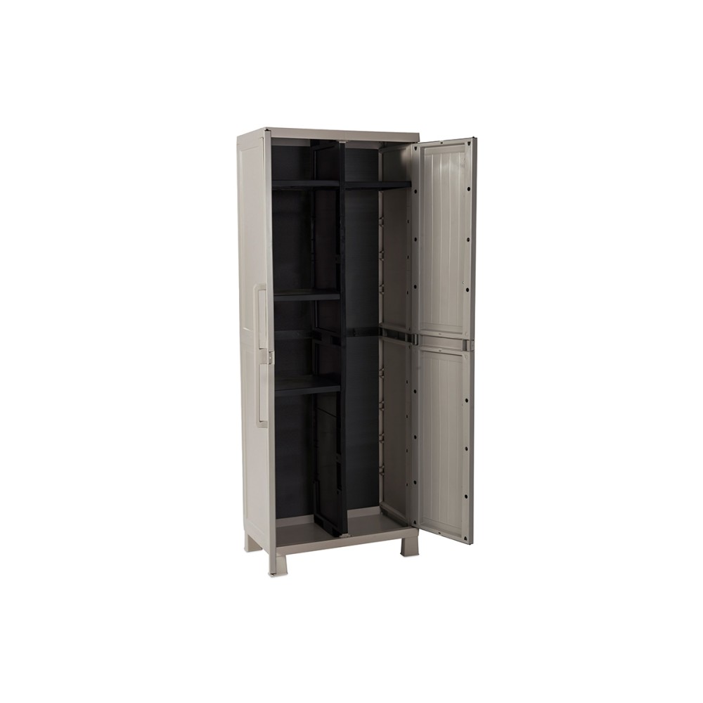 Компактный пластиковый шкаф для удобного и аккуратного хранения хозяйственных принадлежностей и инвентаря. Идеально подойдет для дома, гаража, подвала или кладовой.