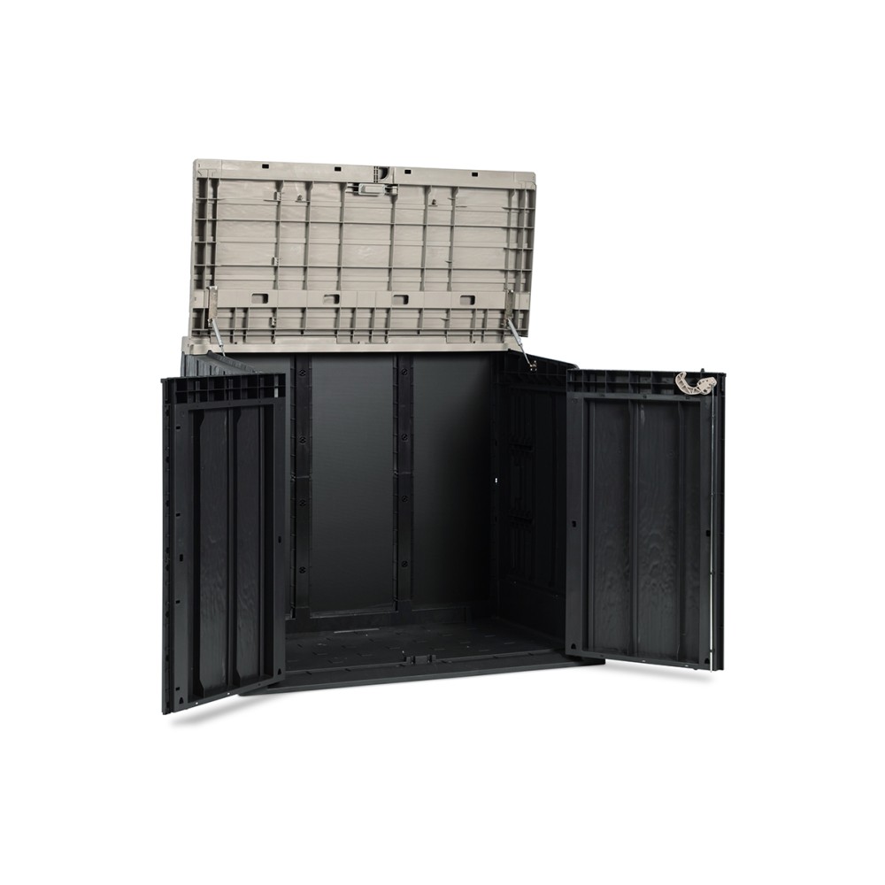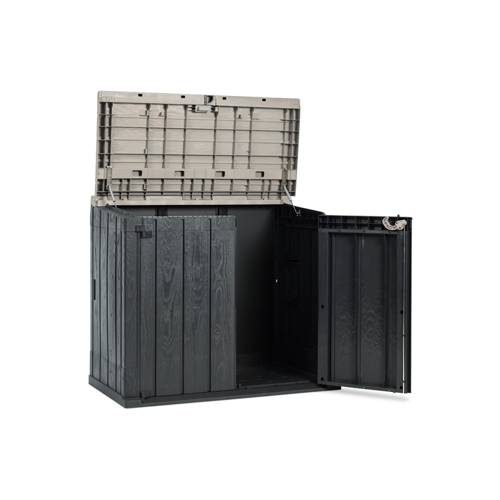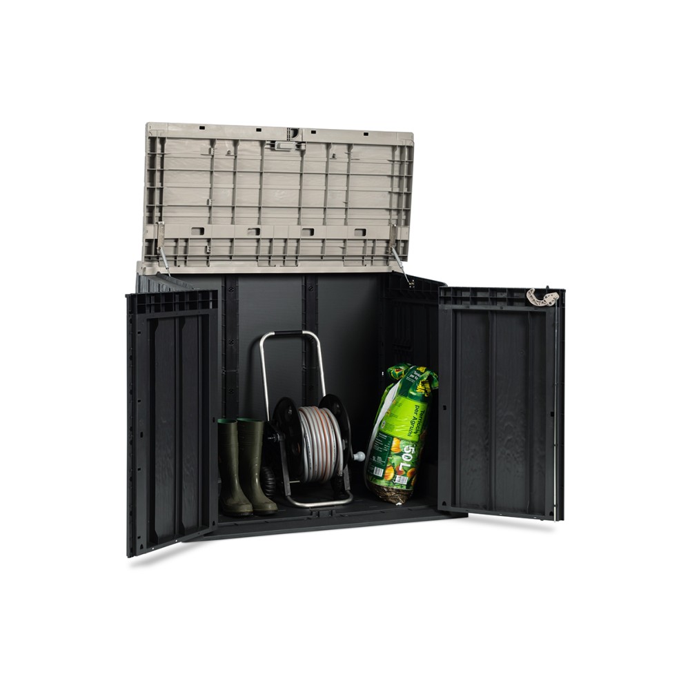 Ящик Stora Way - это практичное и эффективное решение для хранения крупногабаритных садовых инструментов, мусорных контейнеров и инвентаря. На боковых стенках можно разместить деревянные полки (не входят в комплект), размеры и крепления которых указаны на монтажных схемах. Отверстие для навесного замка позволяет хранить вещи в полной безопасности (навесной замок не входит в комплект поставки).