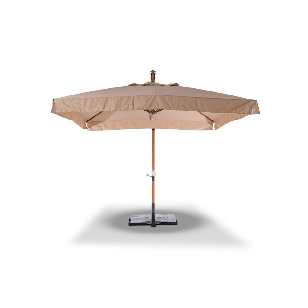Установка зонта предполагает 2 способа: фиксация с помощью бетонных утяжелителей или цементирование в поверхность предполагаемой зоны отдыха.