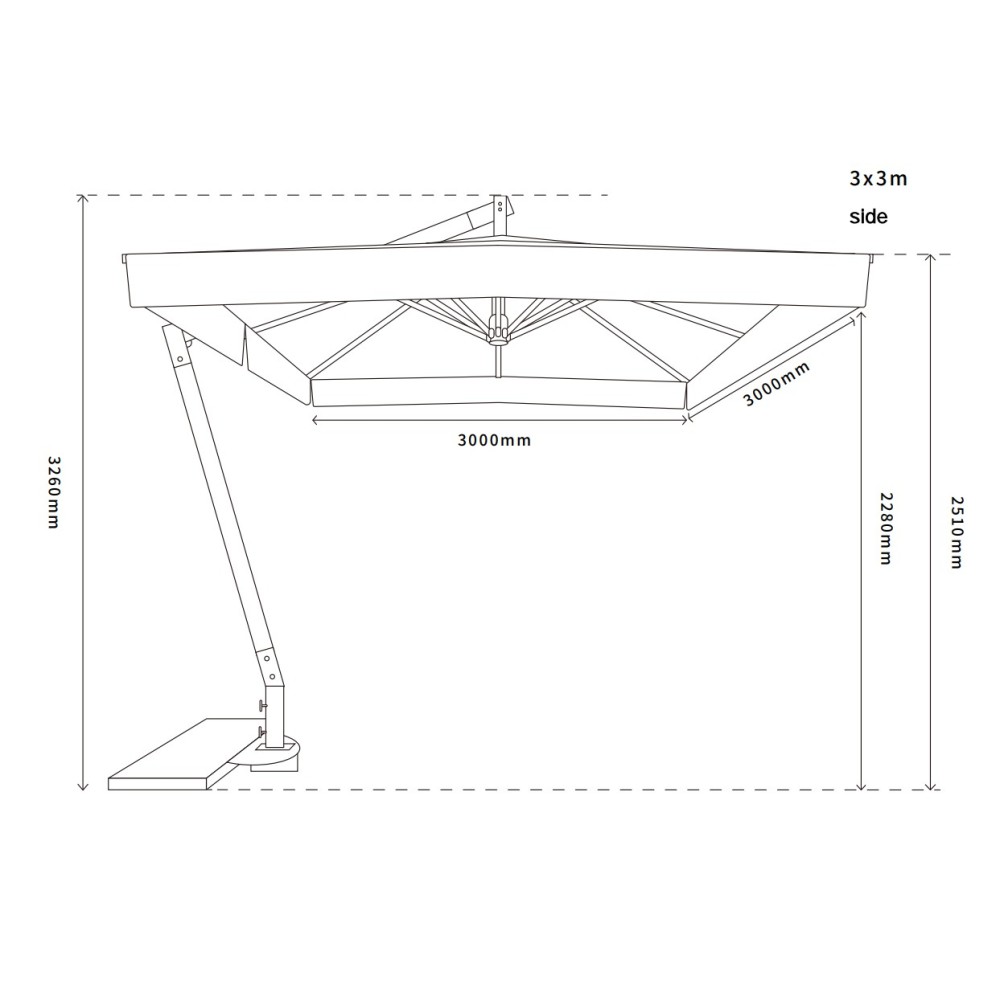 Уличный зонт «Корсика» на боковой алюминиевой опоре с размером купола 3×3 м.