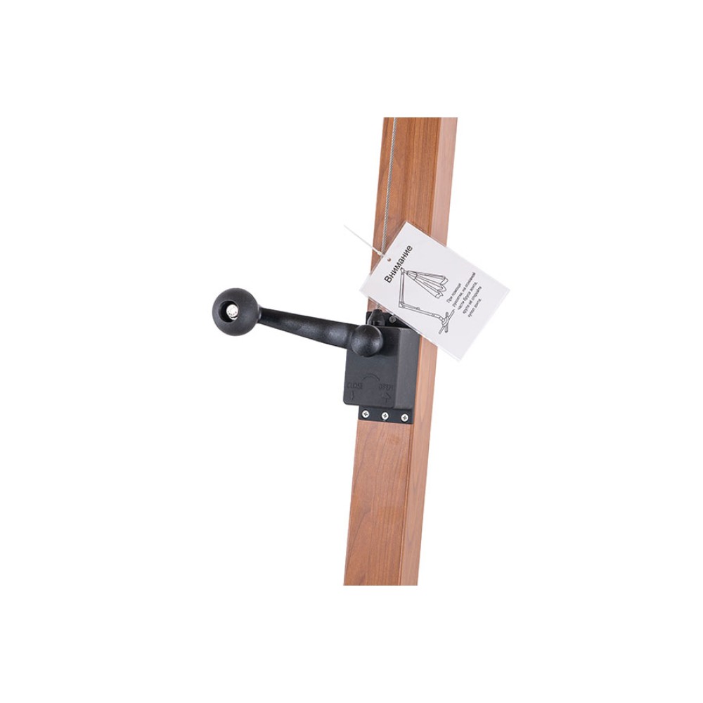 Зонт также оснащен механизмом раскрытия купола с пластиковой ступицей и ручкой с диаметром вращения - 115 мм.