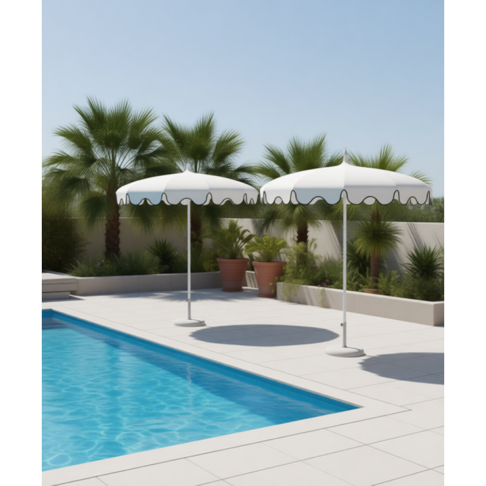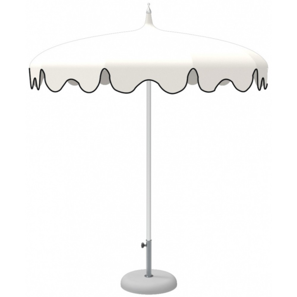 Зонт Dali - модель, которая украсит пляжи, бассейны, открытые летние площадки у моря и привнесет нотку восточной атмосферы. Легко сочетается с различными моделями лежаков, шезлонгов и кресел Magnani. Особенности модели: опора (диаметр 40 мм, длина 1600 мм) выполнена из анодированного алюминия; байонетная система блокировки во время ветра; система безопасного открытия/закрытия Prestige; 10 спиц из оцинкованной и окрашенной стали, стойкие к действию соленой воды и других атмосферных явлений (110/10 cm/n°); длина спицы 1100 мм, т.к. спицы не прямые, диаметр купола приблизительно 1800 мм; кривизна спиц увеличивает аэродинамическое сопротивление; купол выполнен из ткани Tempotest Para mare - 100% окрашенный акрил плотностью 290 г/м², гарантия от выцветания в течение 6 лет; возможность выбрать вариант волана (A, B, C); по запросу доступныдополнительные аксессуары:пластиковый столик, база для зонта, пепельница, механизм наклона, ветровой клапан (приобретаются отдельно). В комплект входитнижняя алюминиевая стойка (Lower Pole) Ø40 мм. Высота стойки может составлять 800 мм, 1000 мм, 1200 мм. Может быть выполненас острием или без. Цена на сайте указана за модель с куполом изткани код 15по палитрес фигурным воланом и кантом в цвете код 24. Стоимость других моделей и дополнительную информацию уточняйте у менеджера.