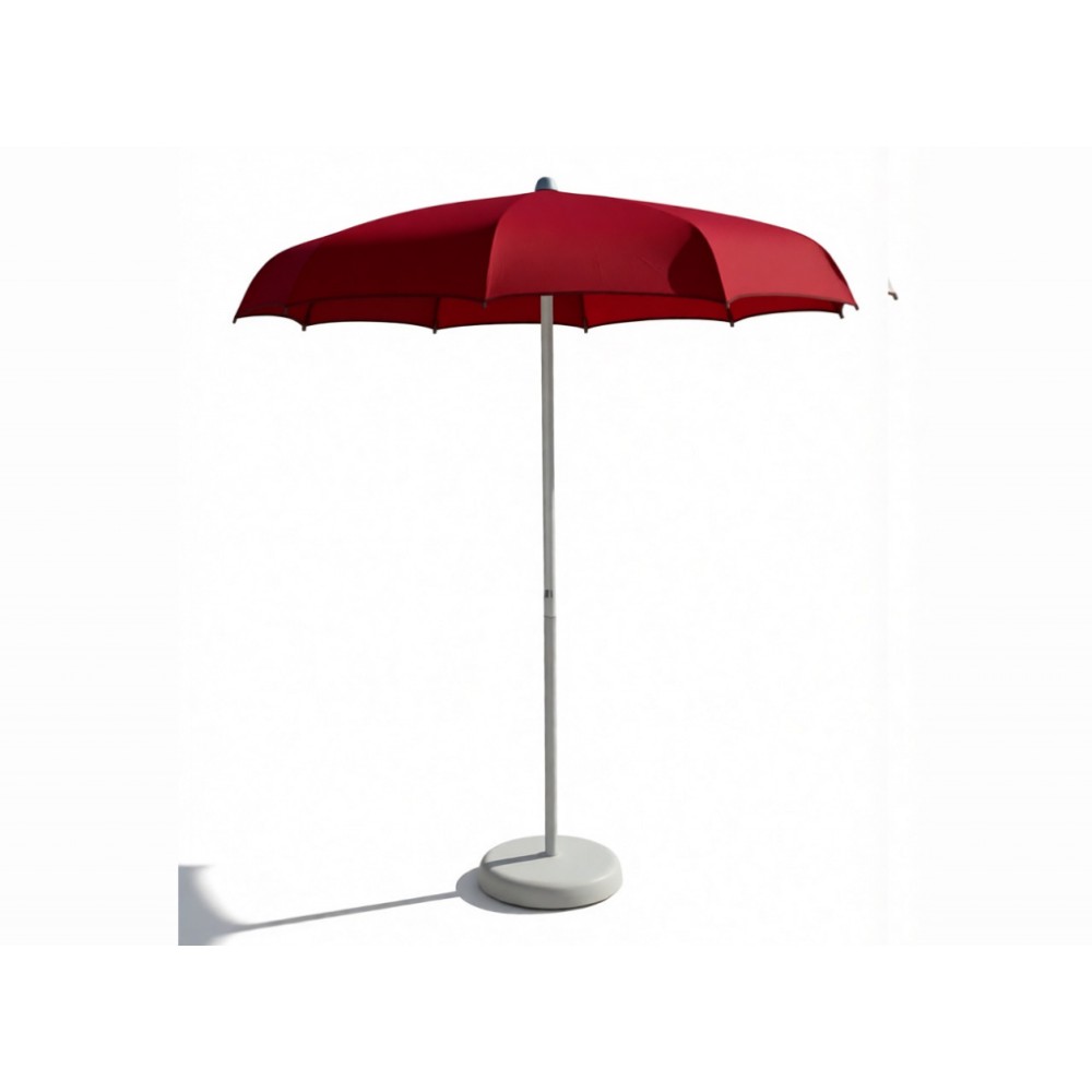 Зонт Klee - элегантная модель с изогнутыми спицами придает изысканности пляжам, бассейнам, открытым площадкам. Дизайн модели увеличивает сопротивление порывам ветра, не допуская опрокидывание. Зонт легко сочетается с различными моделями лежаков, шезлонгов и кресел Magnani. Особенности модели: опора (диаметр 40 мм, длина 1400 мм) выполнена из анодированного алюминия; байонетная система блокировки во время ветра; система безопасного открытия/закрытия Diamante; ручка из нержавеющей стали; 10 спиц из оцинкованной и окрашенной стали, стойкие к действию соленой воды и других атмосферных явлений (120/10 cm/n°); длина спицы 1200 мм, т.к. спицы не прямые, диаметр купола приблизительно 2000 мм; кривизна спиц увеличивает аэродинамическое сопротивление; купол выполнен из ткани Tempotest Para mare - 100% окрашенный акрил плотностью 290 г/м², гарантия от выцветания в течение 6 лет. по запросу доступныдополнительные аксессуары:пластиковый столик, база для зонта, пепельница, механизм наклона, ветровой клапан (приобретаются отдельно). В комплект входитнижняя алюминиевая стойка (Lower Pole) Ø40 мм. Высота стойки может составлять 800 мм, 1000 мм, 1200 мм. Может быть выполненас острием или без.