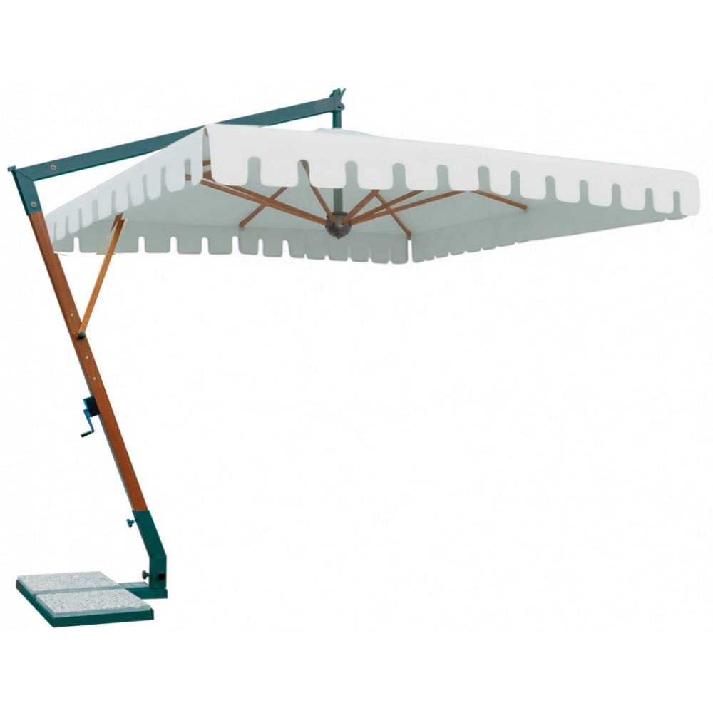 Цена действительна при заказе от 7 шт.! Torino Braccio - классическая модель с использованием натуральных материалов, которые делают зонт легким и удобным. Алюминиевая опора с отделкой под дерево улучшает рабочие характеристики без изменения внешнего вида. Профессиональный зонт с боковой опорой подойдет для создания тени в частных и коммерческих открытых пространствах. Каркас выполнен из алюминия с имитацией дерева ироко, спицы - из дерева ироко, детали - из алюминия с порошковым покрытием цвета антрацит, винты - из нержавеющей стали и никелированной латуни. Специальное крепление к опоре (Wind Stop) для лучшей устойчивости в ветренную погоду и для обеспечения наклона зонта. Возможность наклона зонта на 20°. Купол выполнен из акрила 350 г/м² с пропиткой. Варианты цвета: слоновая кость (A1), терракота (T2), бордовый (T3), серо-коричневый (T6), белый (T7), серебристо-серый (T8), антрацит (T9), черный (S1). Цена на сайте указана для зонта с куполом в цвете слоновая кость (A1) с воланом с греческим орнаментом. По запросу доступно выполнение купола из акрила Special Collection класса A и B (минимальный заказ 5 шт.). Технические характеристики: высота до кромки открытого зонта: 2200 мм; высота до кромки закрытого зонта: 800 мм; общая длина: 3600 мм (включая базу), общая ширина: 3000 мм. Посмотреть технические характеристики. Посмотреть инструкцию по установке зонта. Таблица выбора утяжелительных баз для стабилизации зонта. В комплект поставки входит: Каркас с поворотным механизмом (360°). Купол с воланом, механизм открытия-закрытия, вентиляционная заглушка (ветровой клапан). Система быстрой замены спиц "Easy Change". База для утяжелительных плит. Открыть инструкцию по эксплуатации уличных зонтов. Компания Scolaro создана 50 лет назад и была известна как ремесленное производство деревянных зонтиков. Традиционные позиции и современные знания позволили Scolaro выпускать широкий спектр зонтов, которые позволяют не только укрываться от солнца и дождя, но и являются прекрасным дополнением интерьера стильных заведений. Дизайн, новые технические решения и сочетание высококачественных материалов имеют решающее значение для технической эволюции зонтов Scolaro, процесс производства которых является полностью итальянским. Наша компания - официальный эксклюзивный дистрибьютор фабрики Scolaro Mario & Fabio srl. в России. На все зонты компании Scolaro предоставляется сервисное и гарантийное обслуживание. Для того, чтоб зонт прослужил долго, воспользуйтесь инструкциями по эксплуатации и хранению зонтов.
