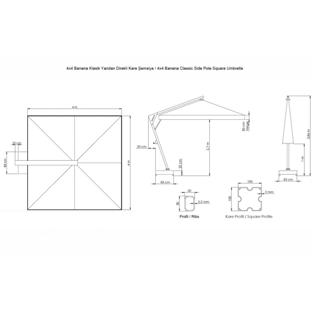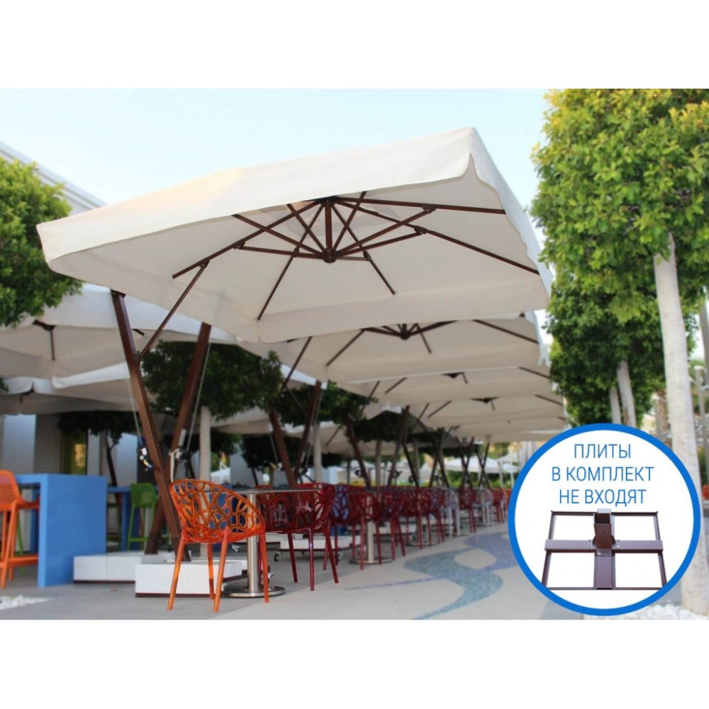 Banana - профессиональный зонт с боковой опорой из алюминия, что обеспечивает его высокую устойчивость. Он защитит от ярких солнечных лучей и создаст приятную затененную атмосферу в частных садах, открытых летних площадках кафе, баров и ресторанов, зоны возле бассейна. Наличие боковой опоры зонта гарантирует, что тень зонта используется более эффективно, чем с зонтами с центральной стойкой. Зонты Banana изготавливаются разных размеров и форм с учетом различных областей применения и размеров затеняемой площади. Зонты квадратной формы можно поставить в ряд, чтобы полностью закрыть зону затенения. Это предлагает вам очень гибкое и экономичное решение по сравнению с перголой или другими типами навесов. Хотя это корпоративный продукт, предпочитаемый кафе, ресторанами и отелями, однако, зонт Banana также украшает многие сады и террасы. Это очень востребованная модель по таким причинам, как практичность и эргономика, возможность открывать и закрывать, не мешая тем, кто находится под зонтом, а также простота транспортировки и перемещения благодаря утяжелительной базе с колесным тормозом. Особенности: Боковая опора сечением 70х70 мм и толщиной стенки 2.5 мм выполнена из окрашенного алюминия со специальной термообработкой, которая повышает прочность и коррозионную стойкость зонта. 8 алюминиевых спиц 20х30 мм и толщиной стенки 2 мм. Детали выполнены из цельного пластика. Высота до кромки открытого купола: 2200 мм. В комплект входит металлическая база 950х950 мм без утяжелителей. Дополнительно можно приобрести утяжелительные плиты, арт. AVT/TR-4040-10. Необходимое количество плит на 1 зонт: 8 шт. Дополнительно можно приобрести утяжелительные плиты. Цвет купола из ткани олефин можно выбрать из представленной палитры. Функция вращения на 360º оплачивается дополнительно. Открыть инструкцию поэксплуатации уличных зонтов. Цена на сайте указана за модель с куполом из олефина. Цены на другие модели Вы можете уточнить у менеджеров.