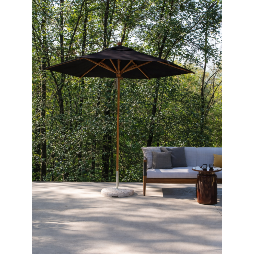 Palladio Standard - исторический зонт, который выпускается компанией Scolaro более 30 лет. Классическая модель, но в то же время простая и незаменимая, которая не выйдет из моды. Широкий ассортимент размеров и вариантов подходит для открытых пространств любого назначения. Каркас и спицы выполнены из тщательно отобранной древесины ироко лакированной и обработанной. Купол выполнен из акрила 350 г/м² с пропиткой. Цена на сайте указана для зонта с куполом в цвете темно-коричневый(G316) без волана. По запросу доступно выполнение купола из акрила Special Collection класса A и B (минимальный заказ 5 шт.). Диаметр опоры 48 мм. Подходит для утяжелительных баз с трубкой диаметром 41-42 мм. Технические характеристики: высота до кромки открытого зонта: 2250 мм; высота до кромки закрытого зонта: 1250 мм. Посмотреть технические характеристики. В комплект поставки входит: Каркас. Купол, механизм открытия-закрытия, вентиляционная заглушка (ветровой клапан). Система быстрой замены спиц "Easy Change". Открыть инструкцию по эксплуатации уличных зонтов. Компания Scolaro создана 50 лет назад и была известна как ремесленное производство деревянных зонтиков. Традиционные позиции и современные знания позволили Scolaro выпускать широкий спектр зонтов, которые позволяют не только укрываться от солнца и дождя, но и являются прекрасным дополнением интерьера стильных заведений. Дизайн, новые технические решения и сочетание высококачественных материалов имеют решающее значение для технической эволюции зонтов Scolaro, процесс производства которых является полностью итальянским. Наша компания - официальный эксклюзивный дистрибьютор фабрики Scolaro Mario & Fabio srl. в России. На все зонты компании Scolaro предоставляется сервисное и гарантийное обслуживание. Для того, чтоб зонт прослужил долго, воспользуйтесь инструкциями по эксплуатации и хранению зонтов.