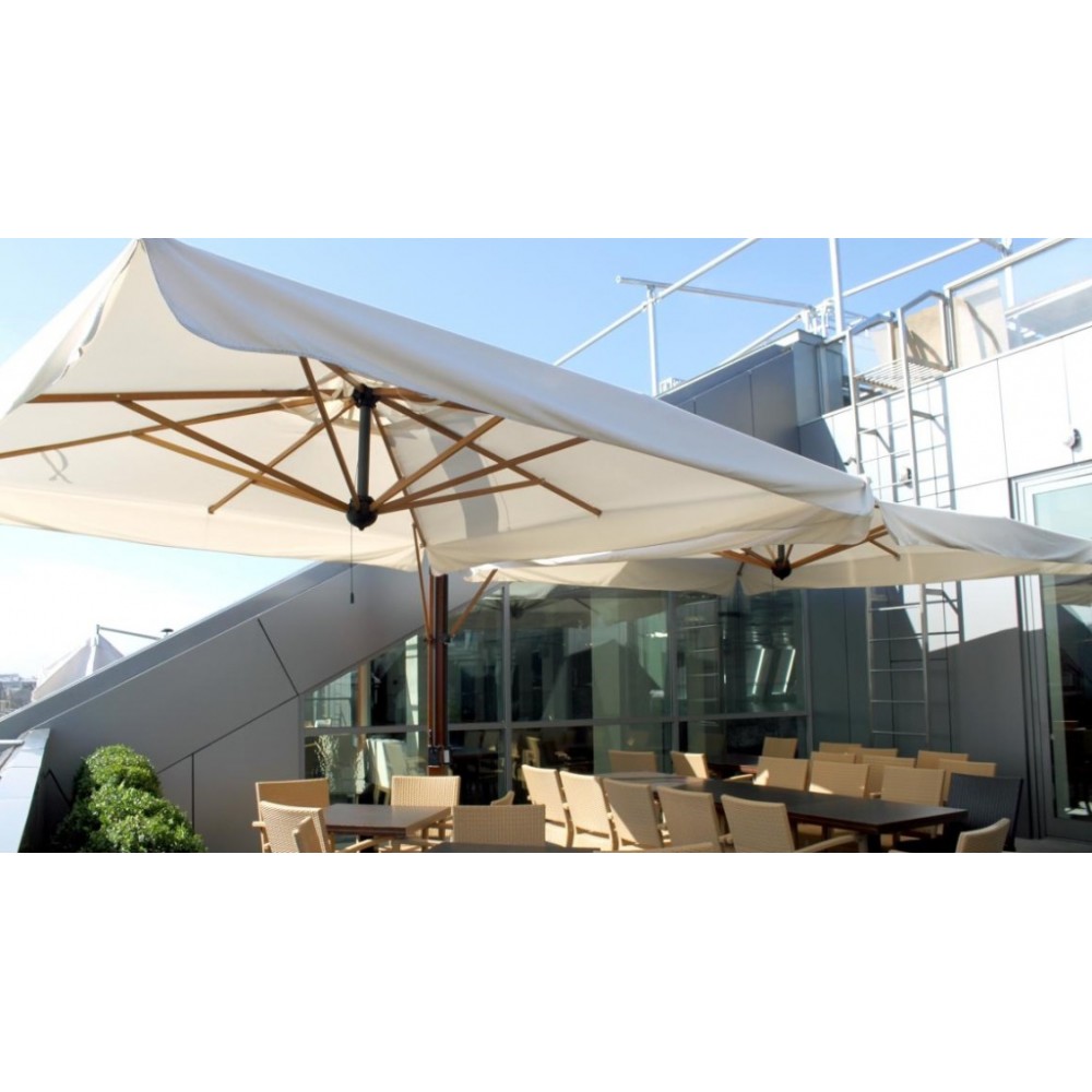 Wood Double состоит из двух отдельных зонтов, закрепленных на одной центральной опоре. Модель - элегантный образец дизайна с особым вниманием к деталям и отделке. Двухкупольный зонт подходит для затенения больших пространств, при этом занимает минимум площади. Каркас выполнен из алюминия с отделкой под дерево ироко, спицы - из дерева ироко. Стальные элементы с покрытием порошковой краской цвета антрацит. Аксессуары из нейлона с новым, еще более прочным механизмом. Специальное крепление к опоре (Wind Stop) для лучшей устойчивости в ветренную погоду и для обеспечения наклона зонта. Каждый купол выполнен из акрила 350 г/м² с пропиткой. Варианты цвета: слоновая кость (A1), терракота (T2), бордовый (T3), серо-коричневый (T6), белый (T7), серебристо-серый (T8), антрацит (T9), черный (S1). Цена на сайте указана для зонта с куполом в цвете слоновая кость (A1) с воланом. По запросу доступно выполнение купола из акрила Special Collection класса A и B (минимальный заказ 5 шт.). Технические характеристики зонта: высота общая 3250 мм; высота до кромки открытого зонта: 2350мм; высота до кромки закрытого зонта: 550 мм; общая ширина: 4300 мм (включая базу), общая длина: 7000 мм; размер каждого купола 3500х3500 мм. Посмотреть технические характеристики. Посмотреть инструкцию по установке зонта. Таблица выбора утяжелительных баз для стабилизации зонта. В комплект поставки входит: Каркас с поворотным механизмом (360°). Два купола с воланом, механизм открытия-закрытия, вентиляционная заглушка (ветровой клапан). Система быстрой замены спиц "Easy Change". База для утяжелительных плит. Открыть инструкцию по эксплуатации уличных зонтов. Компания Scolaro создана 50 лет назад и была известна как ремесленное производство деревянных зонтиков. Традиционные позиции и современные знания позволили Scolaro выпускать широкий спектр зонтов, которые позволяют не только укрываться от солнца и дождя, но и являются прекрасным дополнением интерьера стильных заведений. Дизайн, новые технические решения и сочетание высококачественных материалов имеют решающее значение для технической эволюции зонтов Scolaro, процесс производства которых является полностью итальянским. Наша компания - официальный эксклюзивный дистрибьютор фабрики Scolaro Mario & Fabio srl. в России. На все зонты компании Scolaro предоставляется сервисное и гарантийное обслуживание. Для того, чтоб зонт прослужил долго, воспользуйтесь инструкциями по эксплуатации и хранению зонтов.