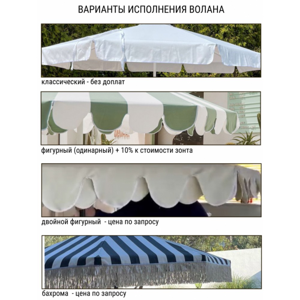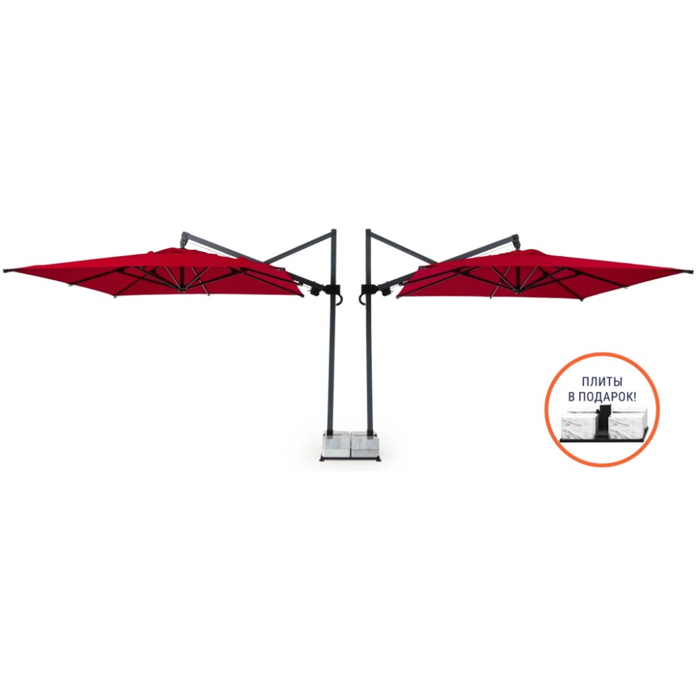 Banana Plus Double- новейшая модель двухкупольного зонта компанииTHEUMBRELA, которая предлагает ещебольше затенения. Две опоры и два зонта, открывающиеся по бокам, обеспечивают затененную уютную атмосферу на любых открытых площадках. Алюминиевая конструкция, европейская ткань и утяжелительная база гарантируют простое использование. Зонт сочетает всебе высококачественные материалы, впечатляющие технологии и простое управление. Это особенный продукт для тех, кто ищет крутой дизайн, стильный внешний вид и функциональность среди зонтов с боковой опорой. Благодаря утяжелительной базеобеспечивается достаточный баланс и давление.Зонты можно открывать независимо друг от друга при помощи рукоятки, а сами механизмы блокируются для безопасности. Качество вашего пространства будет повышено с помощью зонта Banana Plus Double, который является очень эстетичным и ярким решением для больших пространств. Особенности: Две опоры сечением 70х70 мм и толщиной стенки 2.5 мм выполненыиз окрашенного алюминия со специальной термообработкой, которая повышаетпрочность и коррозионную стойкость зонта. В каждом куполе 8 спиц из алюминия сечением20х30 мм и толщиной стенки 2.2 мм. Прочные пластиковые детали и соединительные элементы. Два купола размером 3000х3000 мм каждый. Расстояние между куполами - 1500 мм. В комплект входит металлическая базана колесах с тормозами,размер: 790х710х60 мм,с мраморными утяжелителями, размер: 340х340х120 мм. Вес базы 24 кг, каждый утяжелитель 34 кг. Общий вес базы 160 кг. Размер упаковки: 850х750х100 мм. Выполнение куполовиз акрила. Цвет купола можно выбрать из представленной палитры. Дополнительно приобретаются: функциявращения на 360º, комплект из 4-х светильников с пультом дистанционного управления. Обращаем Ваше внимание! Плиты идут в подарок к зонту! В норме допускаются незначительные сколы и царапины мрамора по периметру, т.к. мрамор - это природный материал.На плиты рекламации не принимаются, Вы имеете право безвозмездно отказаться от них. Открыть инструкцию поэксплуатации уличных зонтов. Цена на сайте указана за модель с куполамииз ткани акрил. Цены на другие модели Вы можете уточнить у менеджеров.