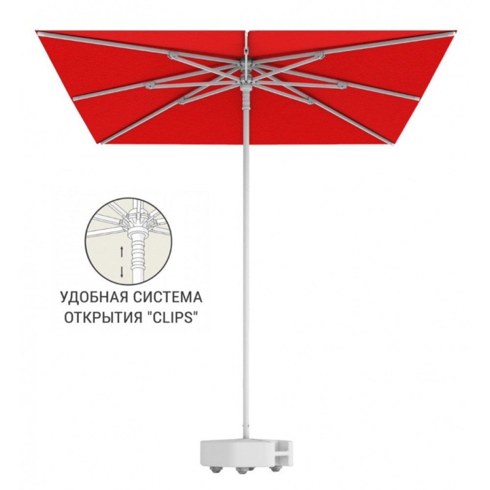 Kiwi Clips- профессиональный зонт с центральной опорой из алюминия, что обеспечивает высокую устойчивость модели. Он защитит от ярких солнечных лучей и создаст приятную затененную атмосферу в частных садах, открытых летних площадках кафе, баров и ресторанов, зоны возле бассейна. Это больше, чем зонт, с его эстетичным и стильным внешним видом, простотой открытия и закрытия, долговечностью и дополнительными функциями, такими как журнальный столик и пепельница. Система зажимов, используемая зонте Kiwi Clips, работает по логике, аналогичной ручным зонтам. В отличие от ручных зонтов, сила, используемая для открывания и закрывания, исходит от натяжения ткани зонта. Нажимая пластиковый корпус вверх, зонт открывается. После прохождения определенного места гибкость ткани берет на себя силу, приложенную к пластиковому корпусу, и зонт остается полностью раскрытым и зафиксированным. Если опустить пластиковый корпус, и зонт закроется. Особенности: Открывается легким движением руки, с плавным ходом и надежной фиксацией. Центральная опора Ø35 мм, столщинойметалла 2 мм, выполнена из алюминия.Алюминий окрашен и прошел специальную термообработку, которая повышаетпрочность и коррозионную стойкость зонта. 8 спиц 12х18,с толщиной металла 1 мм, выполнены из алюминия. Высота зонта2100 мм , в открытом виде до спиц - 1800 мм. Детали выполнены из цельного пластика. Возможно выполнение купола из тканей: полиэстер, акрил. Покрытие опоры и спиц можно выбрать из представленной палитры. Возможно выполнение зонта с наклонным механизмом, +20% к стоимости изделия. Дополнительно можно приобрести утяжелительнуюбазувесом 50 кг. Цена на сайте указана за модель с куполом из акрила. Цены на другие модели Вы можете уточнить у менеджеров.