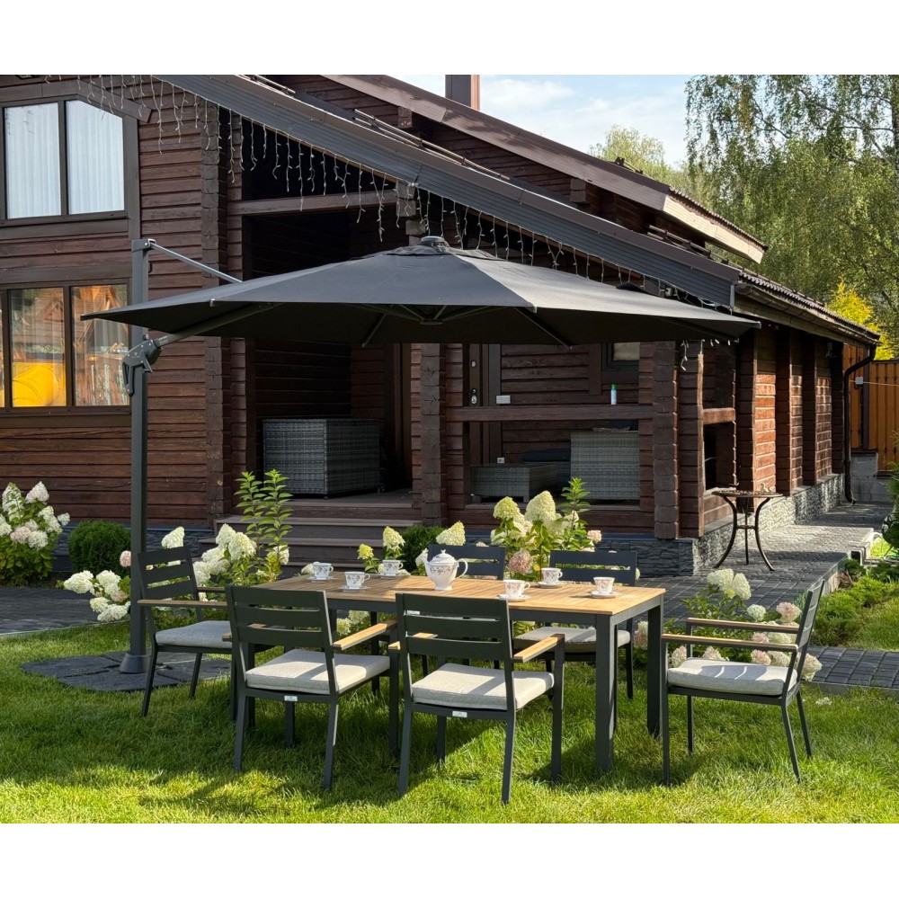 Уличный зонт SKY оснащен механизмом поворота на 360 градусов, что позволяет легко регулировать его положение в зависимости от солнечного света или направления ветра.