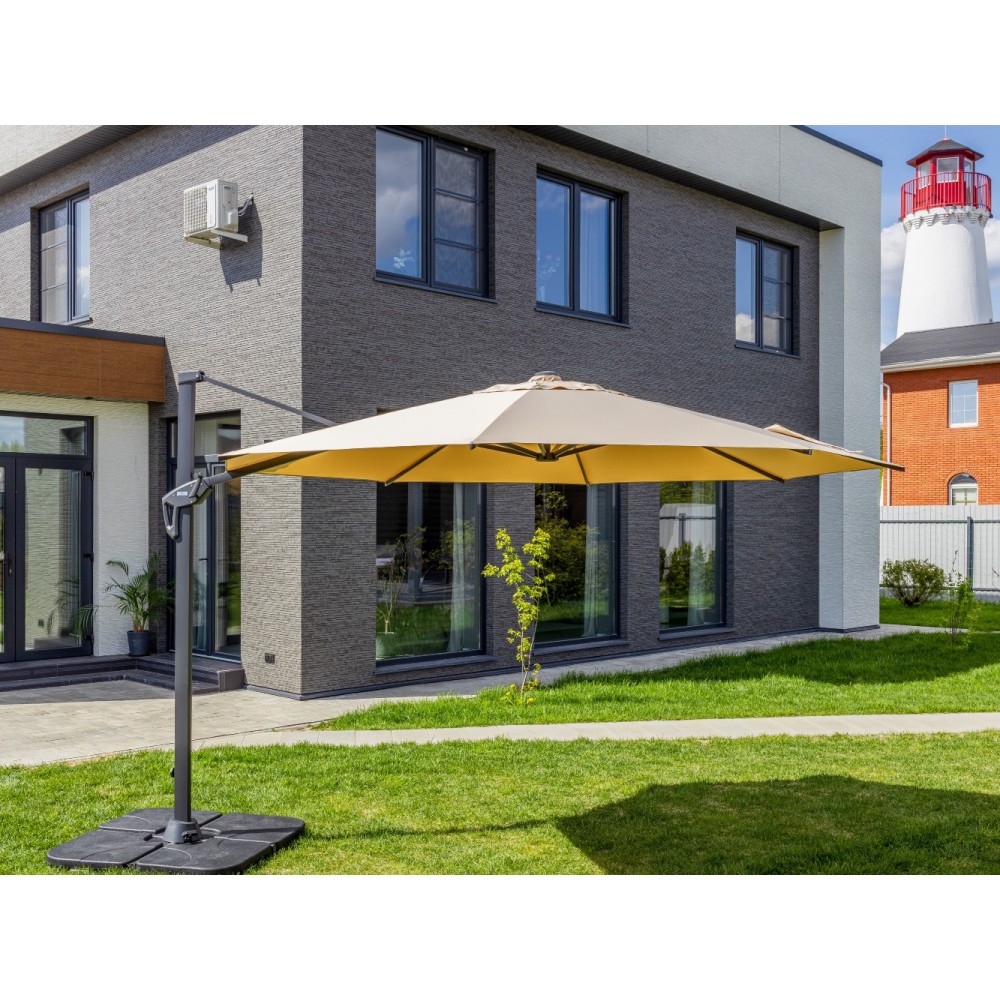 Уличный зонт SKY оснащен механизмом поворота на 360 градусов, что позволяет легко регулировать его положение в зависимости от солнечного света или направления ветра.