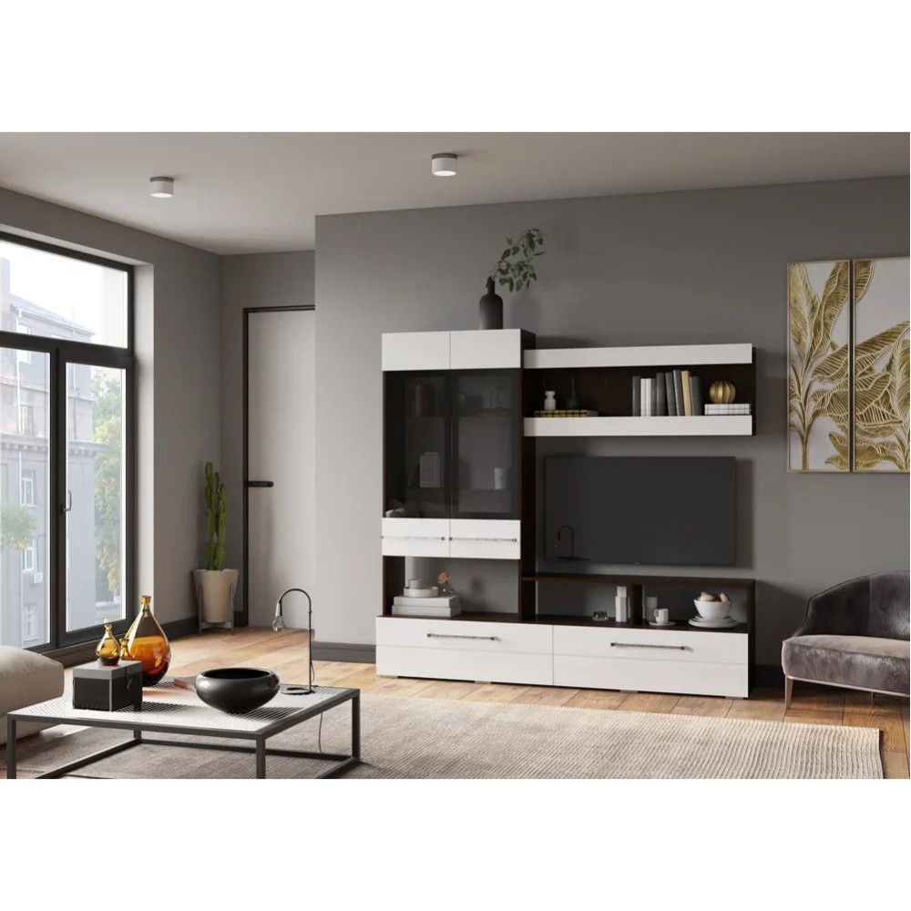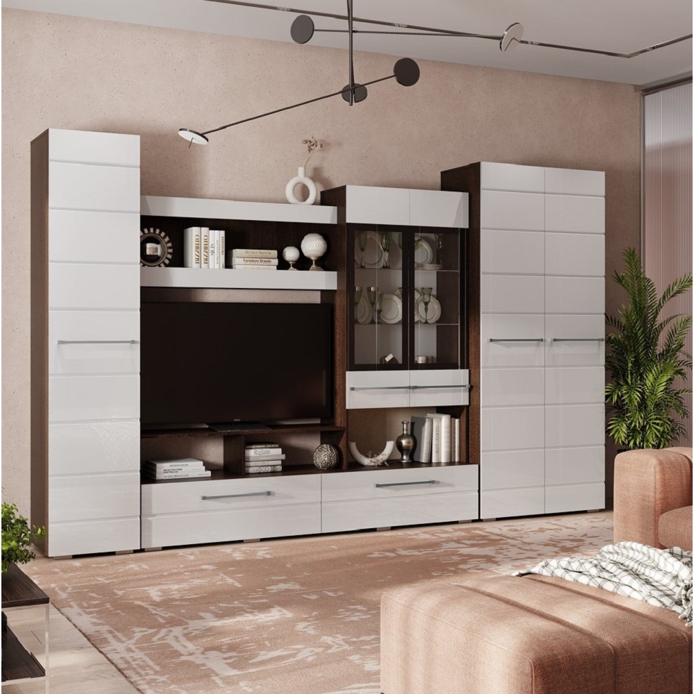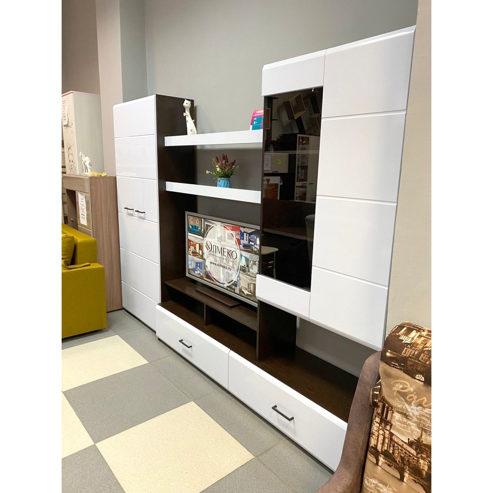 Центральная секция ЦС-04 из модельной системы Милан выполнена в цвете венге/белый глянец.