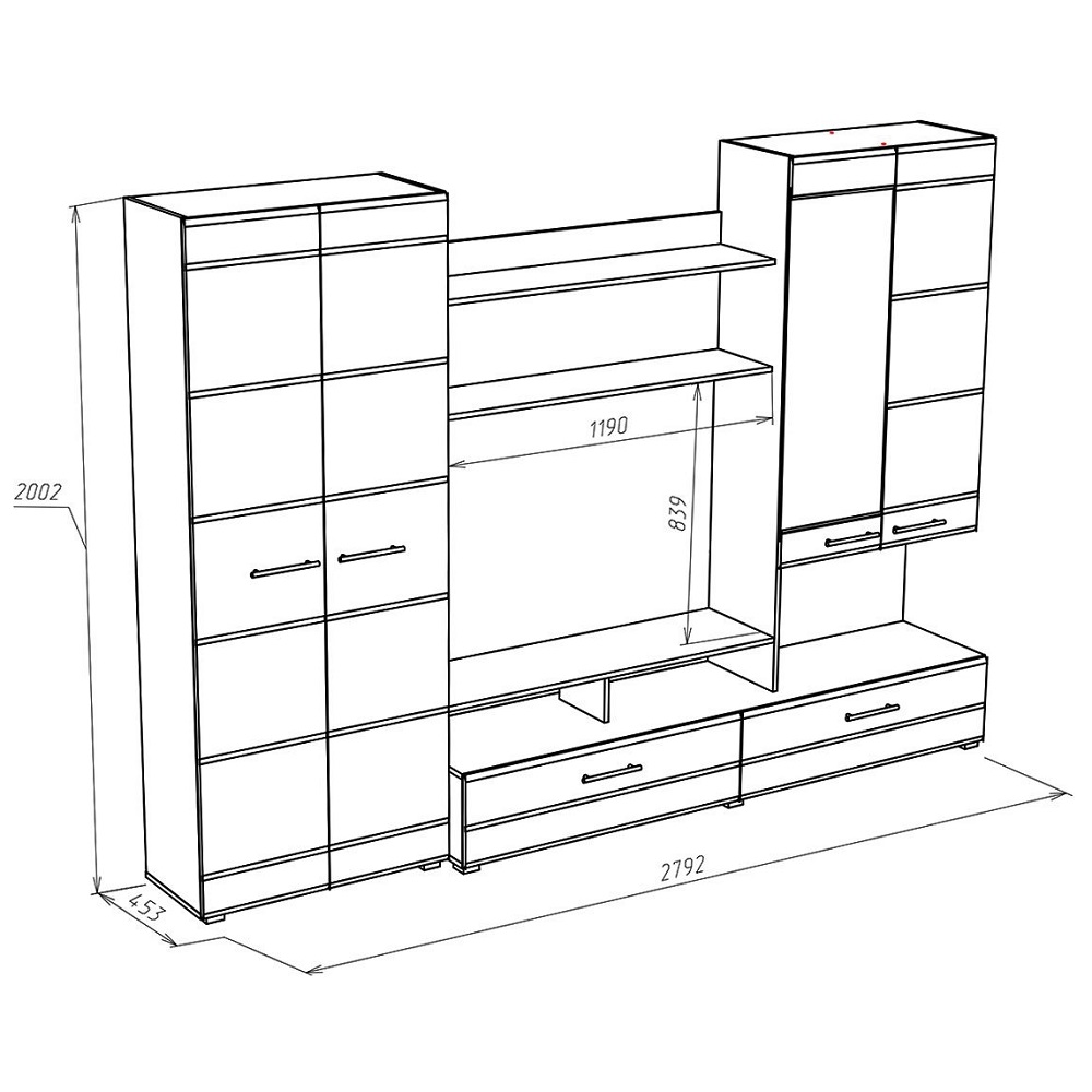 Место под ТВ (Ш*В*Г), мм: 1200*765*330