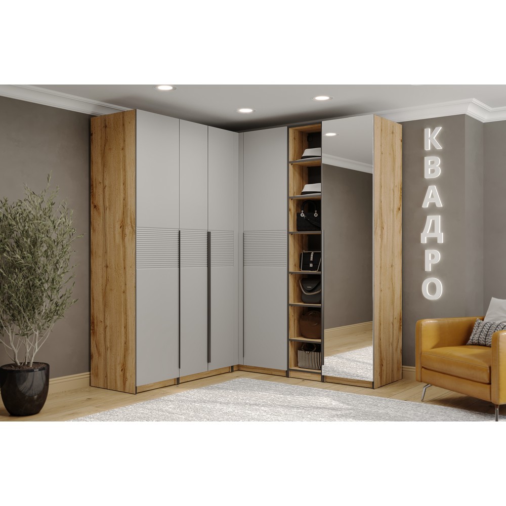 Гардеробная система Квадро это максимальная лаконичность и высокая рациональность современного стиля. Продуманное внутреннее наполнение модели навсегда решит вопрос с хранением предметов гардероба – просторные полки, платяные отделения и выдвижные ящики легко разместят все необходимое. Шариковые направляющие обеспечат комфортное бесшумное выдвижение ящиков. Качественные петли с доводчиком защитят от громких хлопков фасадов. Стильная черная фурнитура послужит интересным акцентом.