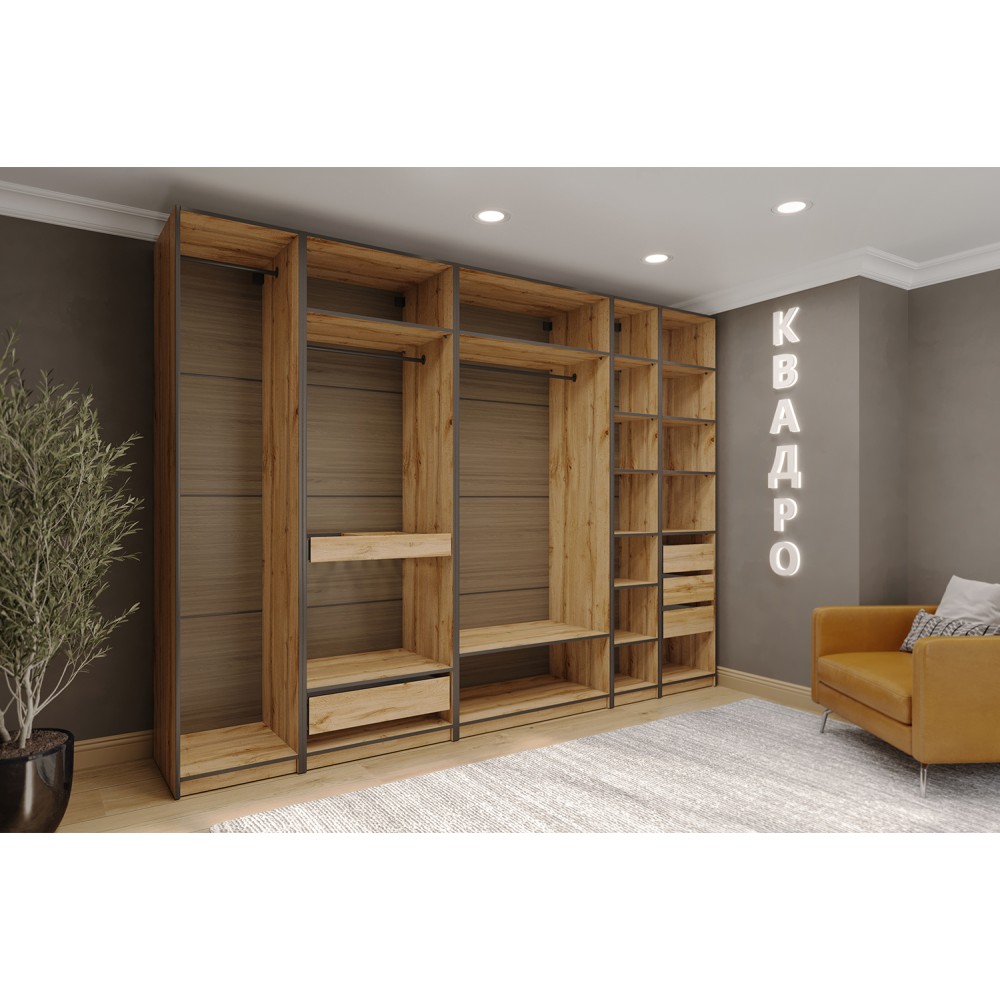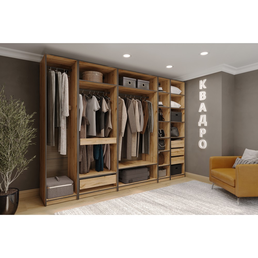 Гардеробная система Квадро это максимальная лаконичность и высокая рациональность современного стиля. Продуманное внутреннее наполнение модели навсегда решит вопрос с хранением предметов гардероба – просторные полки, отделения для хранения вещей и выдвижные ящики легко разместят все необходимое. Шариковые направляющие обеспечат комфортное бесшумное выдвижение ящиков. Стильная черная фурнитура послужит интересным акцентом.