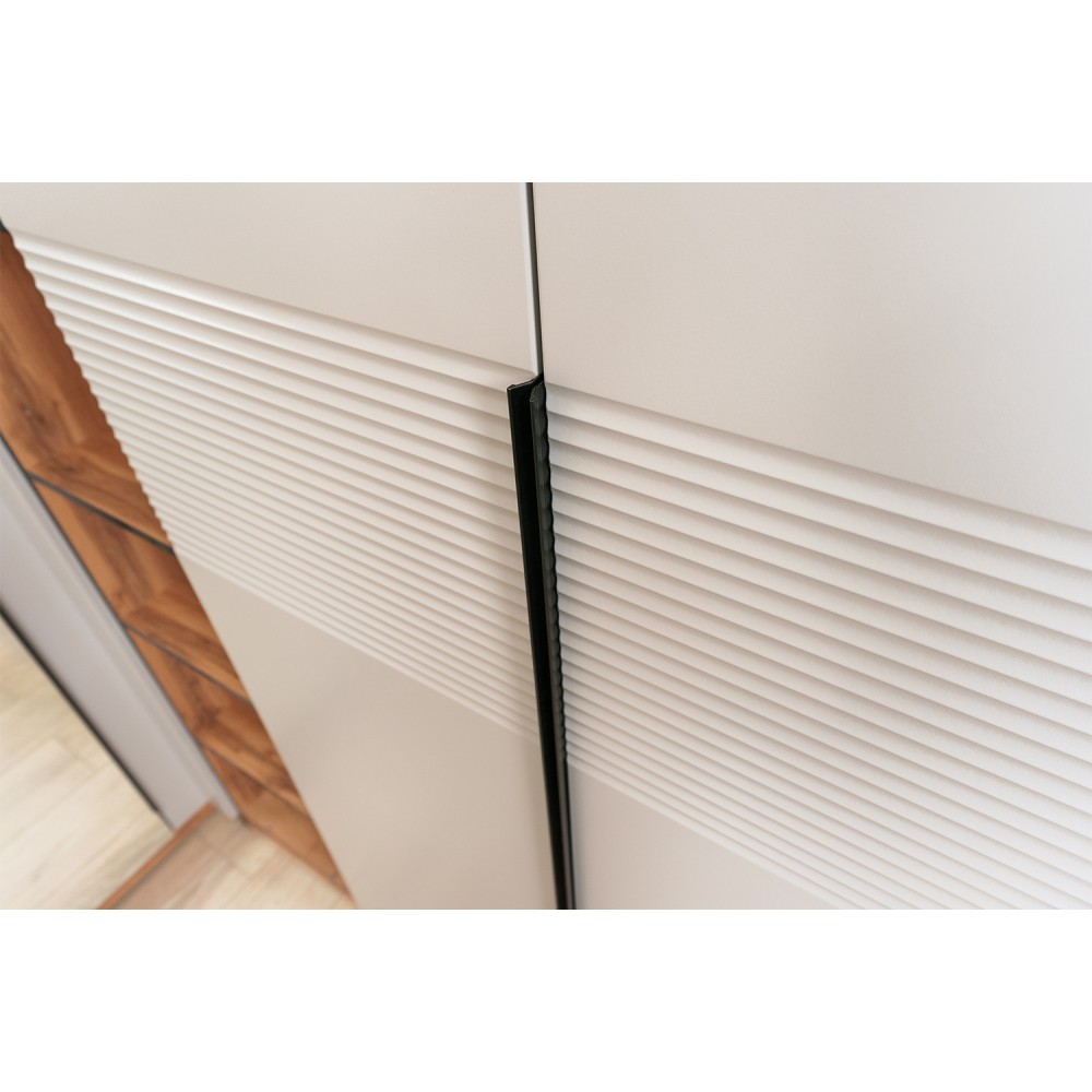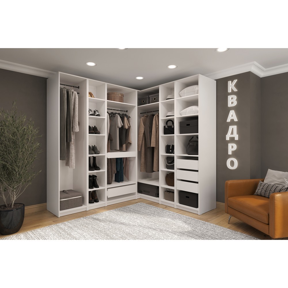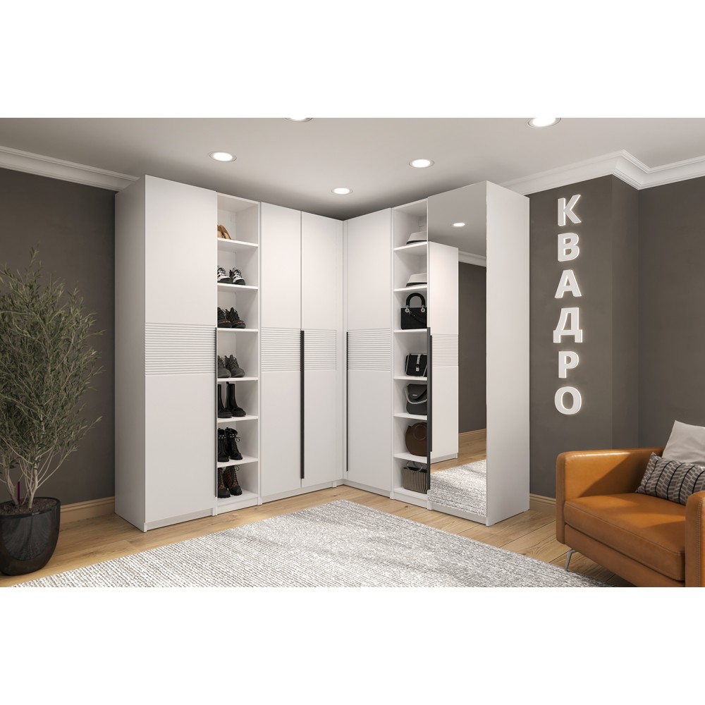 Гардеробная система Квадро это максимальная лаконичность и высокая рациональность современного стиля. Продуманное внутреннее наполнение модели навсегда решит вопрос с хранением предметов гардероба – просторные полки, платяные отделения и выдвижные ящики легко разместят все необходимое. Шариковые направляющие обеспечат комфортное бесшумное выдвижение ящиков. Качественные петли с доводчиком защитят от громких хлопков фасадов. Стильная черная фурнитура послужит интересным акцентом.