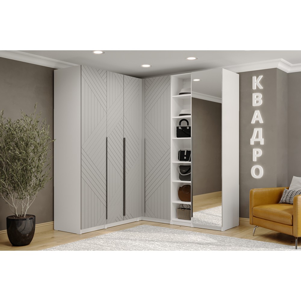 Гардеробная система Квадро это максимальная лаконичность и высокая рациональность современного стиля. Продуманное внутреннее наполнение модели навсегда решит вопрос с хранением предметов гардероба – просторные полки, платяные отделения и выдвижные ящики легко разместят все необходимое. Шариковые направляющие обеспечат комфортное бесшумное выдвижение ящиков. Качественные петли с доводчиком защитят от громких хлопков фасадов. Стильная черная фурнитура послужит интересным акцентом.