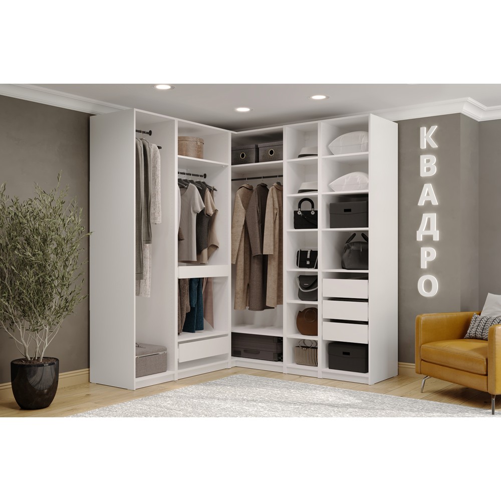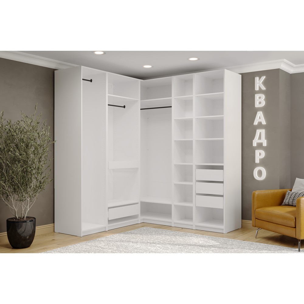 Гардеробная система Квадро это максимальная лаконичность и высокая рациональность современного стиля. Продуманное внутреннее наполнение модели навсегда решит вопрос с хранением предметов гардероба – просторные полки, отделения для хранения вещей и выдвижные ящики легко разместят все необходимое. Шариковые направляющие обеспечат комфортное бесшумное выдвижение ящиков. Стильная черная фурнитура послужит интересным акцентом.