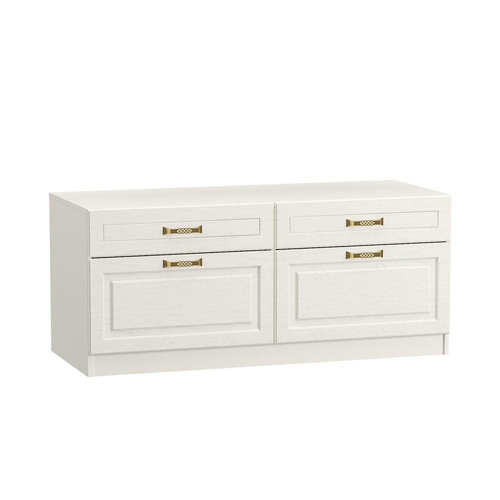 ТВ-тумба «Ливерпуль» — это стильное и функциональное решение для вашей гостиной. Благодаря плавным выдвижным механизмам и ящикам разной высоты, вы сможете легко найти нужные вещи и организовать пространство. Фасад тумбы выполнен в светлых тонах, что придаёт интерьеру элегантность и гармонирует с металлическими ручками цвета античной бронзы. Большая рабочая поверхность позволяет разместить телевизор с большой диагональю без проблем.