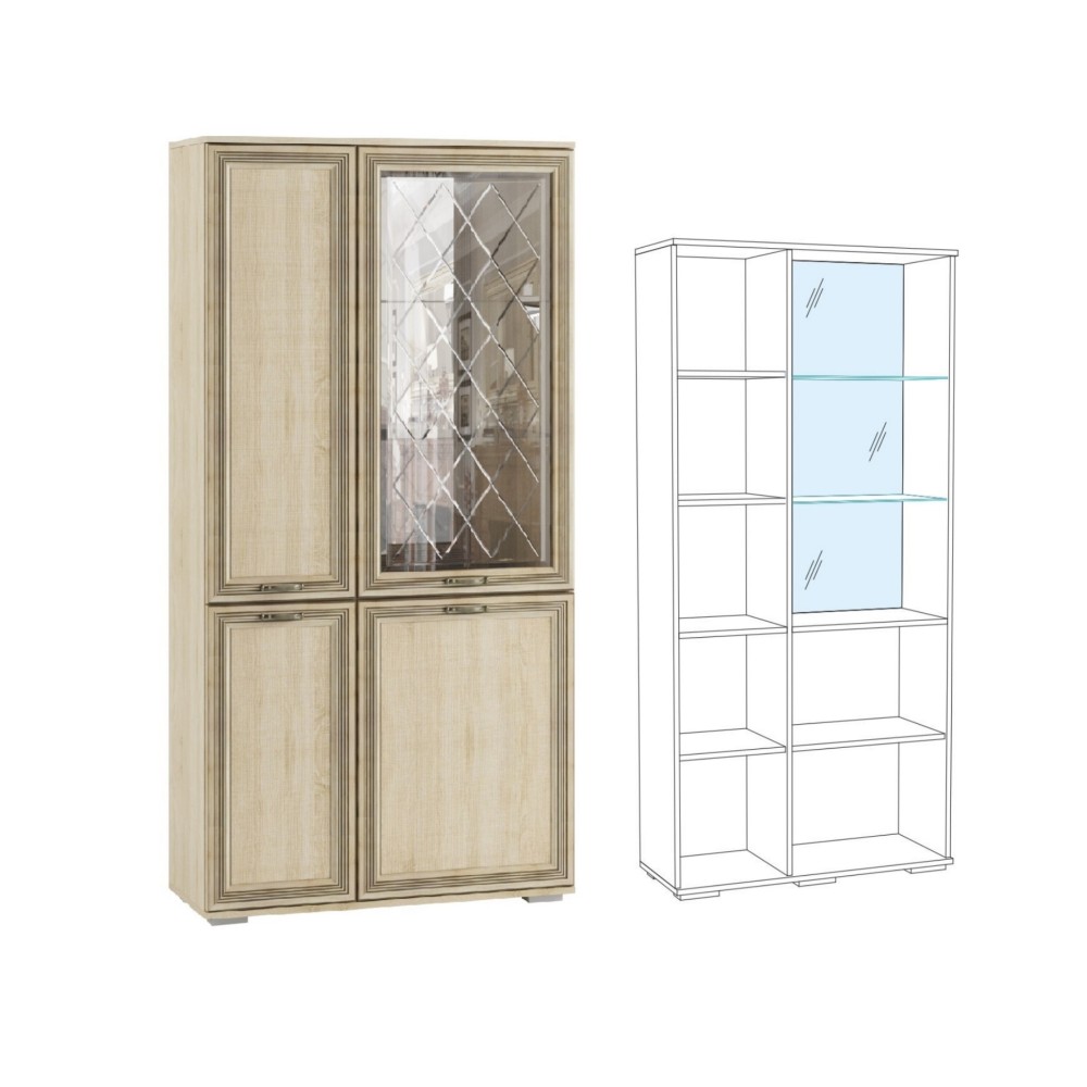 Гостиная Ливорно Шкаф с полками и витриной ЛШ-6 дуб сонома