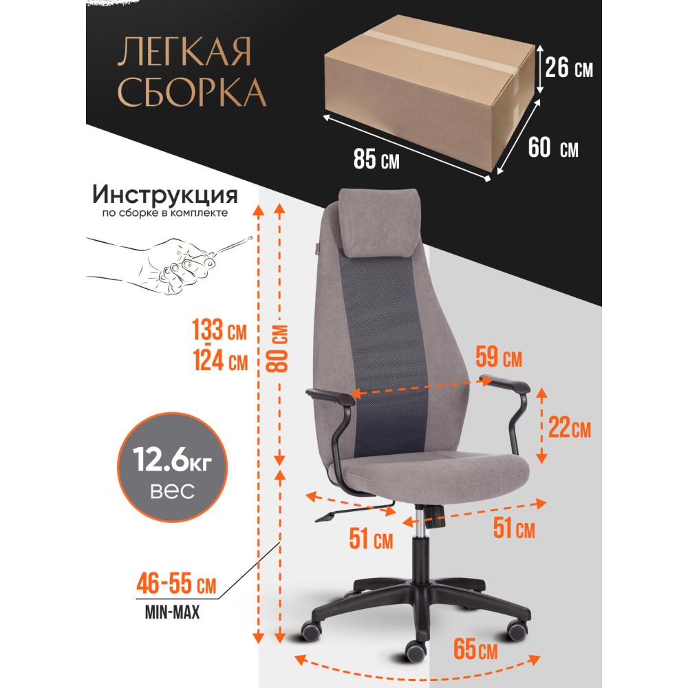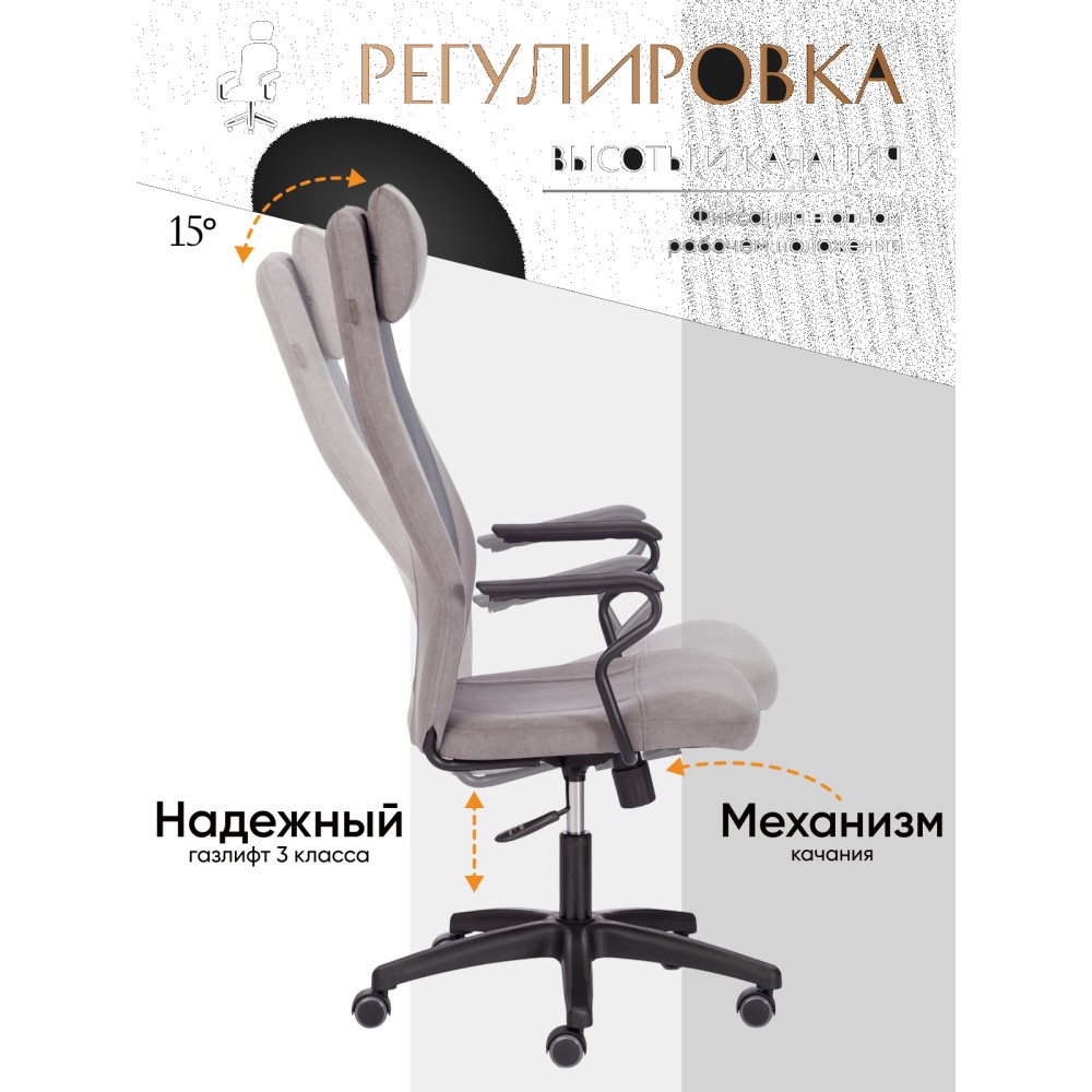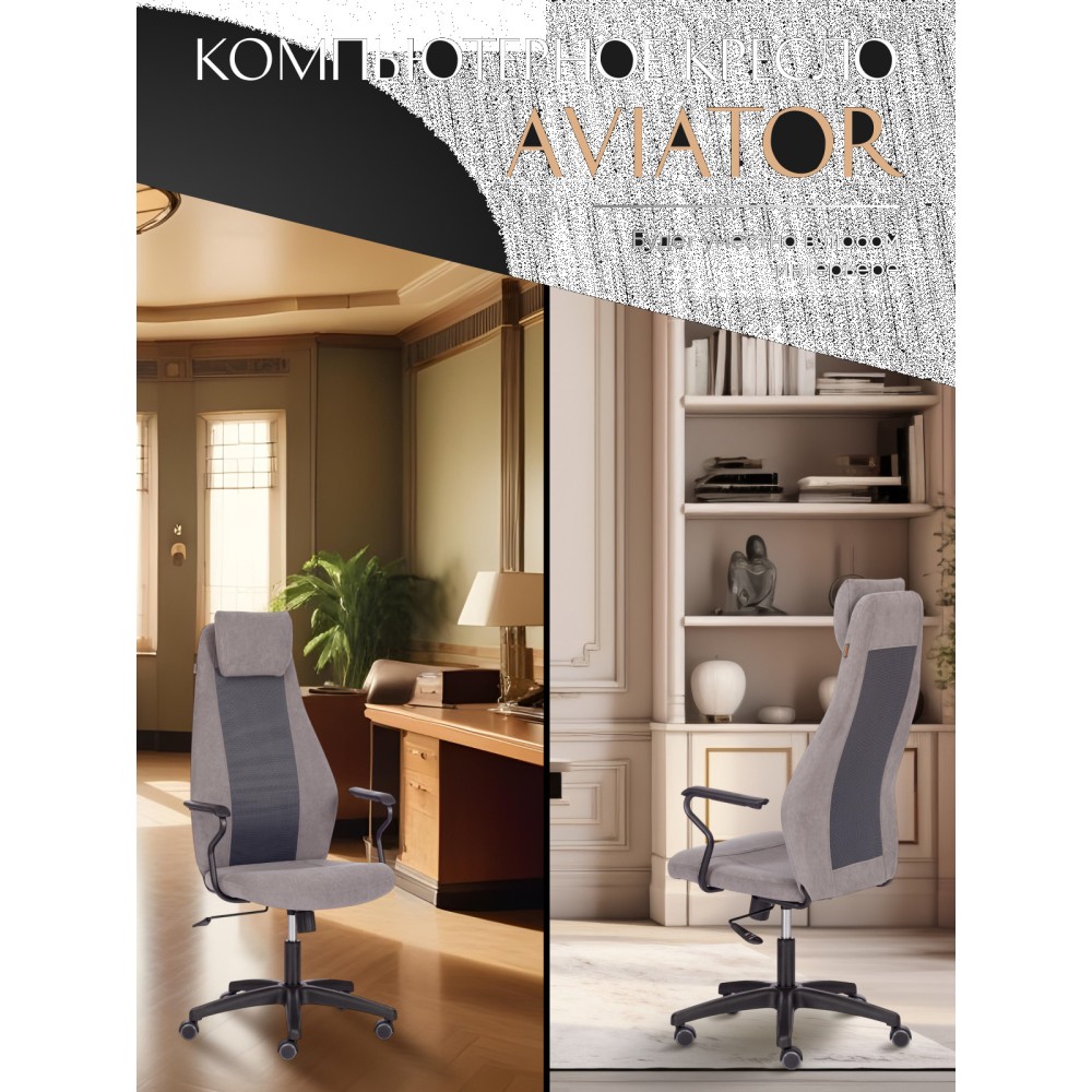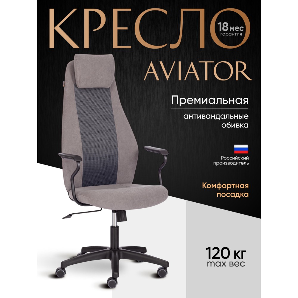 Компьютерное кресло AVIATOR - удачное сочетание привлекательности, эргономичности и функциональности. Стильная модель будет отлично смотреться в любом рабочем кабинете. 5-лучевая крестовина диаметром 650 мм устойчива, прочна и имеет долгий срок службы. Фиксированные подлокотники из металлической трубы диаметром 19 мм с пластиковой накладкой, механизм изменения высоты сиденья и угла наклона до 15 градусов с возможностью фиксации в рабочем положении, настраиваемый подголовник на липучке позволят принять комфортную позу, снять напряжение с позвоночника. Высококачественные полиамидные ролики дополнительно прорезинены для предотвращения повреждения напольного покрытия. Отлично подходят для использования на паркете и ламинате. Диаметр штока ролика – 11 мм. Для максимального удобства кресло оснащено наполнителем из пенополиуретана (ППУ) плотностью не менее 30 кг/м3. Модель обита износостойким флоком плотностью 320 г/м2 с водоотталкивающей пропиткой. Такой материал не требует сложного ухода, долговечен, выглядит стильно и привлекательно. Однослойная сетчатая обивка плотностью 280 г/м2 обеспечит вентиляцию и добавит комфорт в жаркое время года. Кресло оборудовано надежным газлифтом 3 класса с ходом 100 мм. Обивка серого цвета подчеркнет элегантность и уникальность модели. Компьютерное кресло AVIATOR станет незаменимым предметом интерьера, прекрасно впишется в рабочий кабинет офиса или дома, удивит вас своей долговечностью, удобством и отличными эксплуатационными качествами. Модель поставляется в разобранном виде. Необходима простая сборка по прилагаемой инструкции. Максимальная нагрузка 120 кг.