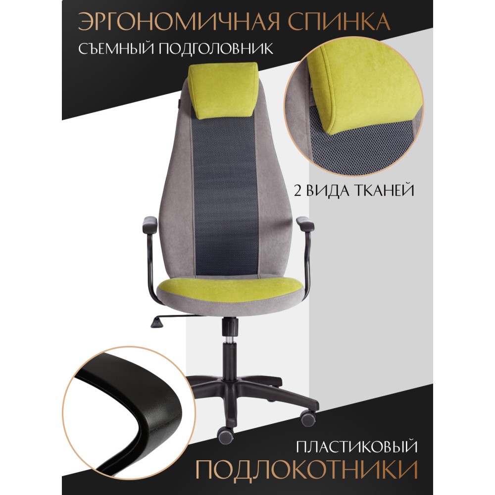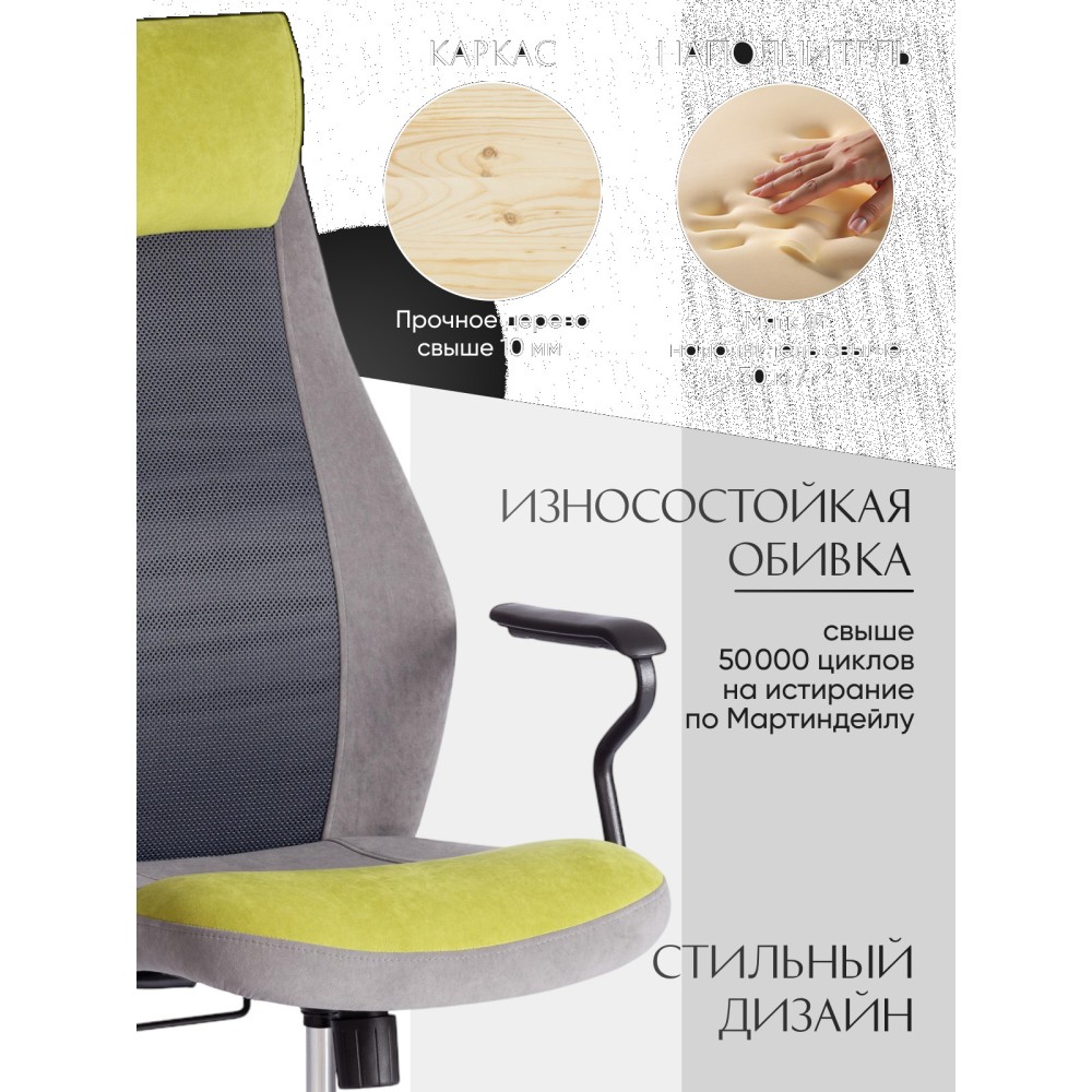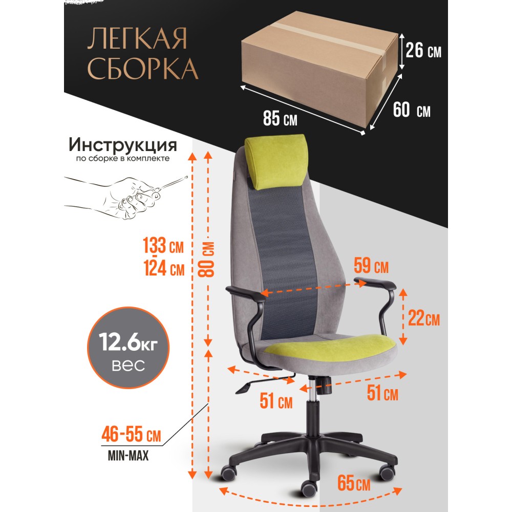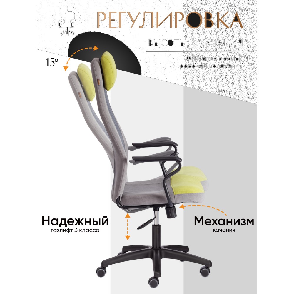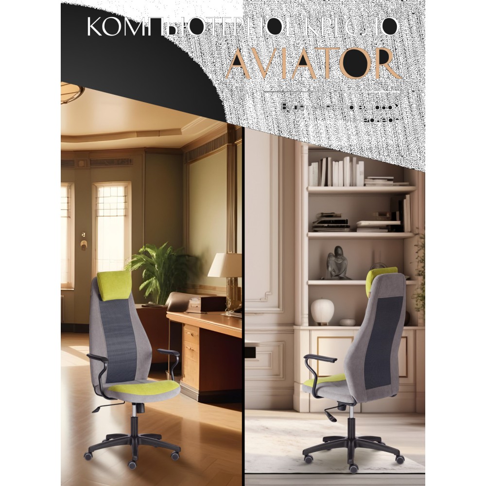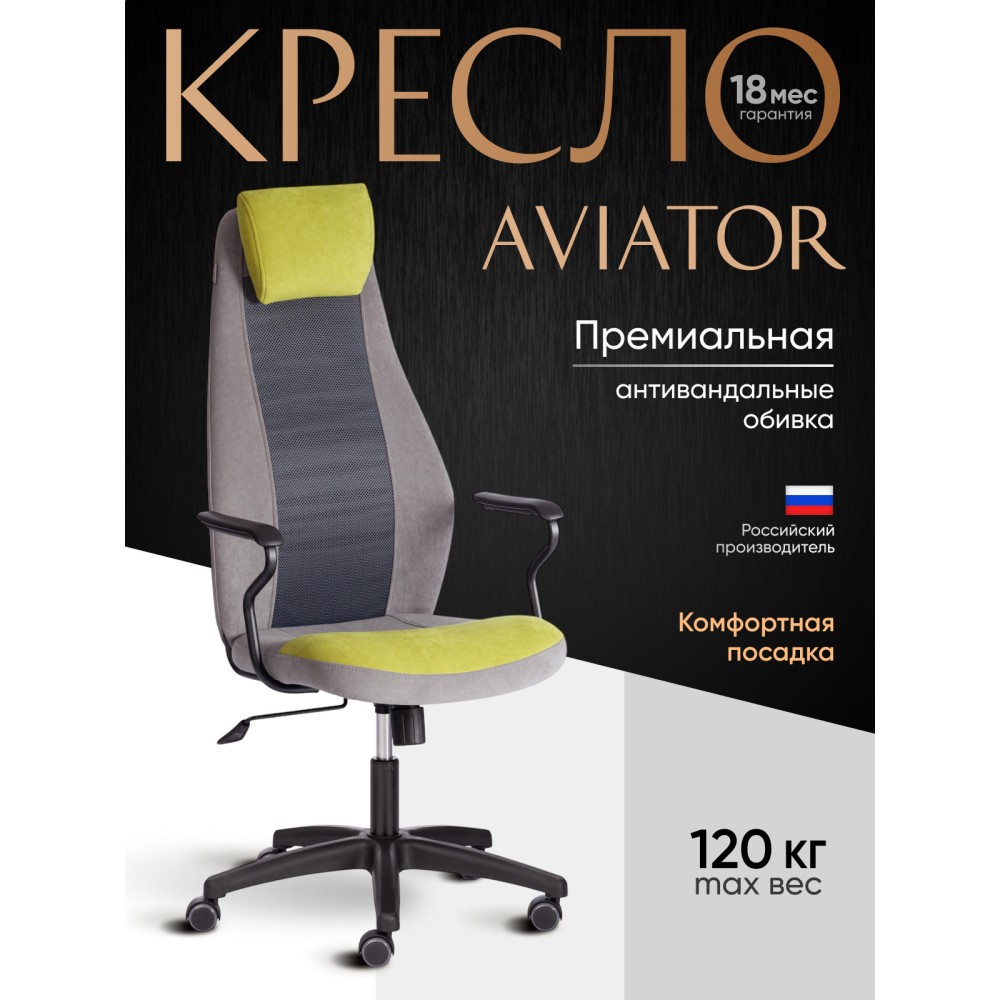 Компьютерное кресло AVIATOR - удачное сочетание привлекательности, эргономичности и функциональности. Стильная модель будет отлично смотреться в любом рабочем кабинете. 5-лучевая крестовина диаметром 650 мм устойчива, прочна и имеет долгий срок службы. Фиксированные подлокотники из металлической трубы диаметром 19 мм с пластиковой накладкой, механизм изменения высоты сиденья и угла наклона до 15 градусов с возможностью фиксации в рабочем положении, настраиваемый подголовник на липучке позволят принять комфортную позу, снять напряжение с позвоночника. Высококачественные полиамидные ролики дополнительно прорезинены для предотвращения повреждения напольного покрытия. Отлично подходят для использования на паркете и ламинате. Диаметр штока ролика – 11 мм. Для максимального удобства кресло оснащено наполнителем из пенополиуретана (ППУ) плотностью не менее 30 кг/м3. Модель обита износостойким флоком плотностью 320 г/м2 с водоотталкивающей пропиткой. Такой материал не требует сложного ухода, долговечен, выглядит стильно и привлекательно. Однослойная сетчатая обивка плотностью 280 г/м2 обеспечит вентиляцию и добавит комфорт в жаркое время года. Кресло оборудовано надежным газлифтом 3 класса с ходом 100 мм. Серый и оливковый цвета отлично сочетаются между собой, подчёркивая элегантность и уникальность модели. Компьютерное кресло AVIATOR станет незаменимым предметом интерьера, прекрасно впишется в рабочий кабинет офиса или дома, удивит вас своей долговечностью, удобством и отличными эксплуатационными качествами. Модель поставляется в разобранном виде. Необходима простая сборка по прилагаемой инструкции. Максимальная нагрузка 120 кг.