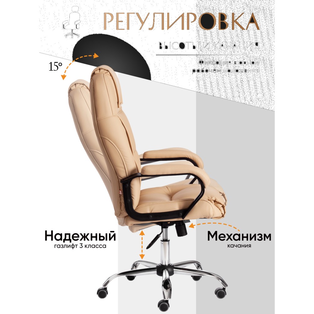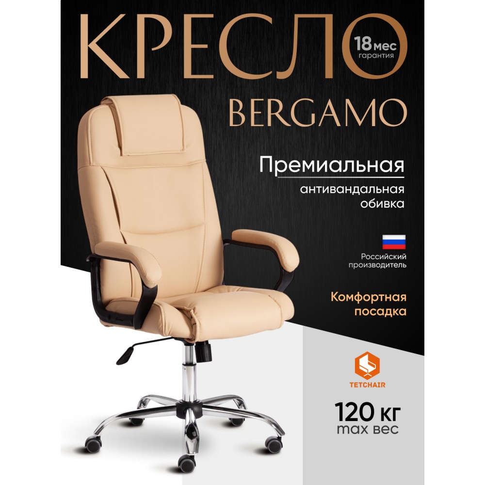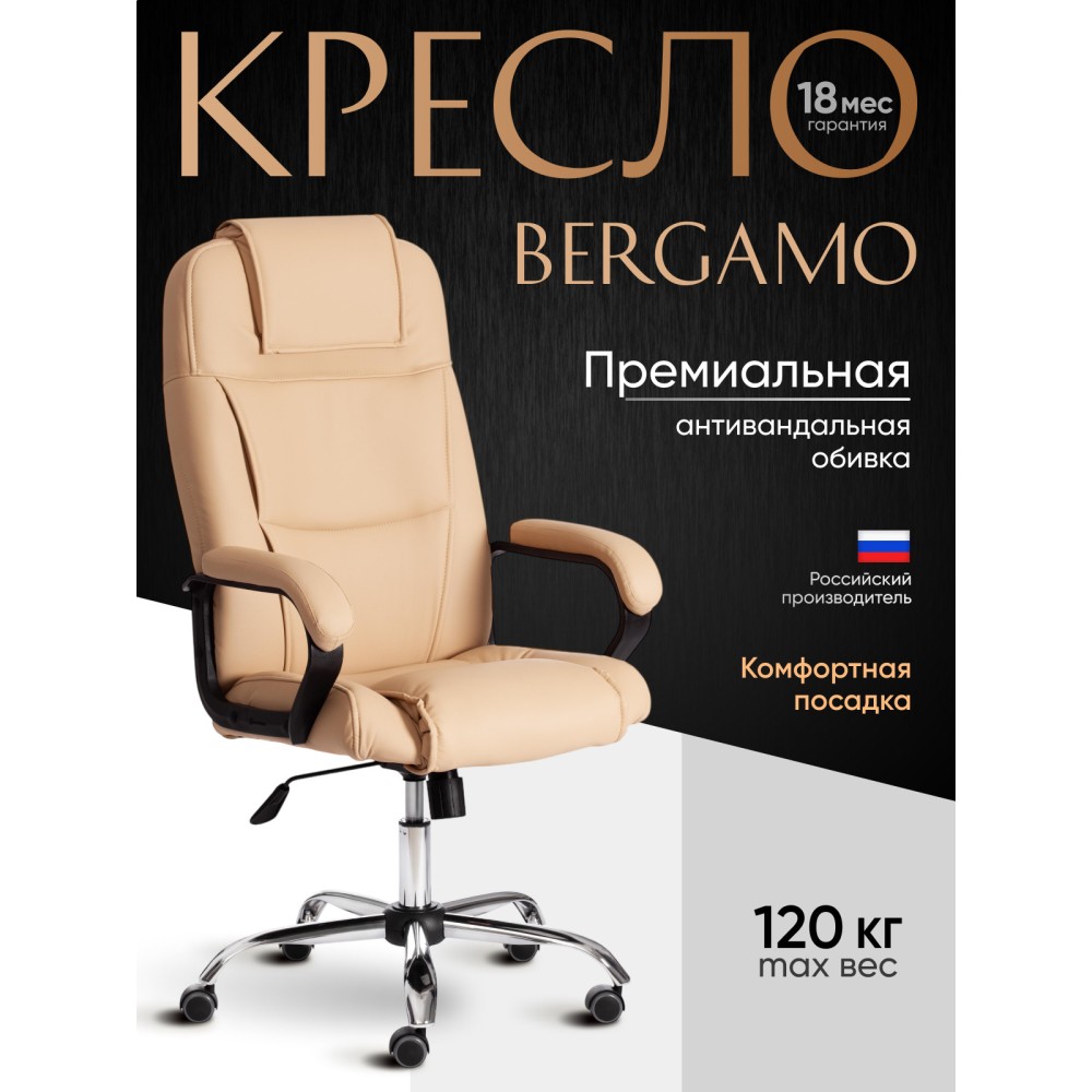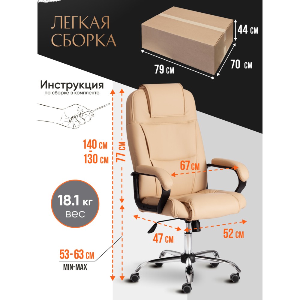 Стильный дизайн кресла BERGAMO хром (22) из коллекции OFFICE станет прекрасным дополнением в интерьере офиса, переговорной комнаты или кабинета руководителя. Модель, имеющая привлекательный дизайн и элегантный внешний вид, понравится даже самому требовательному владельцу. Надежный каркас выполнен из усиленной фанеры толщиной более 10 мм. Такой материал отличается практичностью, прочностью и основательностью. Сиденье и спинка с мягким наполнителем из пенополиуретана (до 35 кг/м2) стандартной плотности обладают долгим сроком службы, не деформируются, пропускают воздух, отводят влагу и не накапливают пыль. Хромированная крестовина устойчива, способна выдерживать большие нагрузки. Офисное кресло регулируется по высоте и наклону с фиксацией в одном положении. Бесшумные полиуретановые колесики с прорезиненными вставками позволяют легко перемещаться с места на место, не повреждая ламинат или паркет. Ролики и крестовина в креслах бренда TETCHAIR соответствуют стандарту BIFMA. Во всех креслах бренда TETCHAIR используются газлифты 3 класса, он способен выдерживать вес до 120 кг. Фиксированные пластиковые подлокотники с мягкими накладками помогут снять напряжение с плеч и шеи при длительной работе. Благодаря обивке из износостойкой высокопрочной экокожи и прочного флока модель не требует сложного ухода, не теряет своего первоначального вида долгие годы, обладает отличными эксплуатационными качествами. Экокожа, используемая при изготовлении кресла, выдерживает до 50 000 циклов на истирание по Мартиндейлу, ткань флок также выдерживает до 50 000 циклов. Ткани с прочностью более 35 000 циклов являются самыми долговечными. Компьютерное кресло BERGAMO хром (22) изготавливается в коричневом, черном, бежевом, сером, синем и белом цветах. Эргономичная модель подчеркнет безупречный вкус владельца, будет радовать своей долговечностью, красотой и практичностью продолжительное время. Офисное кресло поставляется в разобранном виде. Необходима простая сборка по прилагаемой инструкции. Максимальная нагрузка 120 кг.