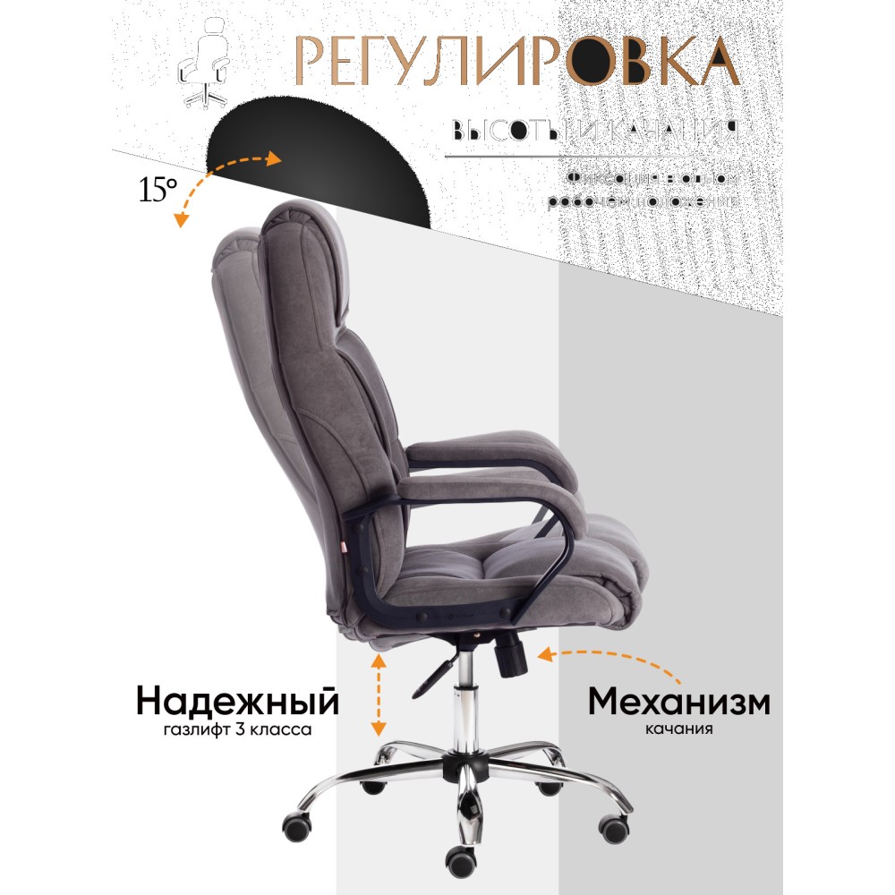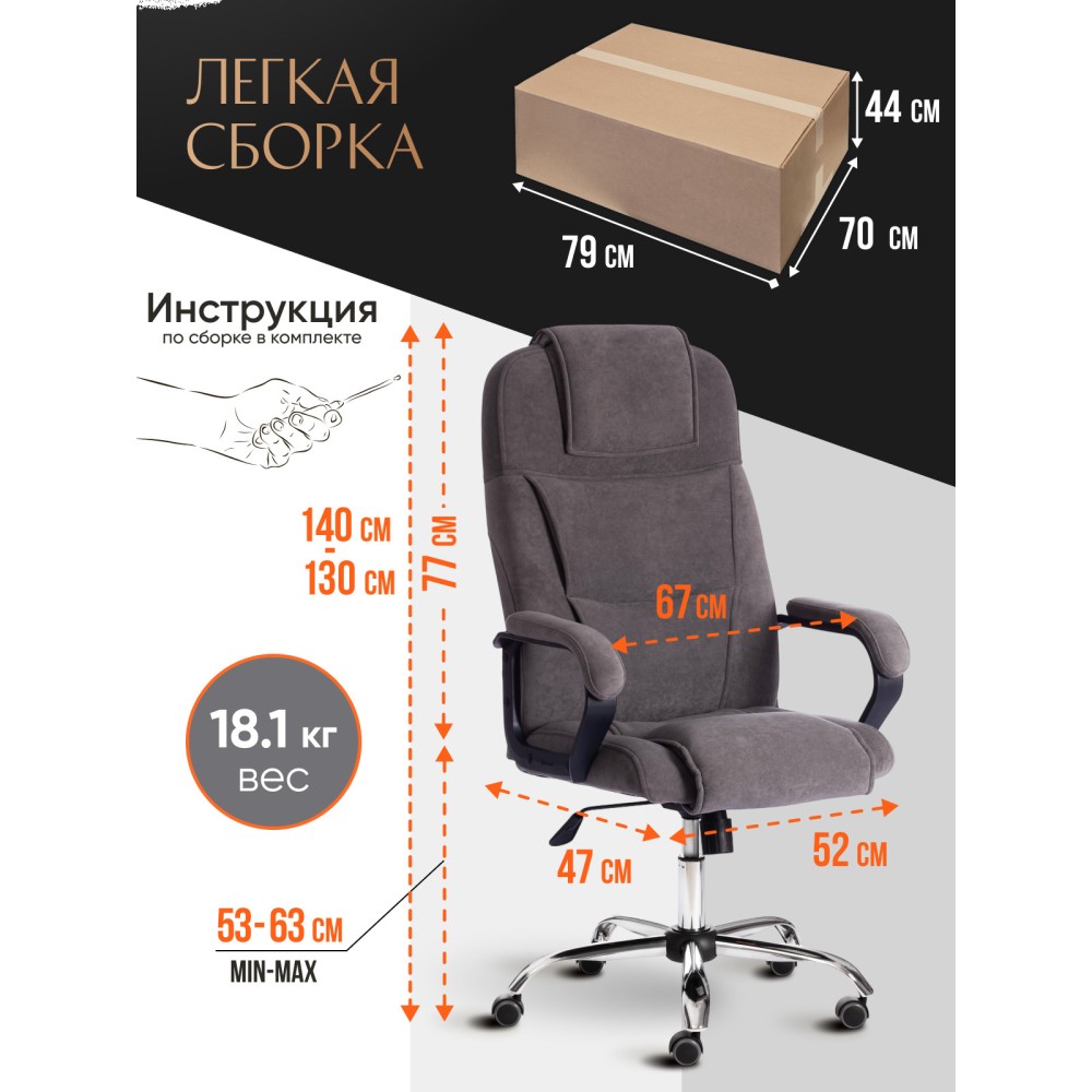 Стильный дизайн кресла BERGAMO хром (22) из коллекции OFFICE станет прекрасным дополнением в интерьере офиса, переговорной комнаты или кабинета руководителя. Модель, имеющая привлекательный дизайн и элегантный внешний вид, понравится даже самому требовательному владельцу. Надежный каркас выполнен из усиленной фанеры толщиной более 10 мм. Такой материал отличается практичностью, прочностью и основательностью. Сиденье и спинка с мягким наполнителем из пенополиуретана (до 35 кг/м2) стандартной плотности обладают долгим сроком службы, не деформируются, пропускают воздух, отводят влагу и не накапливают пыль. Хромированная крестовина устойчива, способна выдерживать большие нагрузки. Офисное кресло регулируется по высоте и наклону с фиксацией в одном положении. Бесшумные полиуретановые колесики с прорезиненными вставками позволяют легко перемещаться с места на место, не повреждая ламинат или паркет. Ролики и крестовина в креслах бренда TETCHAIR соответствуют стандарту BIFMA. Во всех креслах бренда TETCHAIR используются газлифты 3 класса, он способен выдерживать вес до 120 кг. Фиксированные пластиковые подлокотники с мягкими накладками помогут снять напряжение с плеч и шеи при длительной работе. Благодаря обивке из износостойкой высокопрочной экокожи и прочного флока модель не требует сложного ухода, не теряет своего первоначального вида долгие годы, обладает отличными эксплуатационными качествами. Экокожа, используемая при изготовлении кресла, выдерживает до 50 000 циклов на истирание по Мартиндейлу, ткань флок также выдерживает до 50 000 циклов. Ткани с прочностью более 35 000 циклов являются самыми долговечными. Компьютерное кресло BERGAMO хром (22) изготавливается в коричневом, черном, бежевом, сером, синем и белом цветах. Эргономичная модель подчеркнет безупречный вкус владельца, будет радовать своей долговечностью, красотой и практичностью продолжительное время. Офисное кресло поставляется в разобранном виде. Необходима простая сборка по прилагаемой инструкции. Максимальная нагрузка 120 кг.