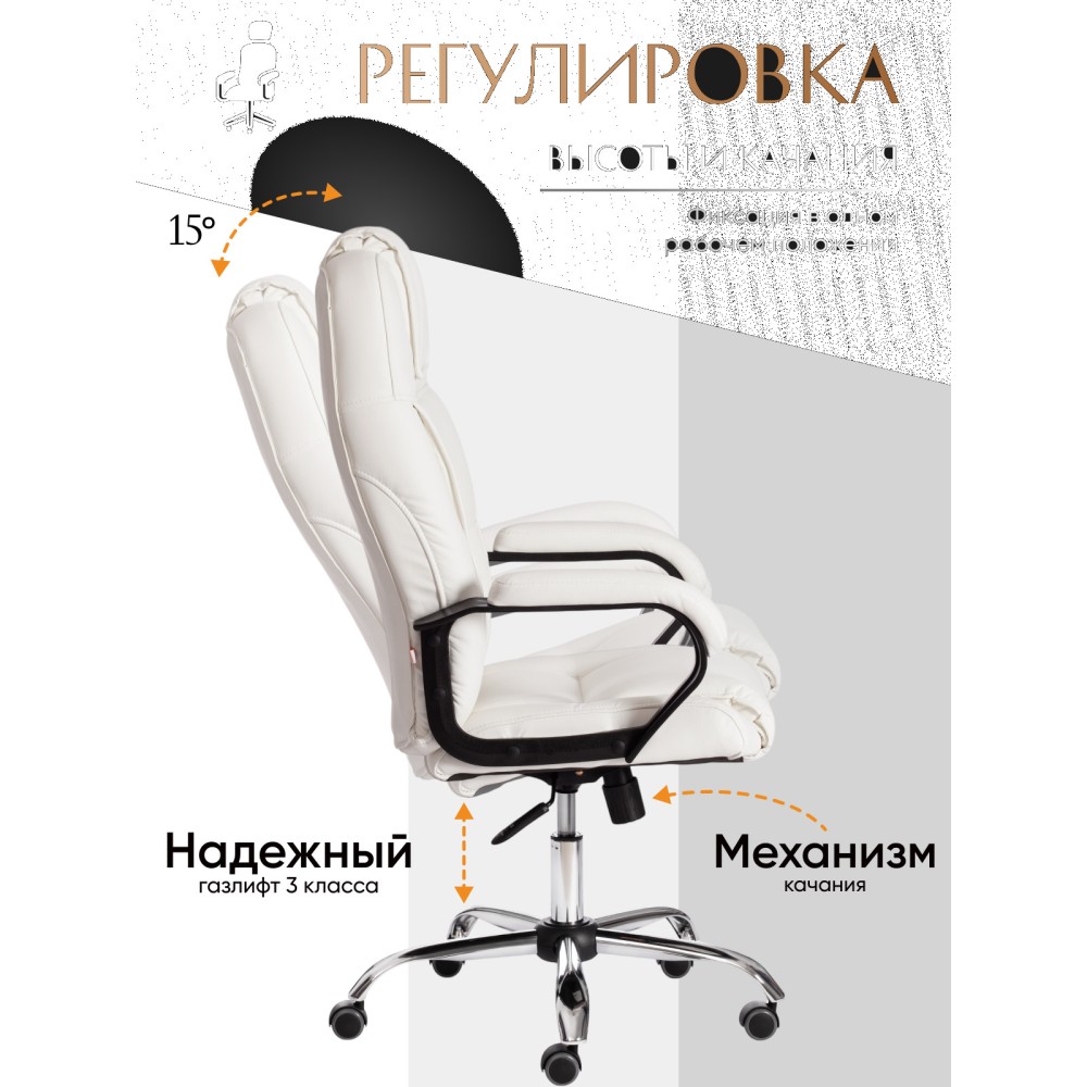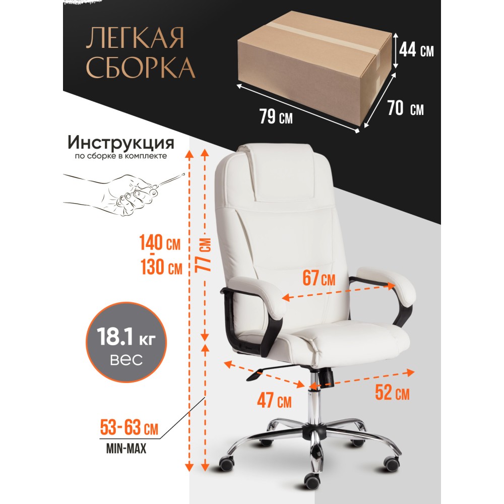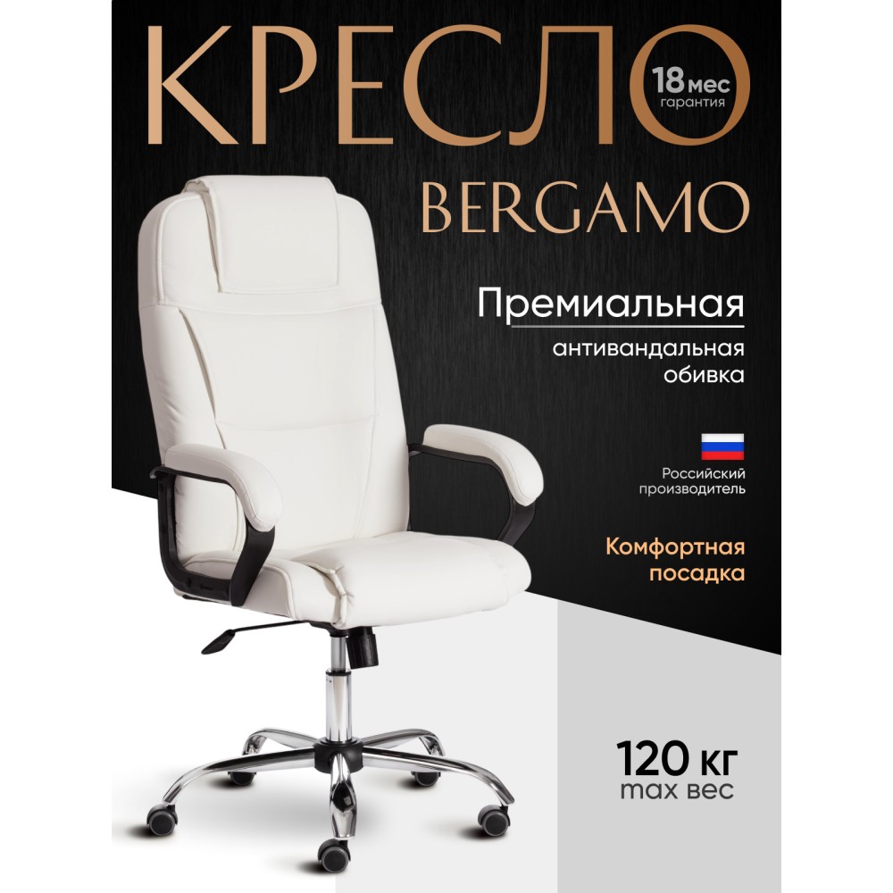 Стильный дизайн кресла BERGAMO хром (22) из коллекции OFFICE станет прекрасным дополнением в интерьере офиса, переговорной комнаты или кабинета руководителя. Модель, имеющая привлекательный дизайн и элегантный внешний вид, понравится даже самому требовательному владельцу. Надежный каркас выполнен из усиленной фанеры толщиной более 10 мм. Такой материал отличается практичностью, прочностью и основательностью. Сиденье и спинка с мягким наполнителем из пенополиуретана (до 35 кг/м2) стандартной плотности обладают долгим сроком службы, не деформируются, пропускают воздух, отводят влагу и не накапливают пыль. Хромированная крестовина устойчива, способна выдерживать большие нагрузки. Офисное кресло регулируется по высоте и наклону с фиксацией в одном положении. Бесшумные полиуретановые колесики с прорезиненными вставками позволяют легко перемещаться с места на место, не повреждая ламинат или паркет. Ролики и крестовина в креслах бренда TETCHAIR соответствуют стандарту BIFMA. Во всех креслах бренда TETCHAIR используются газлифты 3 класса, он способен выдерживать вес до 120 кг. Фиксированные пластиковые подлокотники с мягкими накладками помогут снять напряжение с плеч и шеи при длительной работе. Благодаря обивке из износостойкой высокопрочной экокожи и прочного флока модель не требует сложного ухода, не теряет своего первоначального вида долгие годы, обладает отличными эксплуатационными качествами. Экокожа, используемая при изготовлении кресла, выдерживает до 50 000 циклов на истирание по Мартиндейлу, ткань флок также выдерживает до 50 000 циклов. Ткани с прочностью более 35 000 циклов являются самыми долговечными. Компьютерное кресло BERGAMO хром (22) изготавливается в коричневом, черном, бежевом, сером, синем и белом цветах. Эргономичная модель подчеркнет безупречный вкус владельца, будет радовать своей долговечностью, красотой и практичностью продолжительное время. Офисное кресло поставляется в разобранном виде. Необходима простая сборка по прилагаемой инструкции. Максимальная нагрузка 120 кг.