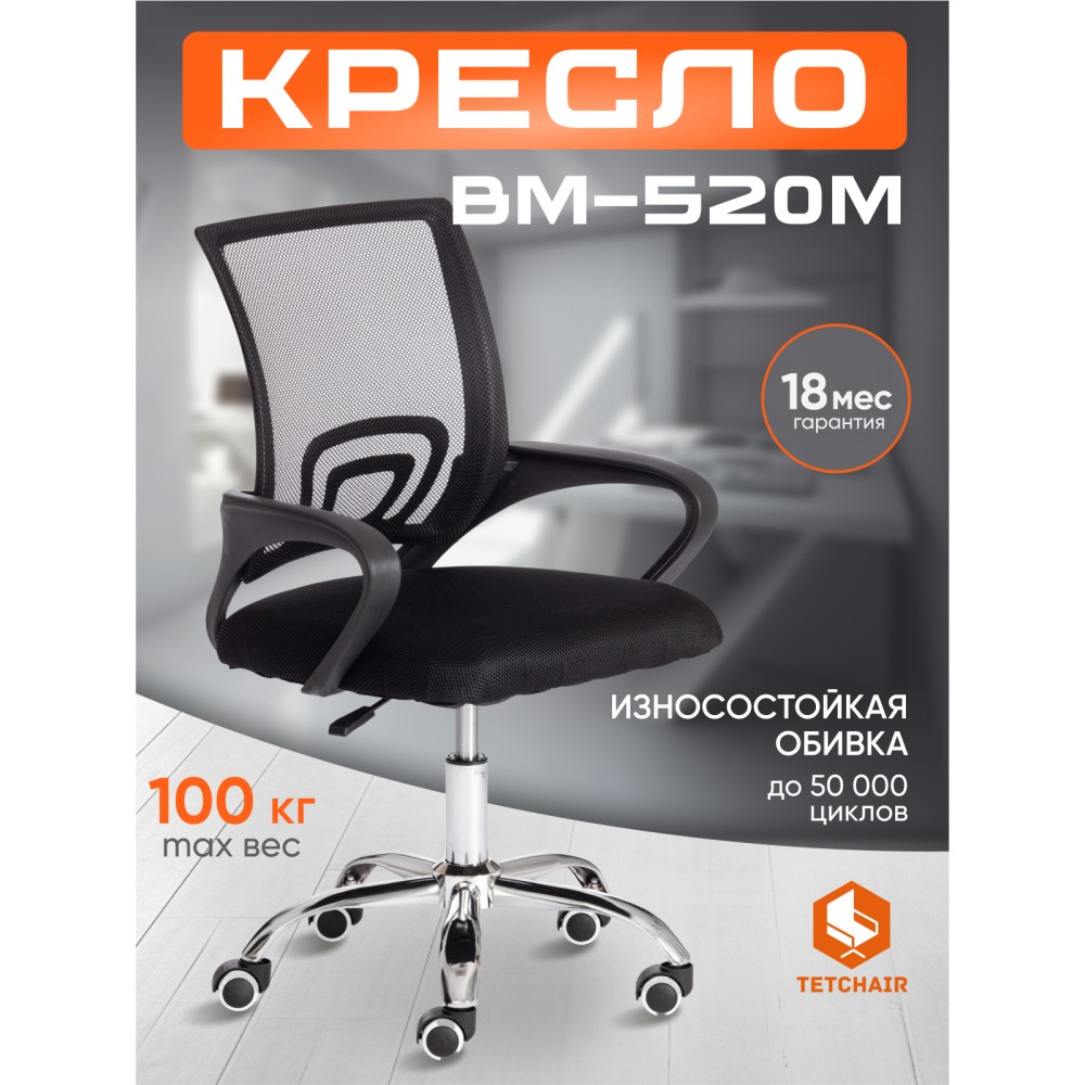 Легкость и простота дизайна компьютерного кресла BM-520M помогут создать атмосферу уюта и спокойствия в вашем доме или офисе. Практичная модель отлично подойдет для рабочего кабинета или комнаты школьника. Пластиковый каркас кресла надежен и устойчив. Мягкое сиденье с наполнителем из пенополиуретана стандартной плотности не теряет форму со временем и не деформируется. Изогнутая сетчатая спинка обеспечит максимальный комфорт в жаркое время года. Сочетание пластикового каркаса и тканевой обивки выглядит стильно и оригинально. Удобные пластиковые подлокотники помогут расположиться с комфортом во время переговоров или работы за компьютером. Кресло регулируется по высоте. Металическая крестовина кресла устойчива, надежна и имеет долгий срок службы. Высококачественные бесшумные пластиковые ролики, не царапают поверхность, подойдут для использования на паркете и ламинате. Компьютерное кресло BM-520M будет уместно в помещении с любым дизайнерским решением, удивит вас своей надежностью и износостойкостью. Максимальная нагрузка модели 100 кг. Кресло поставляется в разобранном виде. Необходима простая сборка по прилагаемой инструкции.