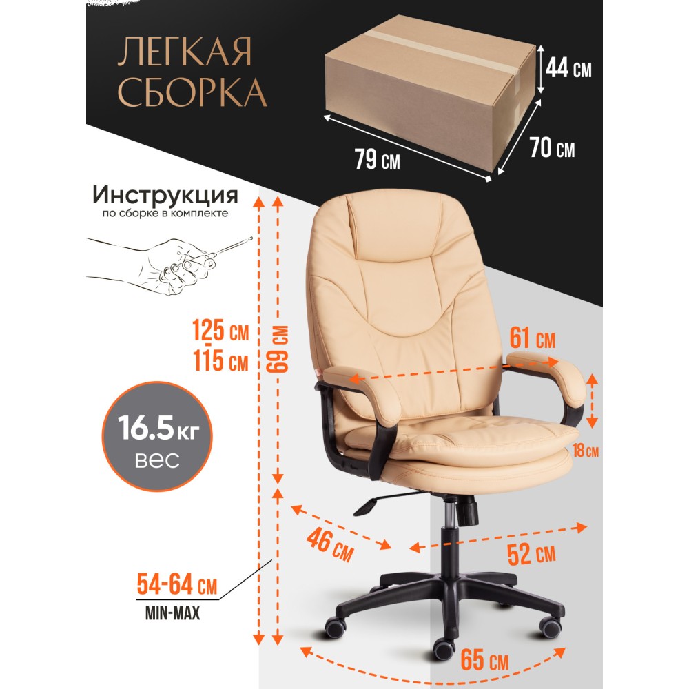 Оригинальное компьютерное кресло COMFORT LT (22) из коллекции OFFICE – удачное сочетание уюта, функциональности и элегантности. Модель будет прекрасно смотреться в рабочем кабинете, в комнате подростка или в зале для переговоров. Каркас выполнен из надежной и гипоаллергенной фанеры толщиной более 10 мм, имеющей отличные эксплуатационные качества. Сиденье с мягким наполнителем из пенополиуретана (до 35 кг/м2) стандартной плотности не деформируется, пропускает воздух. Кресло регулируется по высоте. Механизм качания с фиксацией в одном положении поможет расслабиться и принять удобную позу. Благодаря пластиковой крестовине офисное кресло устойчиво и имеет небольшой вес. Фиксированные подлокотники с мягкими накладками, эргономичная спинка, вместительное сиденье сделают ваше времяпрепровождение за компьютером максимально комфортным. Полиуретановые ролики с прорезиненными вставками не повреждают напольную поверхность, не оставляют следов на паркете и ламинате. Ролики и крестовина в креслах бренда TETCHAIR соответствуют стандарту BIFMA. Во всех креслах бренда TETCHAIR используются газлифты 3 класса, он способен выдерживать вес до 120 кг. Компьютерное кресло изготавливается из экокожи и флока. Обивка из высокопрочной износостойкой экокожи долговечна, не требует сложного ухода, сохраняет свой первоначальный внешний вид долгое время. Флок – красивый, практичный, отталкивающий воду материал. Экокожа, используемая при изготовлении кресла, выдерживает до 50 000 циклов на истирание по Мартиндейлу, ткань флок также выдерживает до 50 000 циклов, ткань велюр выдерживает до 60 000 циклов. Ткани с прочностью более 35 000 циклов являются самыми долговечными. Мебель, в которой используются такие ткани можно использовать не только дома но и в ресторанах, салонах красоты, приемных. Привлекательная модель COMFORT LT (22) представлена в коричневом, черном, бежевом, сером, розовом и лавандовом цветах. Офисное кресло станет отличным решением для вашего интерьера, будет смотреться презентабельно и элегантно в любой обстановке. Модель очень проста в сборке, инструкция по сборке прилагается. Максимальная нагрузка 120 кг.