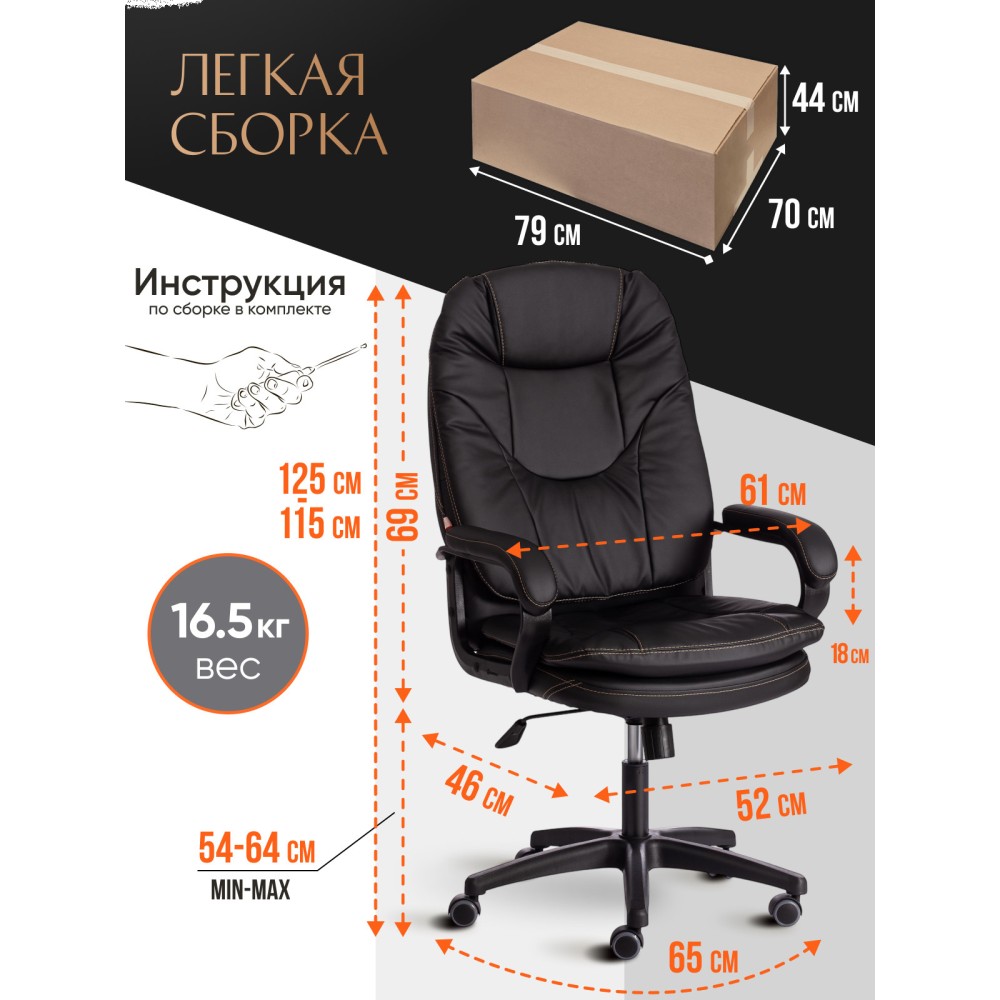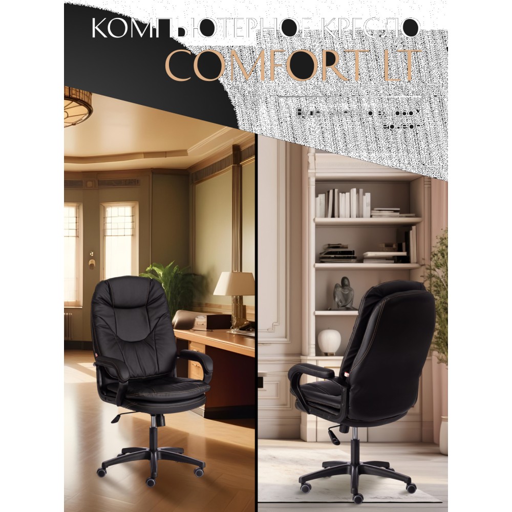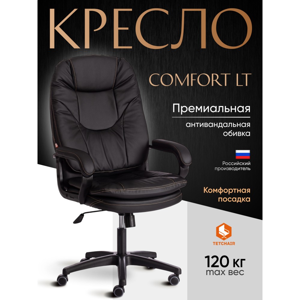 Оригинальное компьютерное кресло COMFORT LT (22) из коллекции OFFICE – удачное сочетание уюта, функциональности и элегантности. Модель будет прекрасно смотреться в рабочем кабинете, в комнате подростка или в зале для переговоров. Каркас выполнен из надежной и гипоаллергенной фанеры толщиной более 10 мм, имеющей отличные эксплуатационные качества. Сиденье с мягким наполнителем из пенополиуретана (до 35 кг/м2) стандартной плотности не деформируется, пропускает воздух. Кресло регулируется по высоте. Механизм качания с фиксацией в одном положении поможет расслабиться и принять удобную позу. Благодаря пластиковой крестовине офисное кресло устойчиво и имеет небольшой вес. Фиксированные подлокотники с мягкими накладками, эргономичная спинка, вместительное сиденье сделают ваше времяпрепровождение за компьютером максимально комфортным. Полиуретановые ролики с прорезиненными вставками не повреждают напольную поверхность, не оставляют следов на паркете и ламинате. Ролики и крестовина в креслах бренда TETCHAIR соответствуют стандарту BIFMA. Во всех креслах бренда TETCHAIR используются газлифты 3 класса, он способен выдерживать вес до 120 кг. Компьютерное кресло изготавливается из экокожи и флока. Обивка из высокопрочной износостойкой экокожи долговечна, не требует сложного ухода, сохраняет свой первоначальный внешний вид долгое время. Флок – красивый, практичный, отталкивающий воду материал. Экокожа, используемая при изготовлении кресла, выдерживает до 50 000 циклов на истирание по Мартиндейлу, ткань флок также выдерживает до 50 000 циклов, ткань велюр выдерживает до 60 000 циклов. Ткани с прочностью более 35 000 циклов являются самыми долговечными. Мебель, в которой используются такие ткани можно использовать не только дома но и в ресторанах, салонах красоты, приемных. Привлекательная модель COMFORT LT (22) представлена в коричневом, черном, бежевом, сером, розовом и лавандовом цветах. Офисное кресло станет отличным решением для вашего интерьера, будет смотреться презентабельно и элегантно в любой обстановке. Модель очень проста в сборке, инструкция по сборке прилагается. Максимальная нагрузка 120 кг.