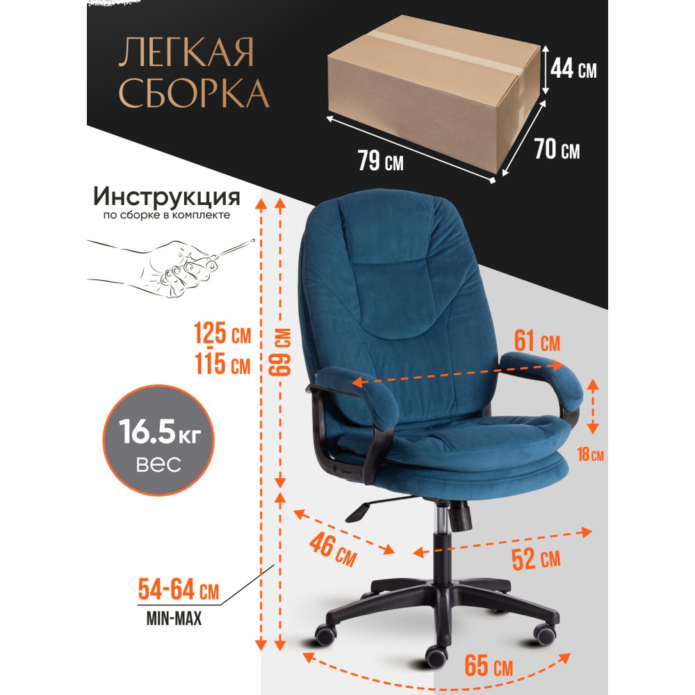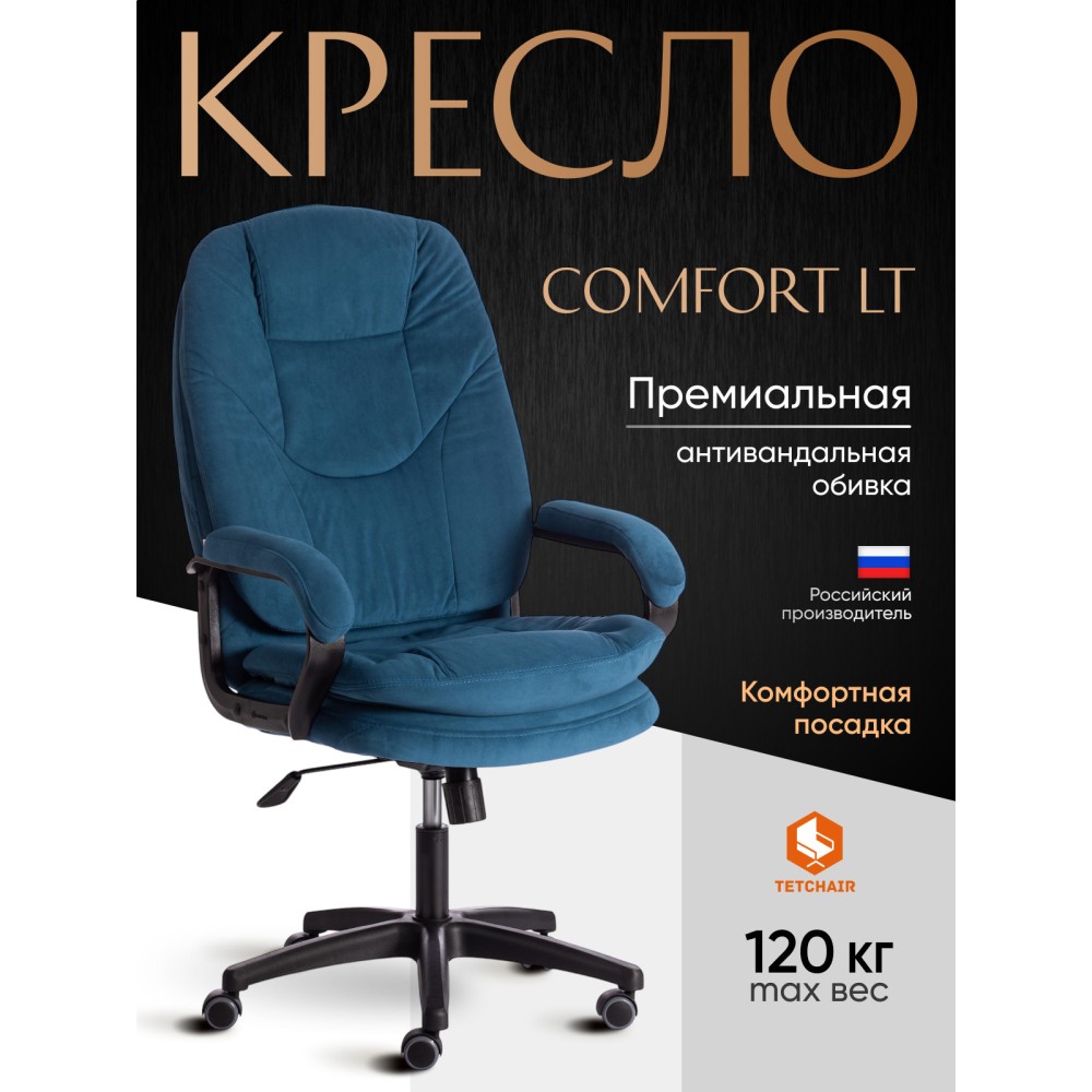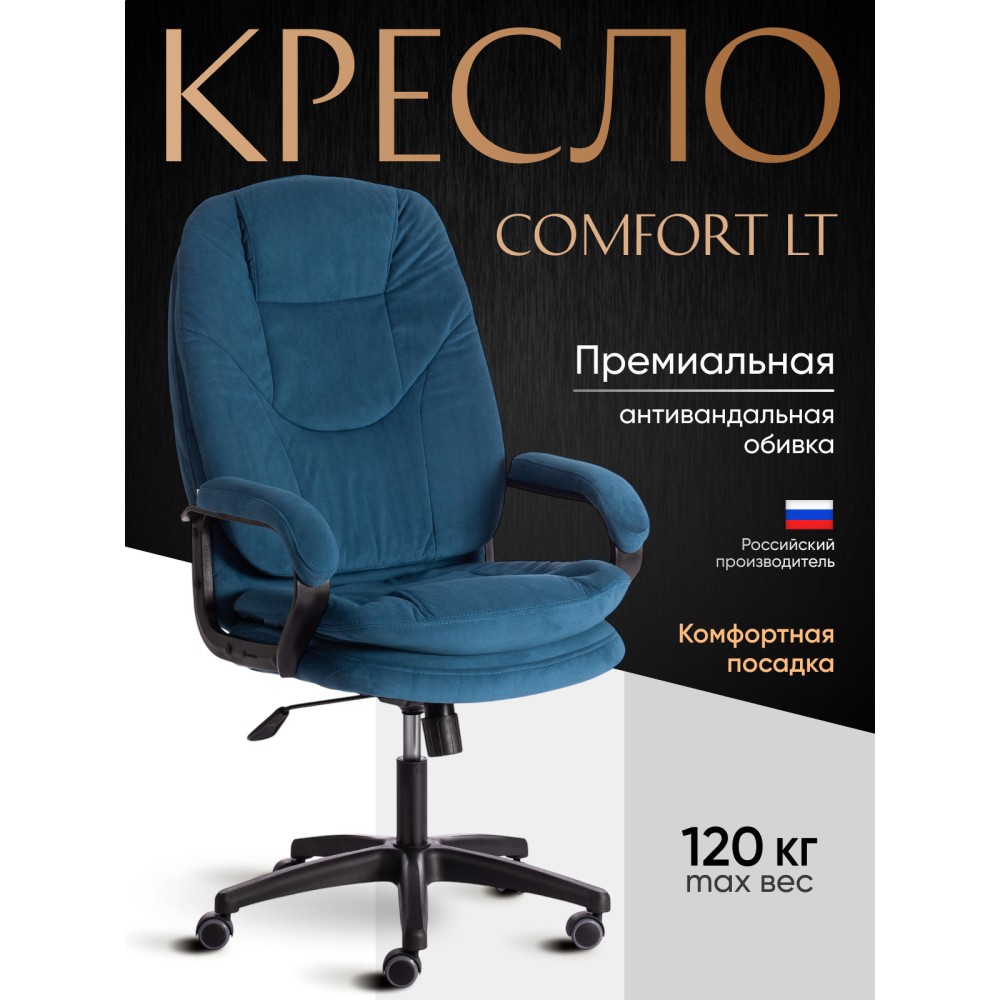 Оригинальное компьютерное кресло COMFORT LT (22) из коллекции OFFICE – удачное сочетание уюта, функциональности и элегантности. Модель будет прекрасно смотреться в рабочем кабинете, в комнате подростка или в зале для переговоров. Каркас выполнен из надежной и гипоаллергенной фанеры толщиной более 10 мм, имеющей отличные эксплуатационные качества. Сиденье с мягким наполнителем из пенополиуретана (до 35 кг/м2) стандартной плотности не деформируется, пропускает воздух. Кресло регулируется по высоте. Механизм качания с фиксацией в одном положении поможет расслабиться и принять удобную позу. Благодаря пластиковой крестовине офисное кресло устойчиво и имеет небольшой вес. Фиксированные подлокотники с мягкими накладками, эргономичная спинка, вместительное сиденье сделают ваше времяпрепровождение за компьютером максимально комфортным. Полиуретановые ролики с прорезиненными вставками не повреждают напольную поверхность, не оставляют следов на паркете и ламинате. Ролики и крестовина в креслах бренда TETCHAIR соответствуют стандарту BIFMA. Во всех креслах бренда TETCHAIR используются газлифты 3 класса, он способен выдерживать вес до 120 кг. Компьютерное кресло изготавливается из экокожи и флока. Обивка из высокопрочной износостойкой экокожи долговечна, не требует сложного ухода, сохраняет свой первоначальный внешний вид долгое время. Флок – красивый, практичный, отталкивающий воду материал. Экокожа, используемая при изготовлении кресла, выдерживает до 50 000 циклов на истирание по Мартиндейлу, ткань флок также выдерживает до 50 000 циклов, ткань велюр выдерживает до 60 000 циклов. Ткани с прочностью более 35 000 циклов являются самыми долговечными. Мебель, в которой используются такие ткани можно использовать не только дома но и в ресторанах, салонах красоты, приемных. Привлекательная модель COMFORT LT (22) представлена в коричневом, черном, бежевом, сером, розовом и лавандовом цветах. Офисное кресло станет отличным решением для вашего интерьера, будет смотреться презентабельно и элегантно в любой обстановке. Модель очень проста в сборке, инструкция по сборке прилагается. Максимальная нагрузка 120 кг.