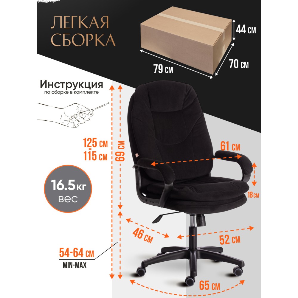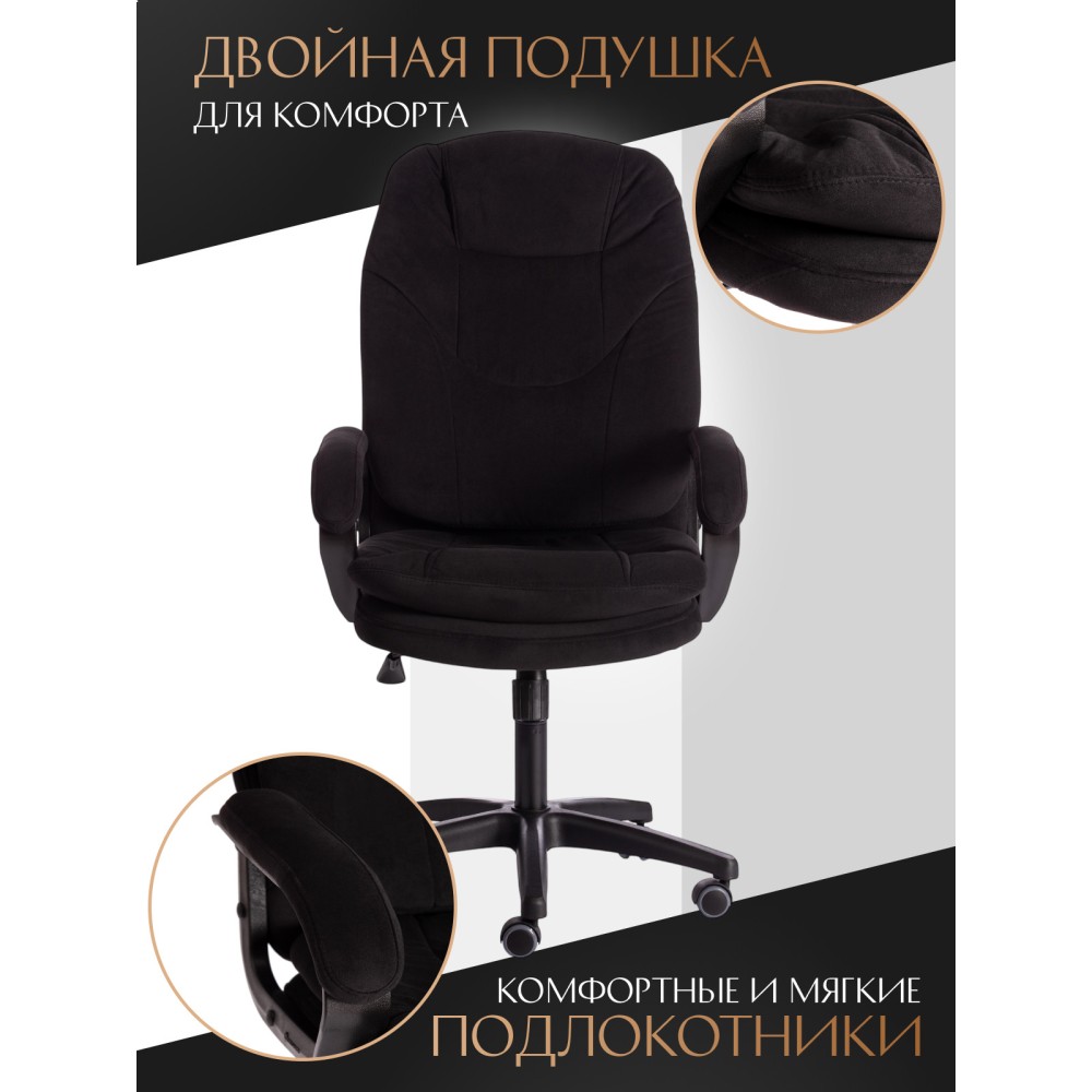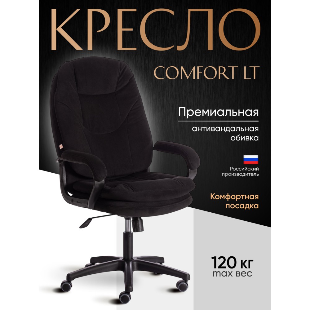 Оригинальное компьютерное кресло COMFORT LT (22) из коллекции OFFICE – удачное сочетание уюта, функциональности и элегантности. Модель будет прекрасно смотреться в рабочем кабинете, в комнате подростка или в зале для переговоров. Каркас выполнен из надежной и гипоаллергенной фанеры толщиной более 10 мм, имеющей отличные эксплуатационные качества. Сиденье с мягким наполнителем из пенополиуретана (до 35 кг/м2) стандартной плотности не деформируется, пропускает воздух. Кресло регулируется по высоте. Механизм качания с фиксацией в одном положении поможет расслабиться и принять удобную позу. Благодаря пластиковой крестовине офисное кресло устойчиво и имеет небольшой вес. Фиксированные подлокотники с мягкими накладками, эргономичная спинка, вместительное сиденье сделают ваше времяпрепровождение за компьютером максимально комфортным. Полиуретановые ролики с прорезиненными вставками не повреждают напольную поверхность, не оставляют следов на паркете и ламинате. Ролики и крестовина в креслах бренда TETCHAIR соответствуют стандарту BIFMA. Во всех креслах бренда TETCHAIR используются газлифты 3 класса, он способен выдерживать вес до 120 кг. Компьютерное кресло изготавливается из экокожи и флока. Обивка из высокопрочной износостойкой экокожи долговечна, не требует сложного ухода, сохраняет свой первоначальный внешний вид долгое время. Флок – красивый, практичный, отталкивающий воду материал. Экокожа, используемая при изготовлении кресла, выдерживает до 50 000 циклов на истирание по Мартиндейлу, ткань флок также выдерживает до 50 000 циклов, ткань велюр выдерживает до 60 000 циклов. Ткани с прочностью более 35 000 циклов являются самыми долговечными. Мебель, в которой используются такие ткани можно использовать не только дома но и в ресторанах, салонах красоты, приемных. Привлекательная модель COMFORT LT (22) представлена в коричневом, черном, бежевом, сером, розовом и лавандовом цветах. Офисное кресло станет отличным решением для вашего интерьера, будет смотреться презентабельно и элегантно в любой обстановке. Модель очень проста в сборке, инструкция по сборке прилагается. Максимальная нагрузка 120 кг.
