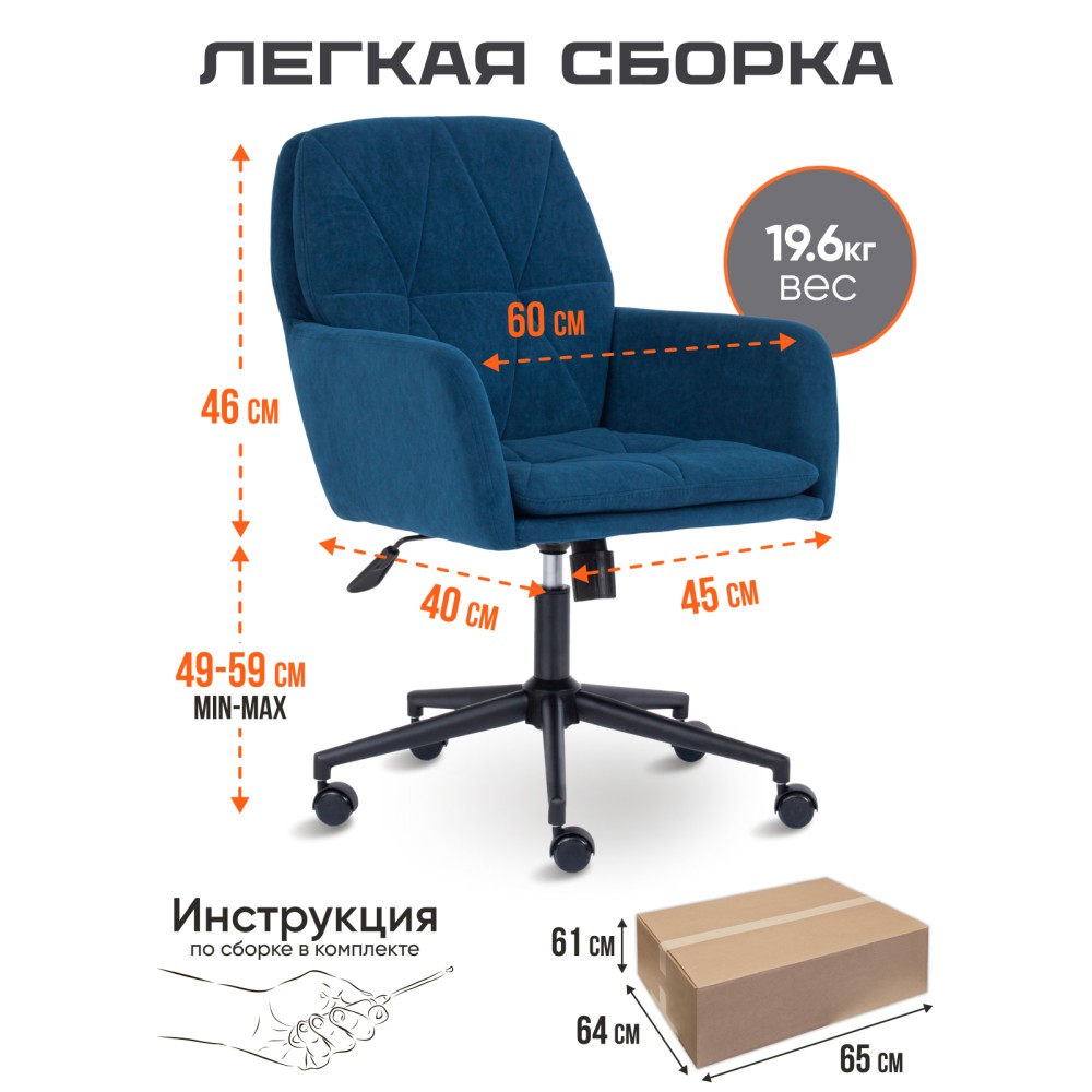 Компьютерное кресло GARDA из коллекции OFFICE станет отличным решением для любого интерьера и гармонично впишется в различную обстановку. Модель подчеркнет особый статус владельца, наделит рабочий кабинет благородством, привлекательностью и комфортом. Надежный каркас изготовлен из усиленной фанеры толщиной более 10 мм, придающей модели долговечность и основательность. Сиденье с мягким наполнителем из пенонополиуретана стандартной плотности (до 35 кг/м2) не деформируется со временем, пропускает воздух. Кресло регулируется по высоте. Механизм качания с фиксацией в одном положении поможет расслабиться и принять удобную позу. Металлическая крестовина, окрашенная в черный цвет, способна выдерживать большие нагрузки, устойчива, выглядит стильно и современно. Полиуретановые колесики бесшумны с прорезиненными вставками, не царапают напольное покрытие. Ролики и крестовина в креслах бренда TETCHAIR соответствуют стандарту BIFMA. Во всех креслах бренда TETCHAIR используются газлифты 3 класса, он способен выдерживать вес до 120 кг. Оригинальное офисное кресло изготавливается из флока. Такие материалы просты в уходе, не теряют своего первоначального вида на протяжении длительного времени. Ткань флок , используемая при изготовлении кресла, выдерживает до 50 000 циклов на истирание по Мартиндейлу. Ткани с прочностью более 35 000 циклов являются самыми долговечными. Мебель, в которой используется такая ткань можно использовать не только дома но и в ресторанах, салонах красоты, приемных. Элегантное компьютерное кресло представлено в нескольких цветовых вариантах: сером, коричневом и синем. Модель GARDA произведет впечатление своей солидностью, долговечностью и эксплуатационными качествами, подчеркнет особенности стиля рабочего кабинета, а также удивит своей функциональностью и вместительностью. Офисное кресло поставляется в разобранном виде. Необходима простая сборка по прилагаемой инструкции. Максимальная нагрузка 120 кг.