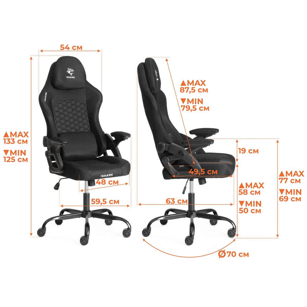 Кресло iShark — это отличное сочетание дизайна, комфорта и функциональности для недорогого, но качественного игрового кресла. Вот несколько ключевых характеристик и особенностей, которые делают это кресло привлекательным вариантом: Каркас: Металлический каркас спинки из трубы толщиной 1,2 мм обеспечивает прочность и долговечность. Сиденье: Изготовлено из многослойной фанеры толщиной не менее 12 мм, что обеспечивает стабильную основу для сидения. Наполнение: Спинка: Наполнена пенополиуретаном (ППУ) плотностью 25 кг/м³, что гарантирует хороший уровень комфорта. Сиденье: Внешний слой из ППУ не менее 25 кг/м³ сочетается с внутренним слоем переработанного ППУ плотностью 70 кг/м³ для оптимальной поддержки. Обивка: Используется триплированная ткань плотностью 160 г/м², протестированная на 20 000 циклов по методике Мартиндейла, что свидетельствует о ее износостойкости и долговечности. Крупноячеистая сетка добавляет вентиляцию и комфорт. Эргономика: Регулируемые подлокотники с мягкой накладкой и функцией встроенного в них реклайнера способствуют удобству в различных позах. Механизм изменения высоты и возможность свободного качания (от 0 до 15 градусов) с регулировкой под вес сидящего. Безопасность и устойчивость: Используется газ-лифт 3 класса (BIFMA) с ходом около 80 мм, максимальная нагрузка — 120 кг. Пятиконечная разборная база из стали (700 мм) устойчива к динамическим нагрузкам. Колеса: Полиамидные прорезиненные ролики диаметром 60 мм подходят для разных типов покрытий и имеют геймерский дизайн. Дополнительные особенности: Регулируемый по высоте подголовник и свободно лежащая поясничная подушка гарантируют дополнительную поддержку. Эстетические детали, такие как вышивка логотипа iShark и стежка в виде "соты" на спинке, делают кресло не только функциональным, но и стильным. Кресло iShark — это отличный выбор для тех, кто ценит комфорт, поддержку и стиль в своем игровом пространстве. Максимальная нагрузка модели — 120 кг. Кресло поставляется в разобранном виде, необходима несложная сборка по прилагаемой инструкции.