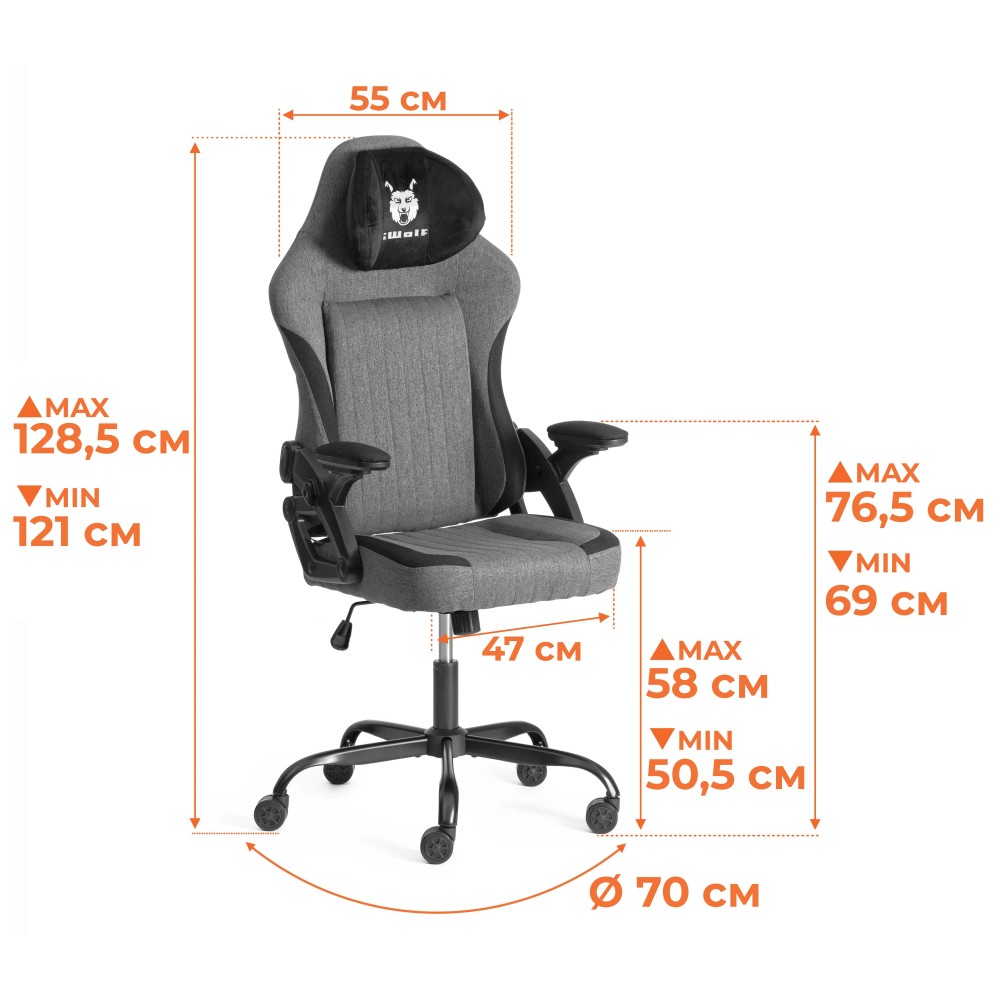 Геймерское кресло iWolf — это отличное решение для тех, кто ищет комфорт и функциональность как для игровой, так и для офисной обстановки. Рассмотрим подробнее его ключевые особенности: 1. Наполнение и каркас - спинка с каркасом из металлической трубы толщиной 1.2 мм и наполнителем из пенополиуретана плотностью 25 кг/м3 легко подстраивается под контуры тела, не деформируется со временем. Сиденье изготовлено из многослойной фанеры толщиной 12 мм и пенополиуретанового наполнителя с внешним слоем не менее 25 кг/м3 и внутренним слоем не менее 70 кг/м3. 2. Обивка: Ткань из 100% полиэстера с высокой прочностью и долговечностью - 20 000 циклов по тесту Мартиндейла гарантирует, что кресло сохранит свой вид на протяжении долгого времени. 3. Подголовник: Регулируемый по высоте подголовник позволяет легко адаптировать кресло под индивидуальные параметры пользователя. 4. Подлокотники: С регулируемыми мягкими накладками "вперед-назад" и функцией реклайнера для дополнительного комфорта. 5. Механизм изменения высоты и наклона: Позволяет изменять угол наклона спинки до 15 градусов и фиксировать кресло в одном положении. Регулировка жесткости качания позволяет настроить кресло под индивидуальные предпочтения. 6. Газовый лифт: 3 класса, с ходом 80 мм, обеспечивает удобную регулировку высоты. 7. Основание: 5-лучевая стальная крестовина обеспечивает стабильность и прочность. Диаметр в 700 мм и разборная конструкция упрощают транспортировку и установку. 8. Ролики: Увеличенные, 60 мм, с полиуретановым (прорезиненным) покрытием отлично подходят для использования на различных напольных покрытиях, таких как паркет и ламинат. 9. Максимальная нагрузка: Кресло подходит для пользователей с весом до 120 кг. 10. Вес: Вес кресла в 14,5 кг делает его достаточно легким для перемещения, а брутто-вес 16,5 кг указывает на дополнительные элементы упаковки. Таким образом, iWolf сочетает в себе функциональность, комфорт и стильный дизайн, что делает его отличным выбором как для геймеров, так и для тех, кто проводит много времени за компьютером. Упаковки